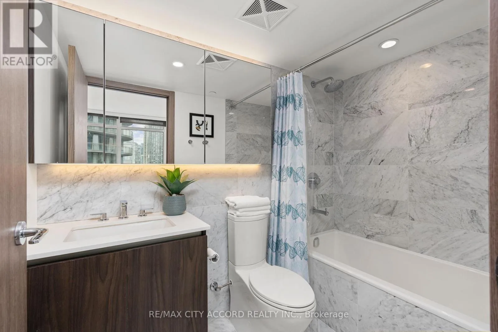 Cross Streets: Bathurst/Lakeshore. ** Directions: South/South East. Rarely available 3-Bedroom, 2-Bathroom corner suite at the prestigious 17 Bathurst. Unit 2015 offers an expansive, light-filled floor plan withfloor-to-ceiling windows, premium integrated appliances, and a private balcony. This high-floor residence includes dedicated parking and astorage locker. Situated in the heart of the Waterfront/CityPlace district, you are steps from the Lake, King West, and Union Station. Enjoy world-class amenities including a rooftop pool, state-of-the-art gym, and 24hr concierge. A premier opportunity for families or savvy investors seekingluxury and scale in Toronto's most vibrant lakeside community. (id:27476)