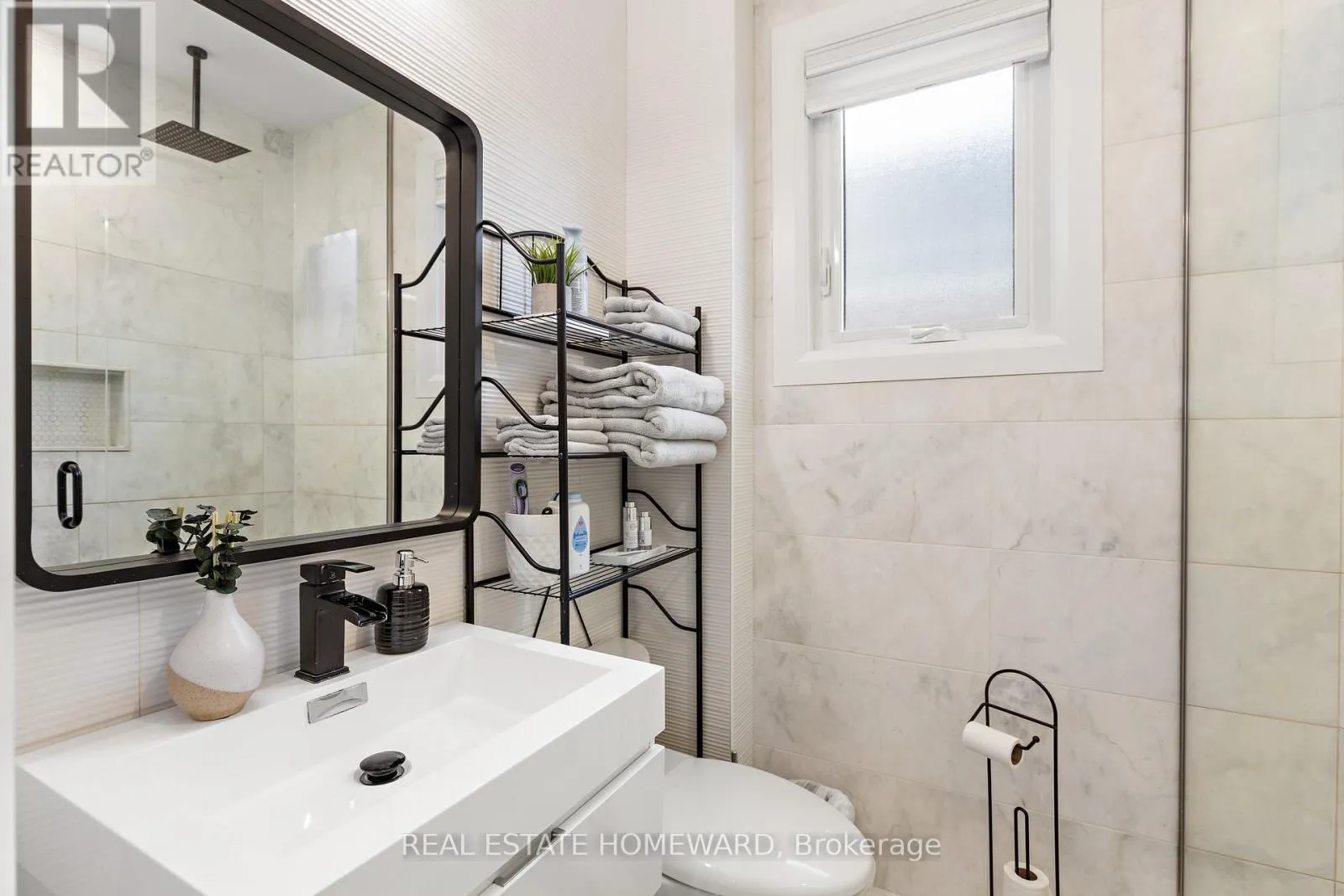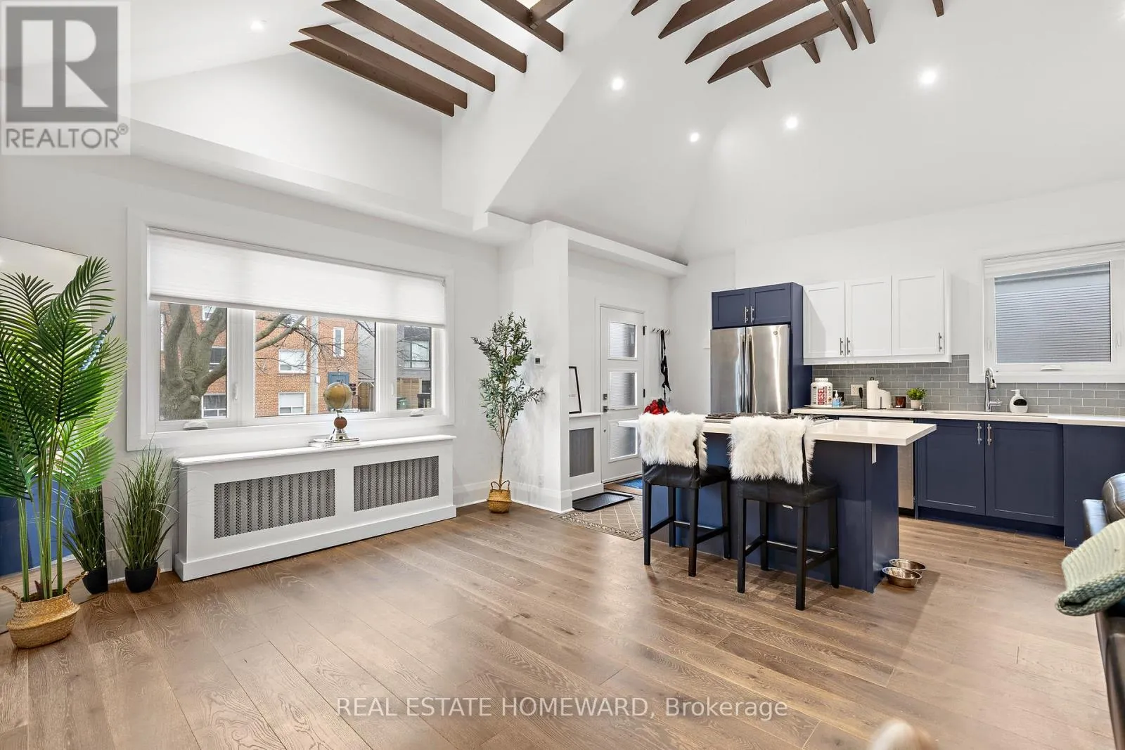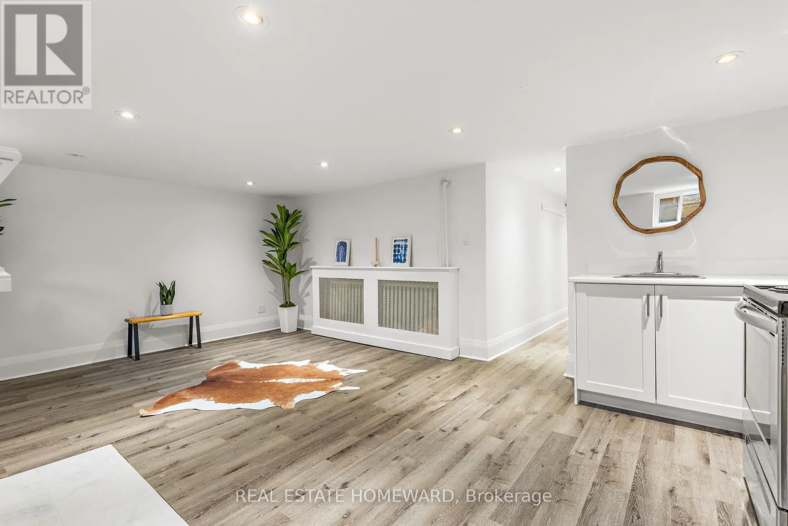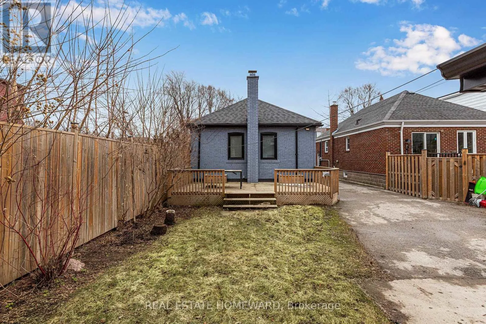 Cross Streets: Woodbine/O'Connor. ** Directions: South of O'Connor, East of Woodbine. Spectacular fully renovated modern bungalow offering a rare open concept layout unlike anything else in the area. Featuring soaring cathedral ceilings exceeding 15 feet across the main level, this home feels incredibly spacious and truly exceptional. Boasting 2 modern kitchens on the main floor and basement, both updated within the last 5 years with appliances, along with 2 beautifully renovated bathrooms including heated floors. Gorgeous engineered hardwood flooring, baseboards, trim, windows, doors and more. This home truly shows pride of ownership. The fully finished basement offers excellent income or multi generational living potential, complete with a separate side entrance, full kitchen and full bathroom. Additional upgrades include a newer roof re-shingled within the last few years, a brand new high efficiency boiler system installed within the past year with a 10 year warranty, new glass shower enclosures, updated bannister, and extensive exterior improvements including a new deck, fencing and landscaping. Brand new built-in shelving in massive basement laundry area, great for storage! Detached garage at the rear provides parking for up to two vehicles. The property also presents an exciting opportunity for future development! The lot is well suited for a detached garden suite under current Toronto zoning regulations, with a preliminary review indicating no major regulatory barriers, offering strong long-term value and potential for income or family expansion! A turnkey opportunity showcasing exceptional craftsmanship throughout! This is an absolute must see! See attachments for existing floorplans and preliminary ADU information! (id:27476)