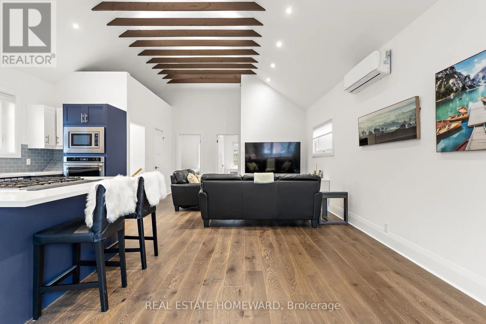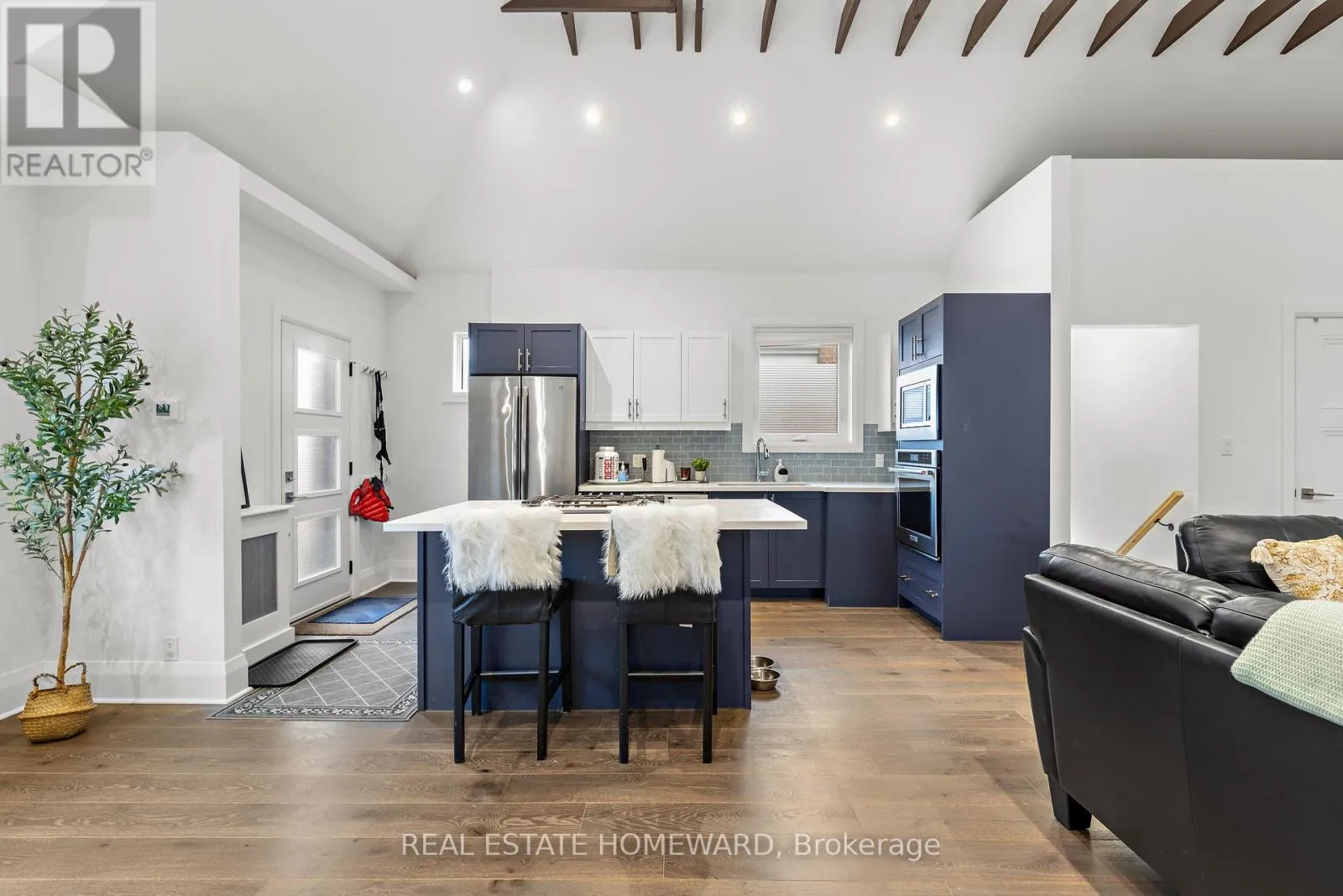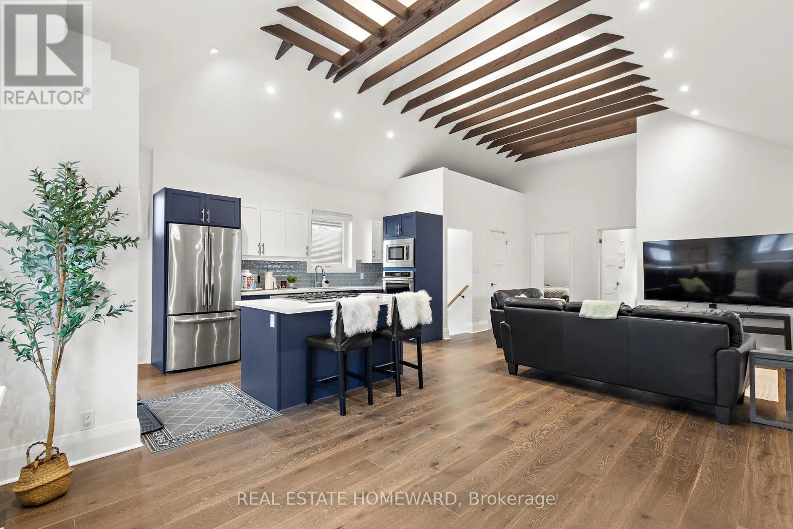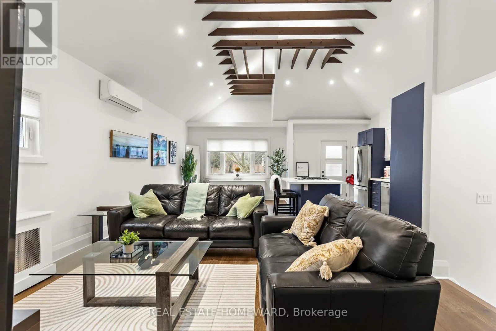 Cross Streets: Woodbine/O'Connor. ** Directions: South of O'Connor, East of Woodbine. Spectacular fully renovated modern bungalow offering a rare open concept layout unlike anything else in the area. Featuring soaring cathedral ceilings exceeding 15 feet across the main level, this home feels incredibly spacious and truly exceptional. Boasting 2 modern kitchens on the main floor and basement, both updated within the last 5 years with appliances, along with 2 beautifully renovated bathrooms including heated floors. Gorgeous engineered hardwood flooring, baseboards, trim, windows, doors and more. This home truly shows pride of ownership. The fully finished basement offers excellent income or multi generational living potential, complete with a separate side entrance, full kitchen and full bathroom. Additional upgrades include a newer roof re-shingled within the last few years, a brand new high efficiency boiler system installed within the past year with a 10 year warranty, new glass shower enclosures, updated bannister, and extensive exterior improvements including a new deck, fencing and landscaping. Brand new built-in shelving in massive basement laundry area, great for storage! Detached garage at the rear provides parking for up to two vehicles. The property also presents an exciting opportunity for future development! The lot is well suited for a detached garden suite under current Toronto zoning regulations, with a preliminary review indicating no major regulatory barriers, offering strong long-term value and potential for income or family expansion! A turnkey opportunity showcasing exceptional craftsmanship throughout! This is an absolute must see! See attachments for existing floorplans and preliminary ADU information! (id:27476)