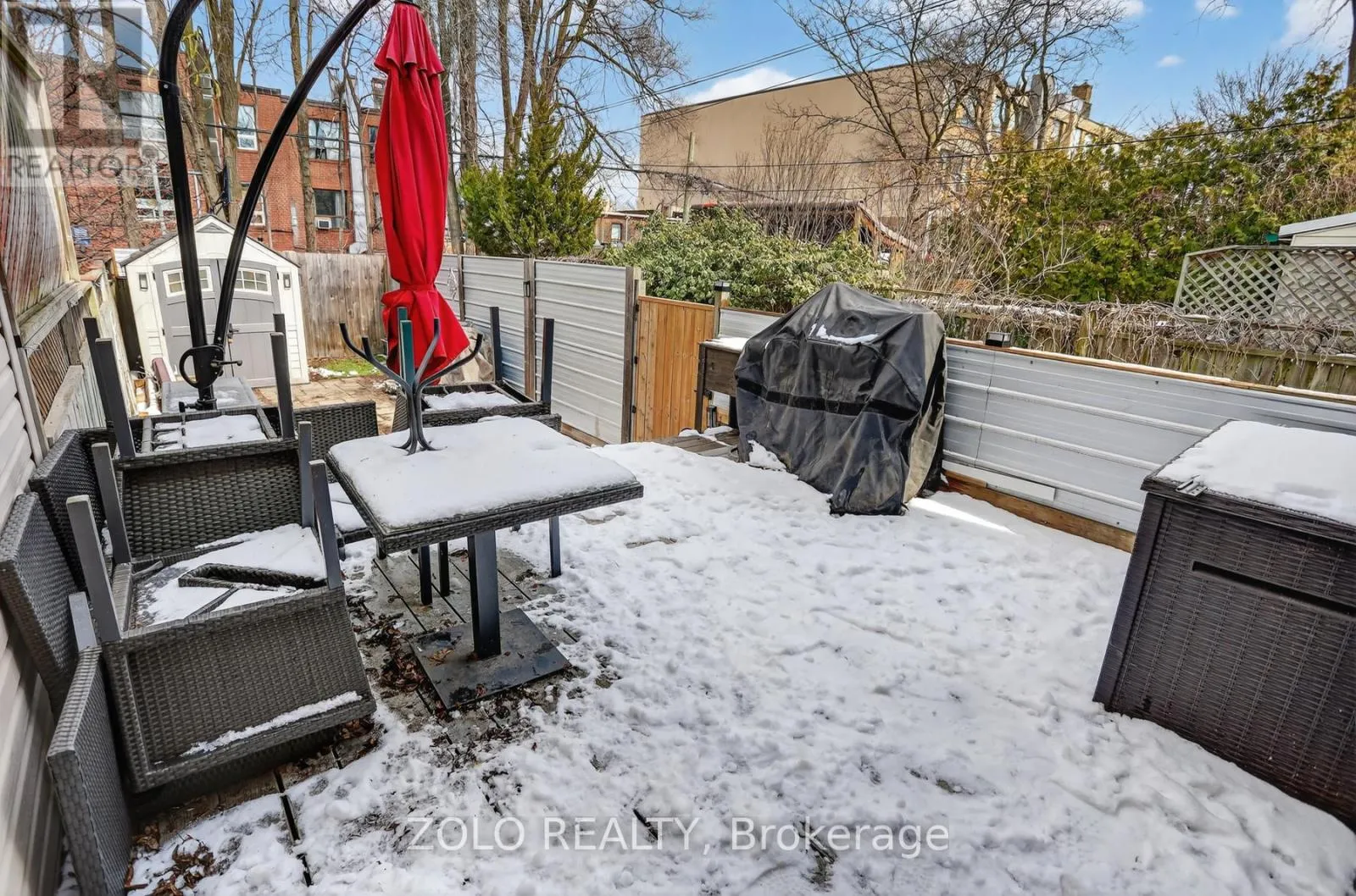 Cross Streets: PAPE & DANFORTH. ** Directions: EAST OF PAPE SOUTH OF DANFORTH. This stunning beauty delivers 3 bedrooms, 3 bathrooms, and a spacious rec area in the basement with it's own bathroom. Approximately 1,300 square feet above grade. The main floor is an entertainer's dream, featuring an opened concept layout boasting a lovely kitchen with a party sized breakfast bar, gas stove, granite counters, stainless steel appliances, pot light lighting, and the coveted combination of a main-floor full washroom and double front hall closet. Upstairs, the king-size primary retreat boasts a built-in closet, while the second bedroom impresses with a built-in closet plus the convenience of a large hallway closet. The main floor office nook, perfect for family downtime or working from home. Rec room in the basement can function as another bedroom or in-law suite. Outside, enjoy a fenced backyard, large deck, and private parking with. Upgrades include Hardwood floors on main & 2nd, Updated Stairs & Railings. Porch & Deck upgraded to composite. Added Landscaping, Vinyl siding with insulation on side and back of house. New front door + new Front & Dining room windows. Upgraded all light fixtures. Zebra blinds throughout. Many USB plugs and screw less light covers throughout. Upgraded Eavestrough with gutter guards, soffits & Fascia. Situated in the sought-after Frankland school district and just steps to the subway, shops, and restaurants, this home blends luxury, lifestyle, and unbeatable convenience in the heart of Pape/Danforth. Note: clever garbage bin storage under the porch. (id:27476)