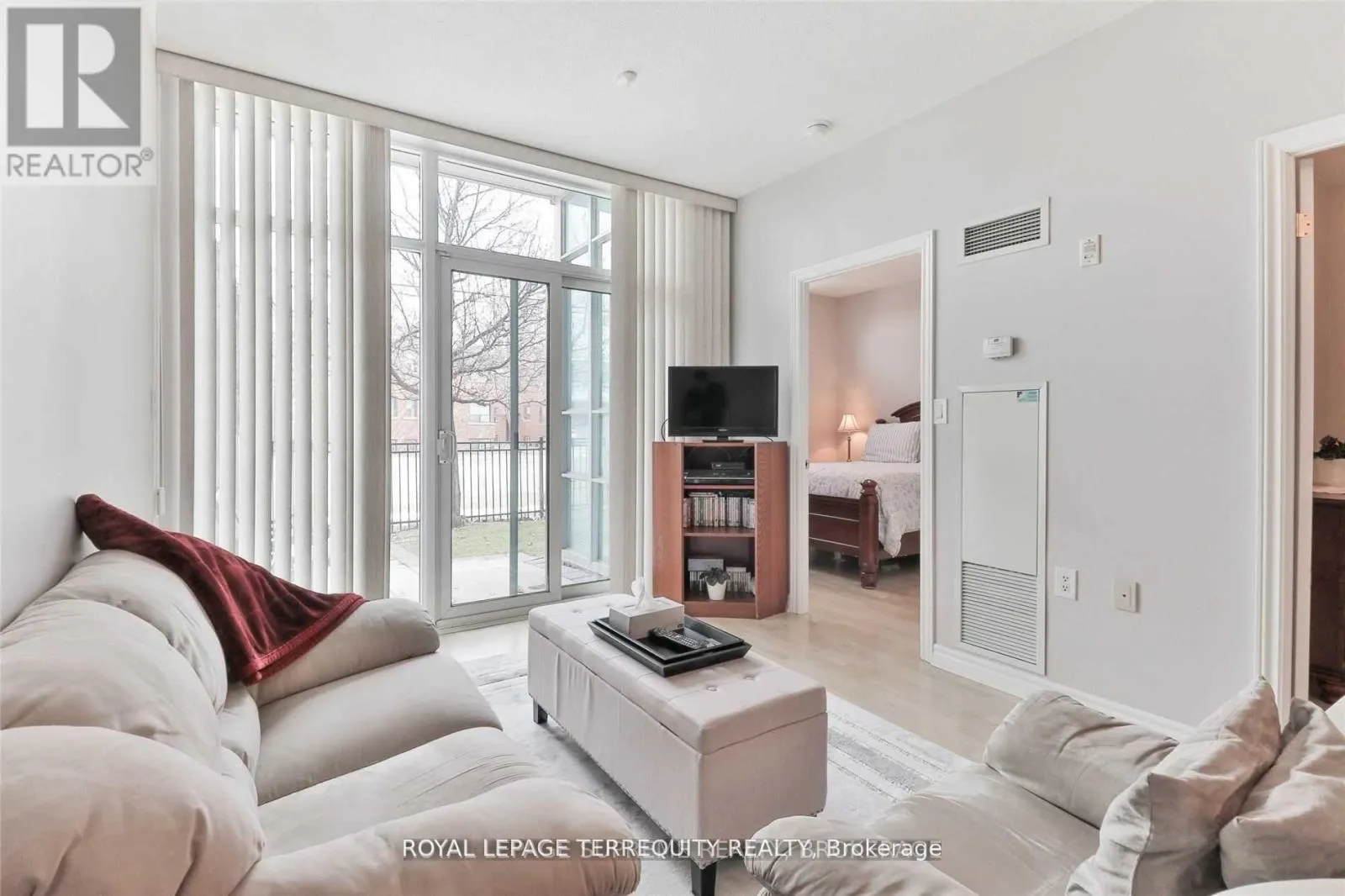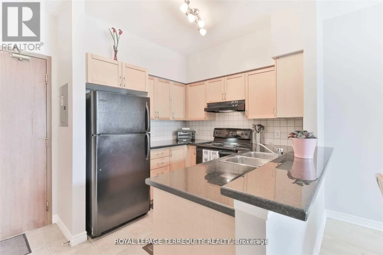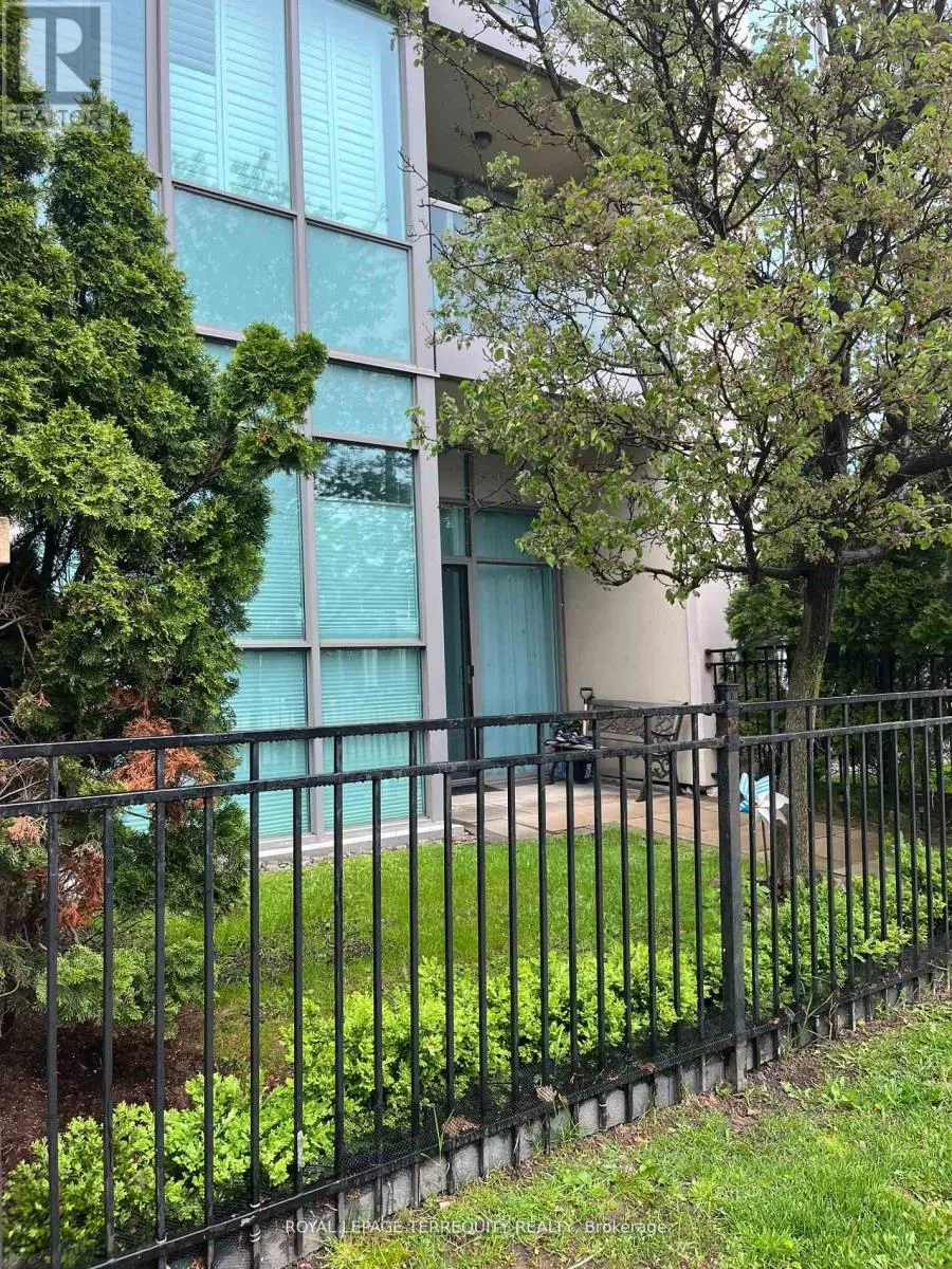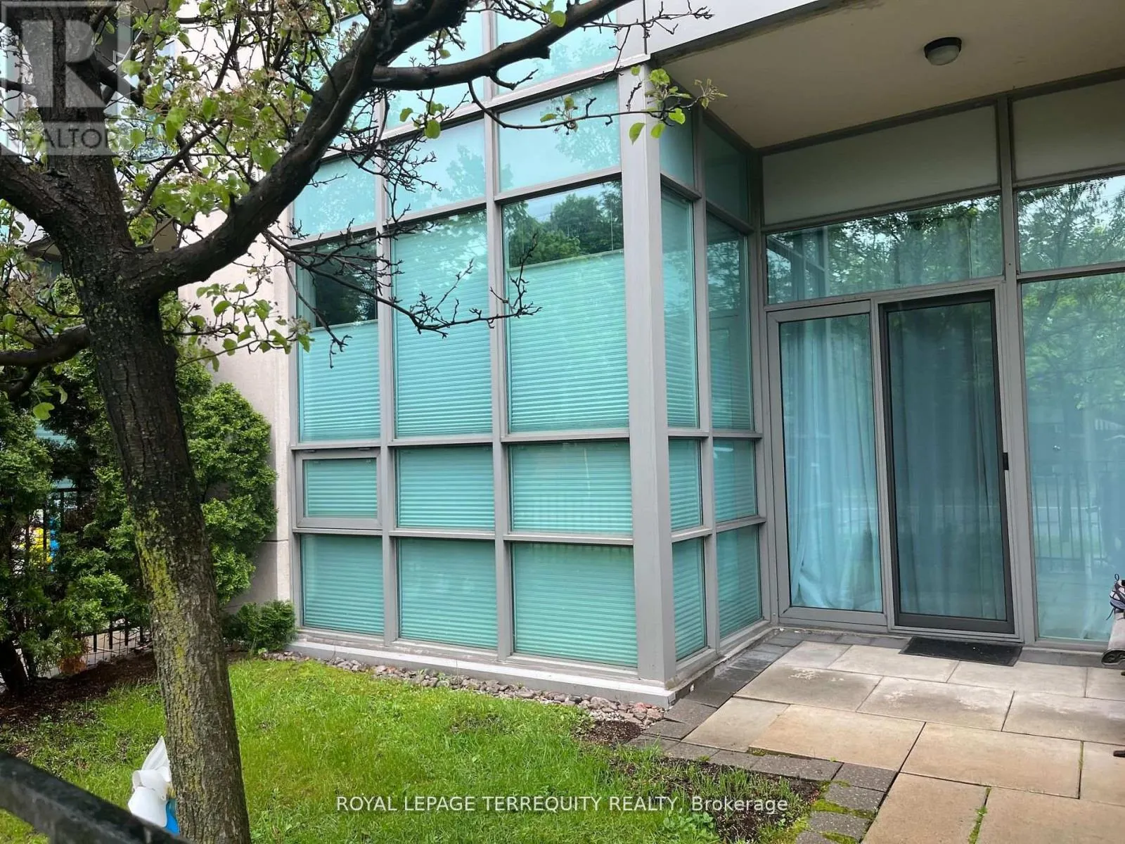 Bathurst/ Wilson Beautiful, bright 1 bedroom + large den in an unbeatable location. This rare ground floor unit offers 9 ft ceilings, a private gated patio, and underground parking. Thoughtfully designed open-concept layout with a versatile den (with French Doors) perfect for a home office or second bedroom. Stylish kitchen with granite counters, ceramic backsplash, breakfast bar, and built-in appliances. Ensuite laundry included. Enjoy the ease of condo living with TTC, shopping, and dining at your doorstep and quick highway access. Exceptional ameninties including 24 hour concierge, renovated gym, sauna, steam room, media lounge, and party room. (id:27476)