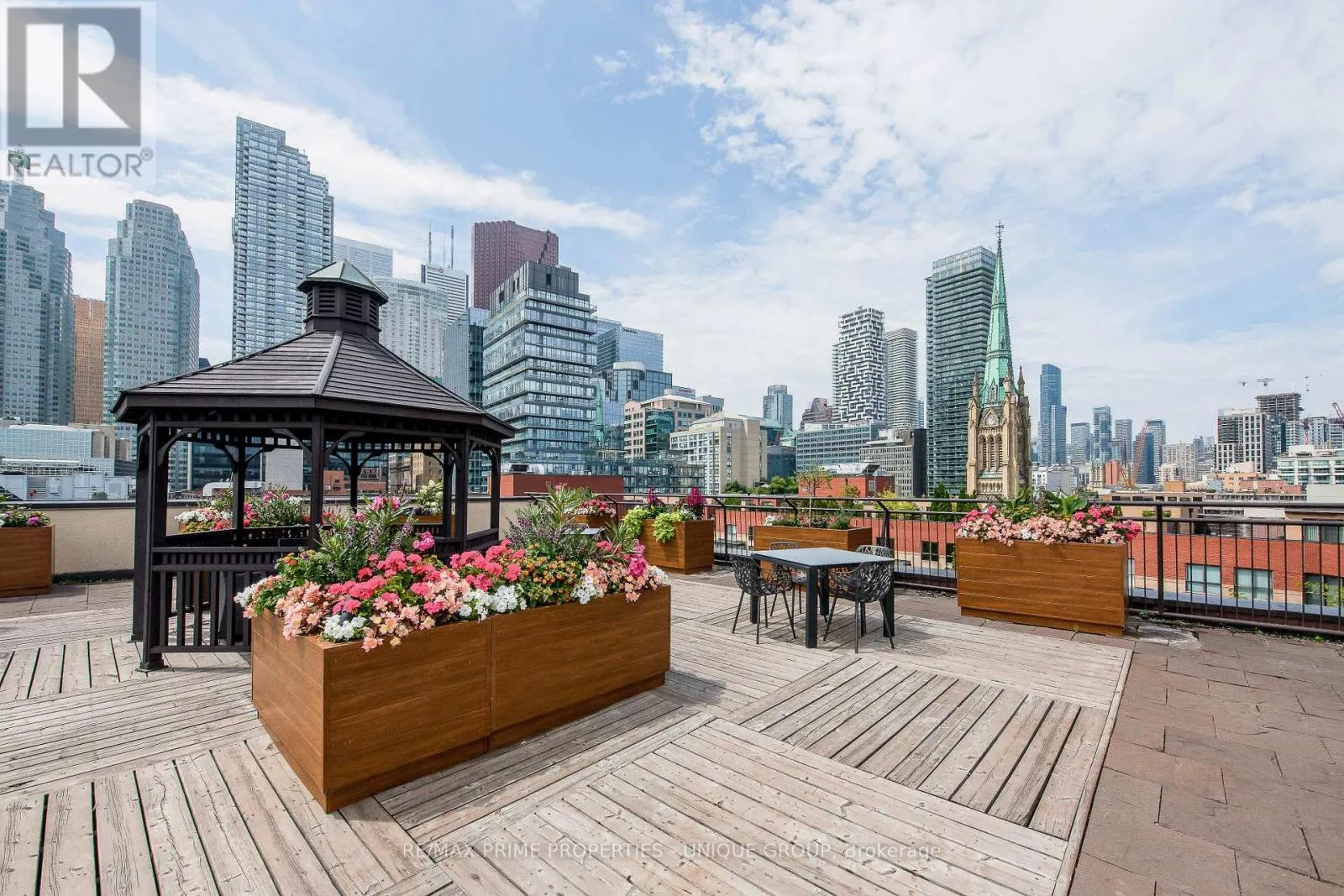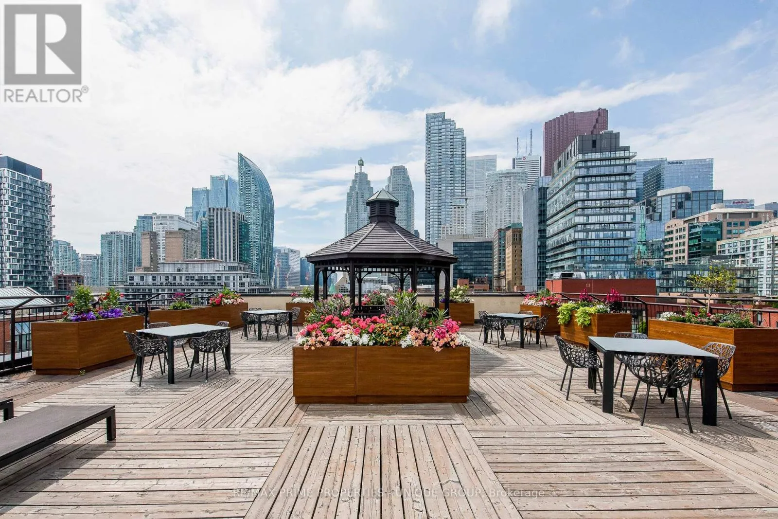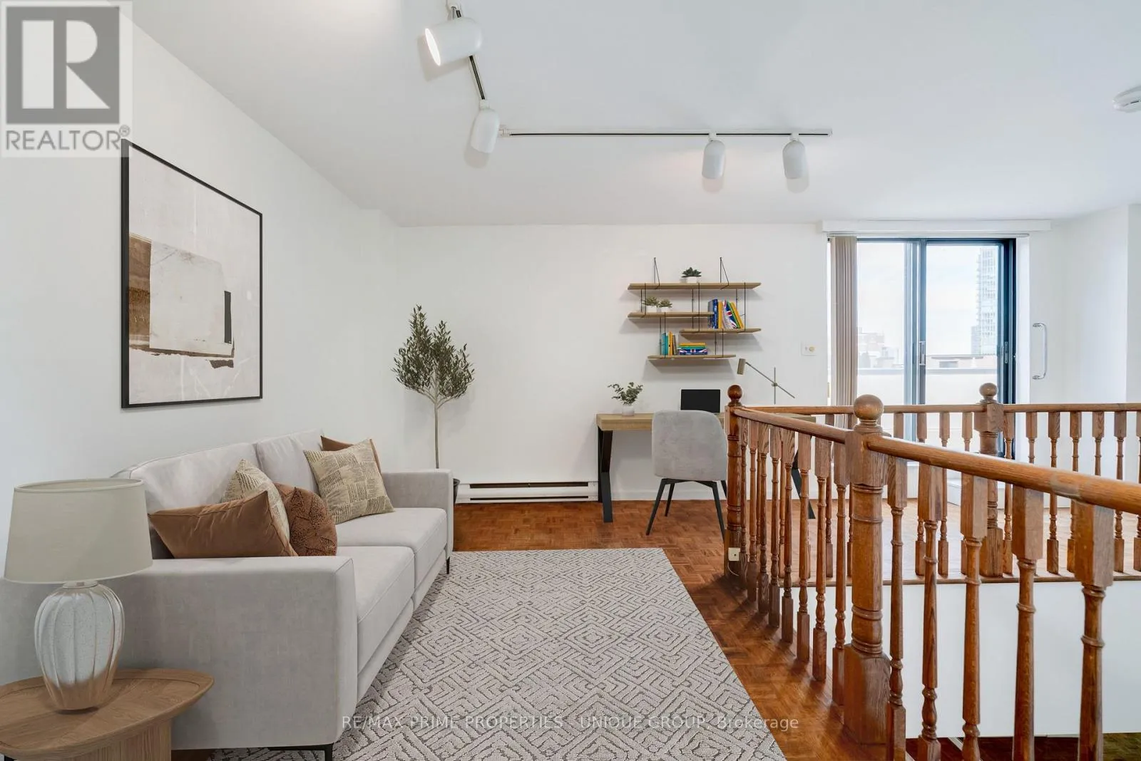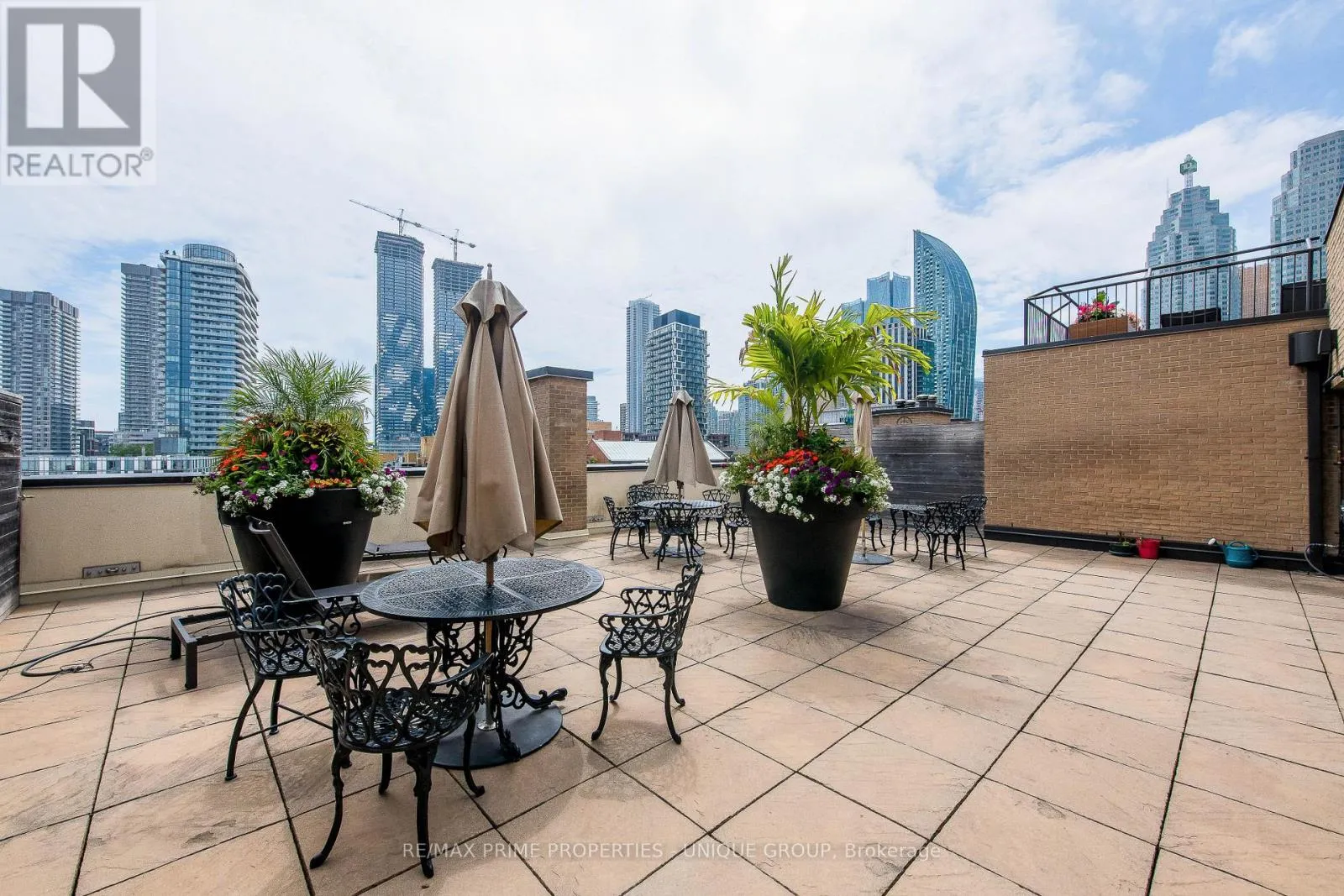 Front & Church Market Square - Penthouse Unit with two bedrooms, two full bathrooms and one two-piece bathroom, upper level den and large terrace. Cozy wood burning fireplace in living. Separate dining area. across from St. Lawrence Market, close to Financial District, theatres, numerous restaurants. Building has many amenities, including indoor pool, saunas, party room, exercise rooms, library, concierge, interior garden. Some photos are virtually staged. (id:27476)