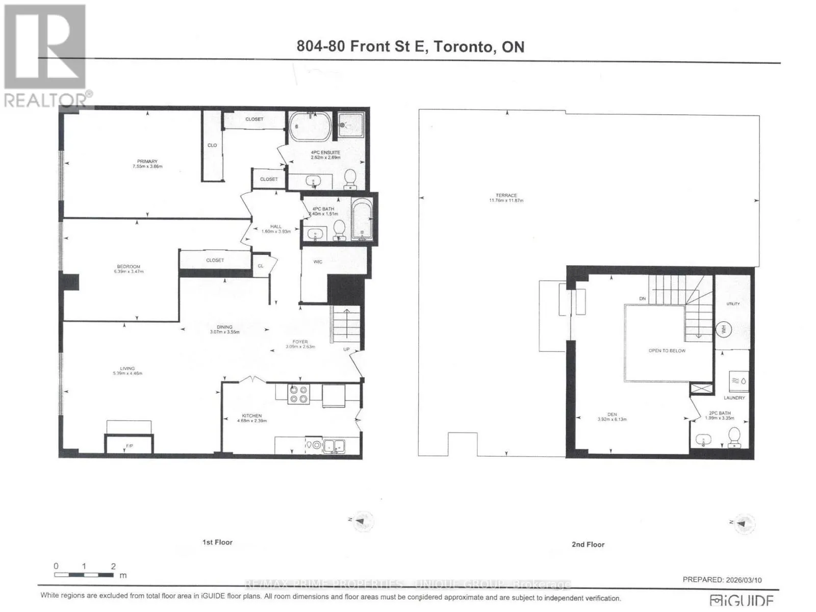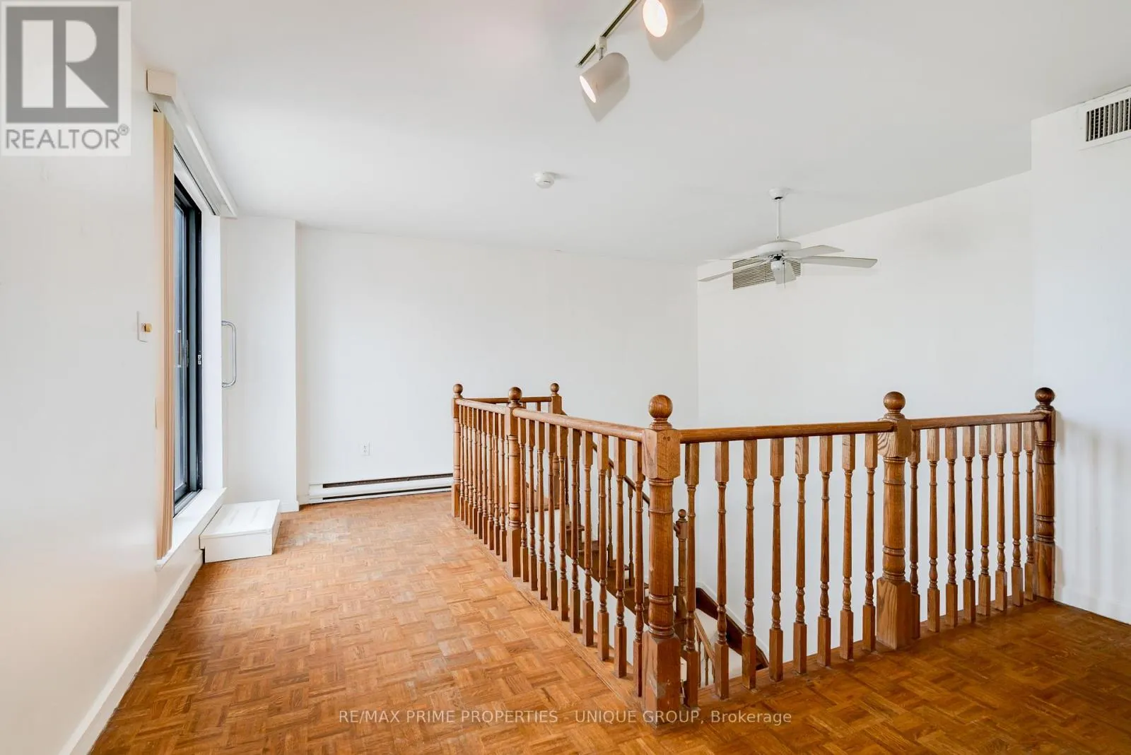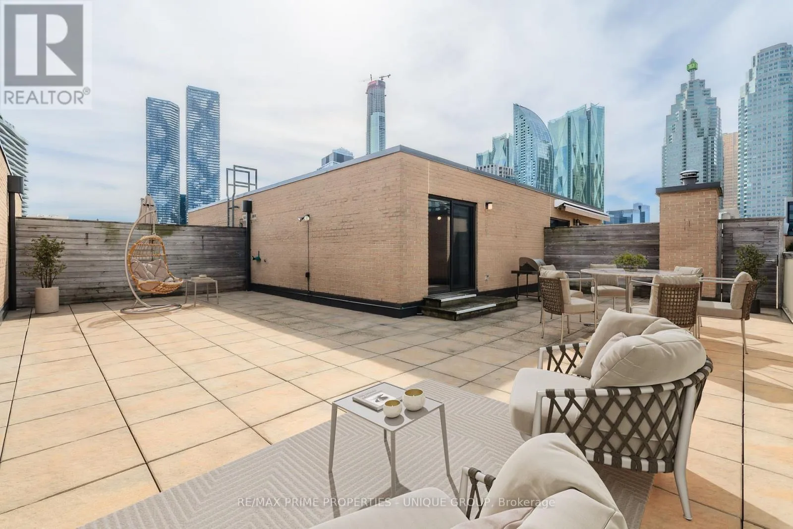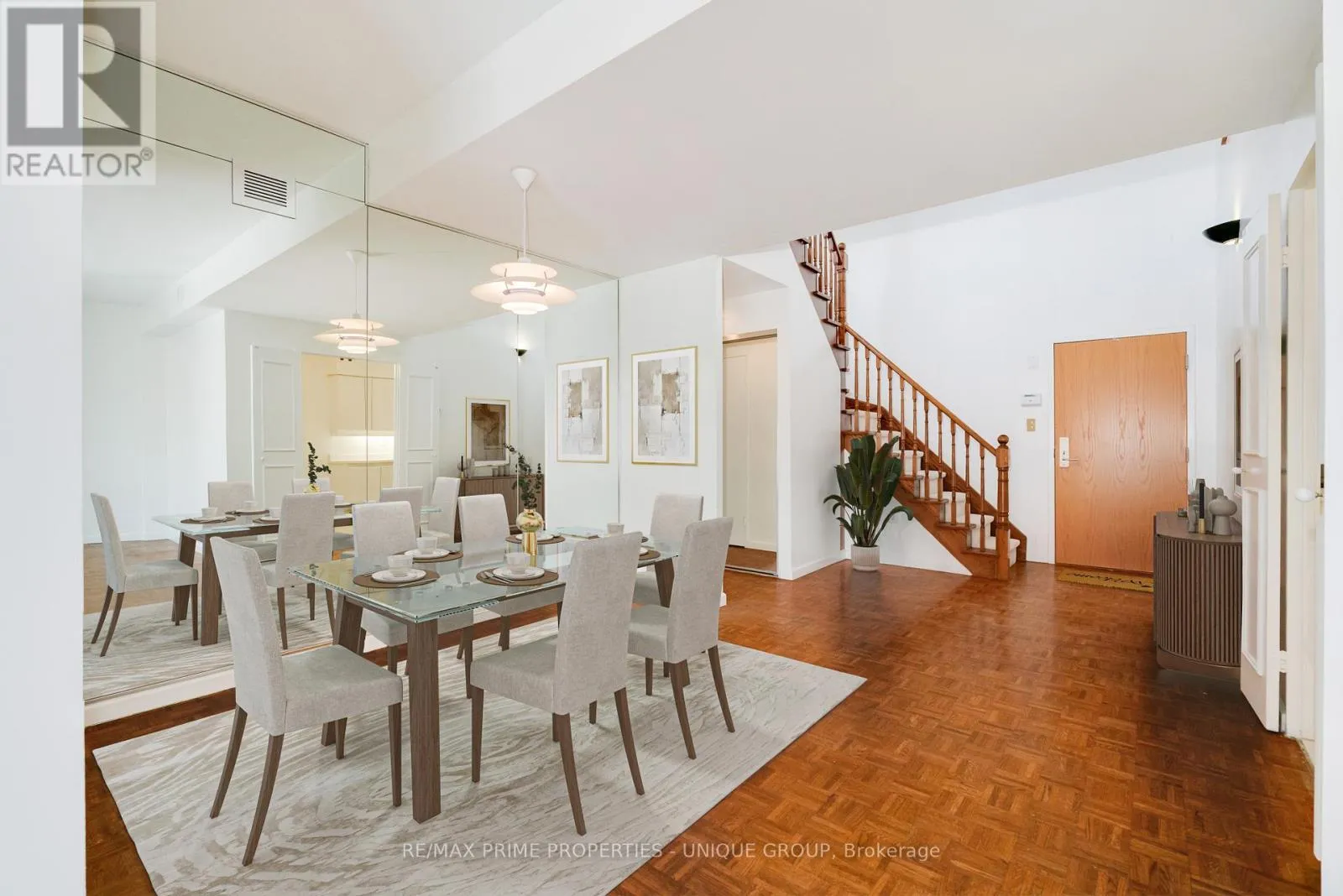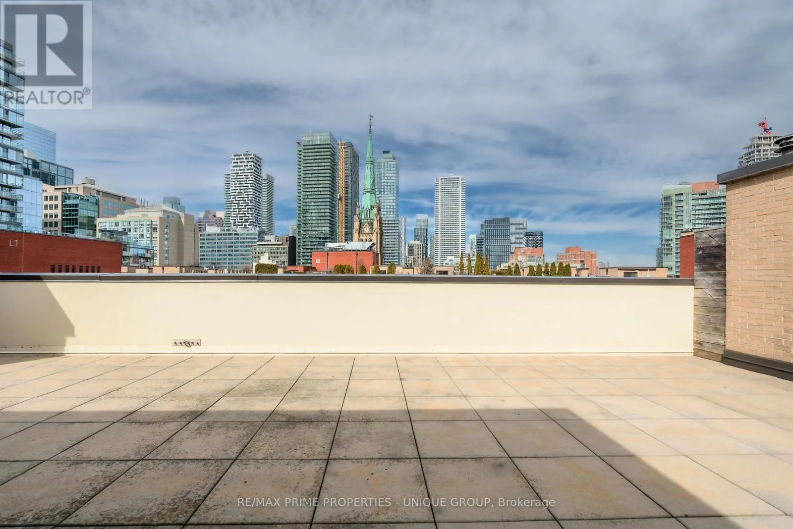 Front & Church Market Square - Penthouse Unit with two bedrooms, two full bathrooms and one two-piece bathroom, upper level den and large terrace. Cozy wood burning fireplace in living. Separate dining area. across from St. Lawrence Market, close to Financial District, theatres, numerous restaurants. Building has many amenities, including indoor pool, saunas, party room, exercise rooms, library, concierge, interior garden. Some photos are virtually staged. (id:27476)