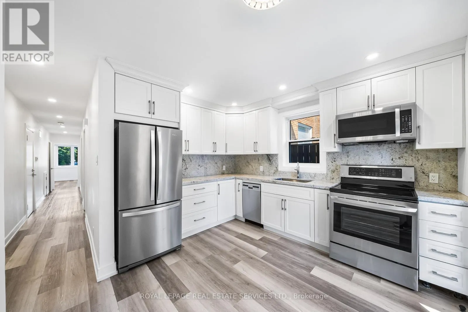 Cross Streets: Twenty Eight/Lake Promenade. ** Directions: -. Welcome to this stylish 2-bed, 2-bath apartment on the main floor of a beautifully maintained triplex in Long Branch. This bright unit offers a spacious layout with modern updates, including crown moldings, pot lights, and upgraded windows and doors. The living room features a built-in media cabinet with smart storage, while the kitchen shines with granite counters, tile backsplash, stainless steel appliances, and ample cabinetry. Enjoy a full 4-piece bath plus a convenient 2-piece powder room. Both bedrooms are generously sized with closets and organizers. Located on a quiet street steps away from Lake Promenade, enjoy easy access to parks, trails, & retail shops, with the TTC & GO Train nearby for easy commuting. Dont miss the chance to make this charming main floor unit your new home in the sought-after Long Branch area! Includes 1 parking spot. Water and heat included, tenant pays hydro. Shared laundry. (id:27476)
