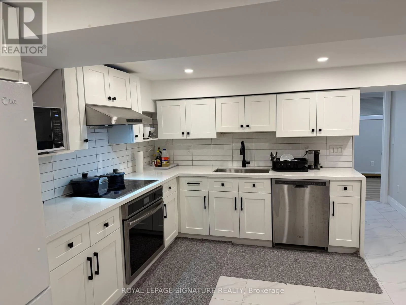 Dixon & Kipling Welcome to 9 Breadner Drive, a beautifully renovated shared basement apartment offering modern comfort in a quiet Toronto neighbourhood. This bright and inviting space features large above-grade windows, a sleek kitchen with stainless steel appliances, quartz countertops, and a stylish ceramic backsplash, along with the convenience of ensuite laundry. The kitchen and laundry are shared with other occupants and are maintained in a clean and respectful environment. The currently available bedroom is a spacious unit offering a private ensuite bathroom, additional storage, and access to a dedicated refrigerator for added convenience. Utilities are all-inclusive, providing simple and predictable monthly expenses. Parking is available at an additional cost. Ideally situated just minutes from Highway 427 and Toronto Pearson International Airport, this location offers excellent connectivity across the city. Close to public transit, shopping, parks, and everyday amenities. Please note: Pets are present in the owner occupied upper level. This is a shared accommodation setting currently occupied by working professionals, best suited for a single occupant who is comfortable sharing common spaces and maintaining a respectful and cooperative living environment. (id:27476)