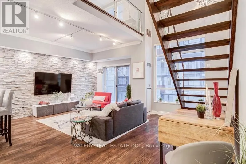 Richmond/University Welcome to this exceptional penthouse two-storey loft at 168 Simcoe Street, offering over 1,000 square feet of bright and thoughtfully designed living space. This rare one-bedroom residence stands out for its expansive layout, soaring ceilings, and functional design, a true departure from the typical downtown condo.The open-concept main level features full-size appliances, a spacious kitchen island ideal for entertaining, and a dedicated pantry for added storage. The unit is equipped with a stacked washer and dryer for convenience, and the generous living space is filled with natural light. Upstairs, the loft-style bedroom overlooks the main living area, creating a modern yet warm atmosphere. The spa-inspired bathroom is beautifully appointed with a jacuzzi bathtub, a separate oversized shower, and a double-sink vanity, offering both comfort and luxury. Units in this well-maintained building rarely become available, making this a truly unique opportunity to own a substantial loft in the heart of downtown. (id:27476)