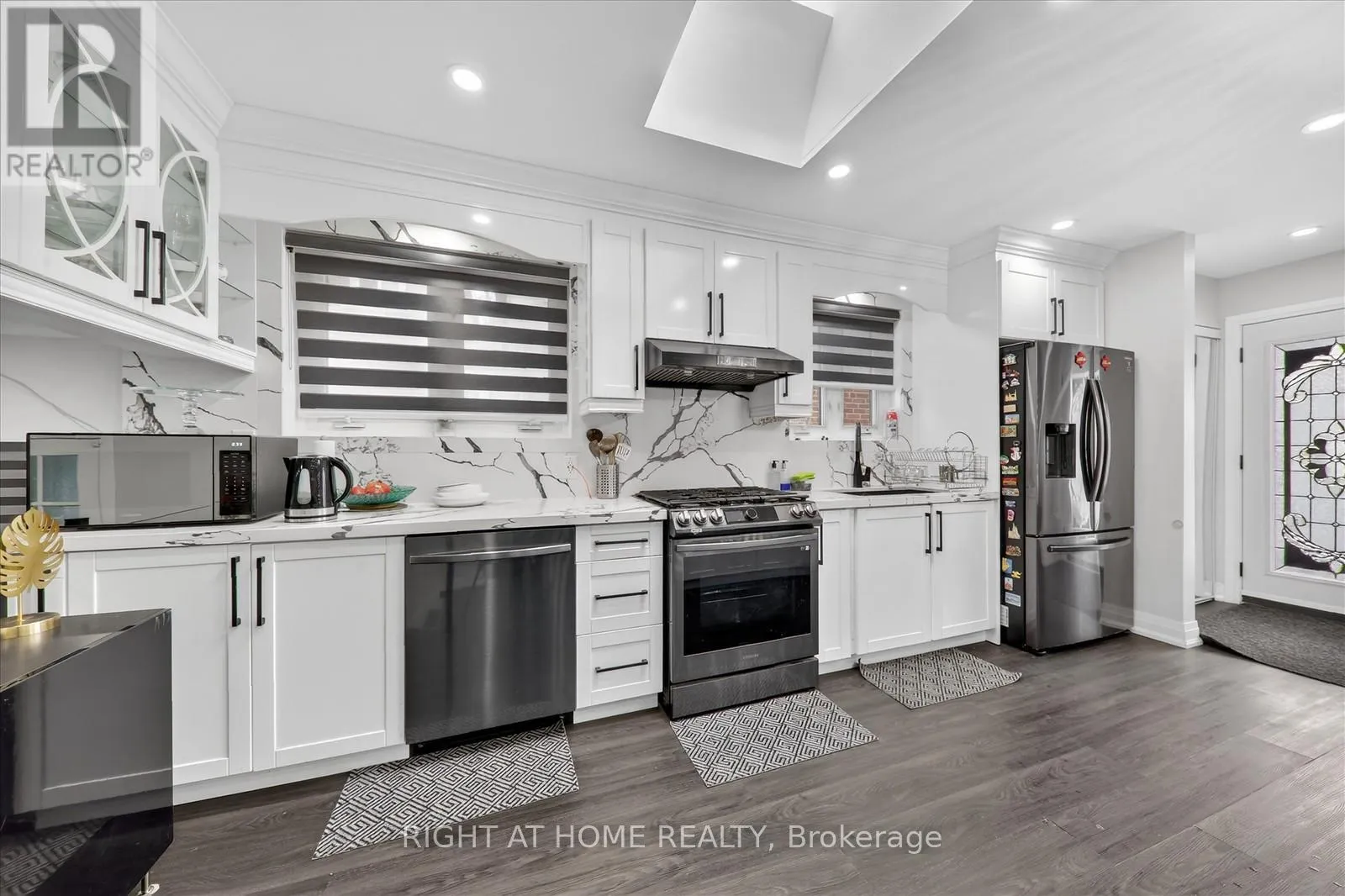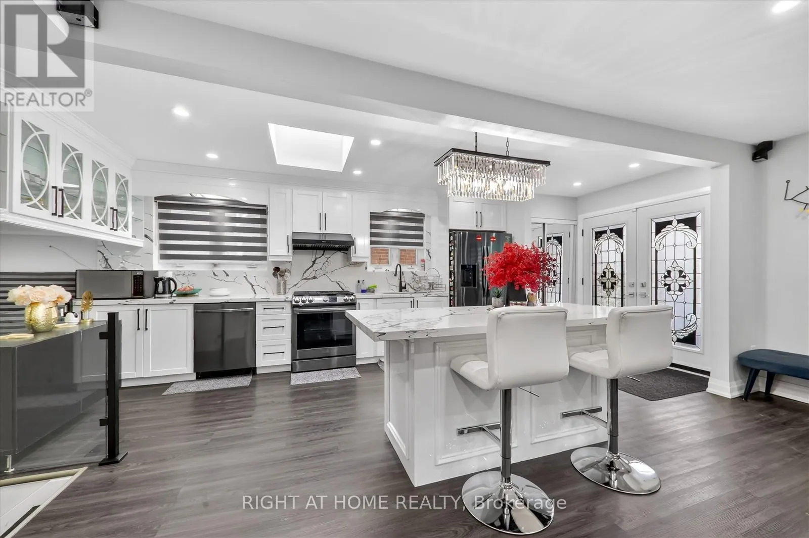 Old Kingston Rd/Military Trail Welcome to a beautifully renovated 4+1 room, 3-bathroom home in the prestigious Highland Creek community. Set on a rare 50 x 278 ft deep lot, this property offers significant long-term value and flexibility for investors, custom home builders, or end-users. Over $100,000 has been invested in renovations, featuring a modern layout with a kitchen that includes an island, gas stove, and black stainless steel appliances. A 360 sq. ft. addition was completed with a permit, providing additional functional living space to the floor plan, complemented by pot lights throughout the interior and exterior. Technical specifications include an upgraded 200 AMP electrical panel and a Lorex security system. A 2023 survey is available for review. The exterior features a double garage and a 4-car driveway with no sidewalk, maximizing the frontage and parking capacity. Given the lot depth, there is potential to explore further renovations, a custom build, or a garden suite. This home is located minutes from the University of Toronto Scarborough campus and is in close proximity to parks, trails, schools, and everyday amenities. (id:27476)