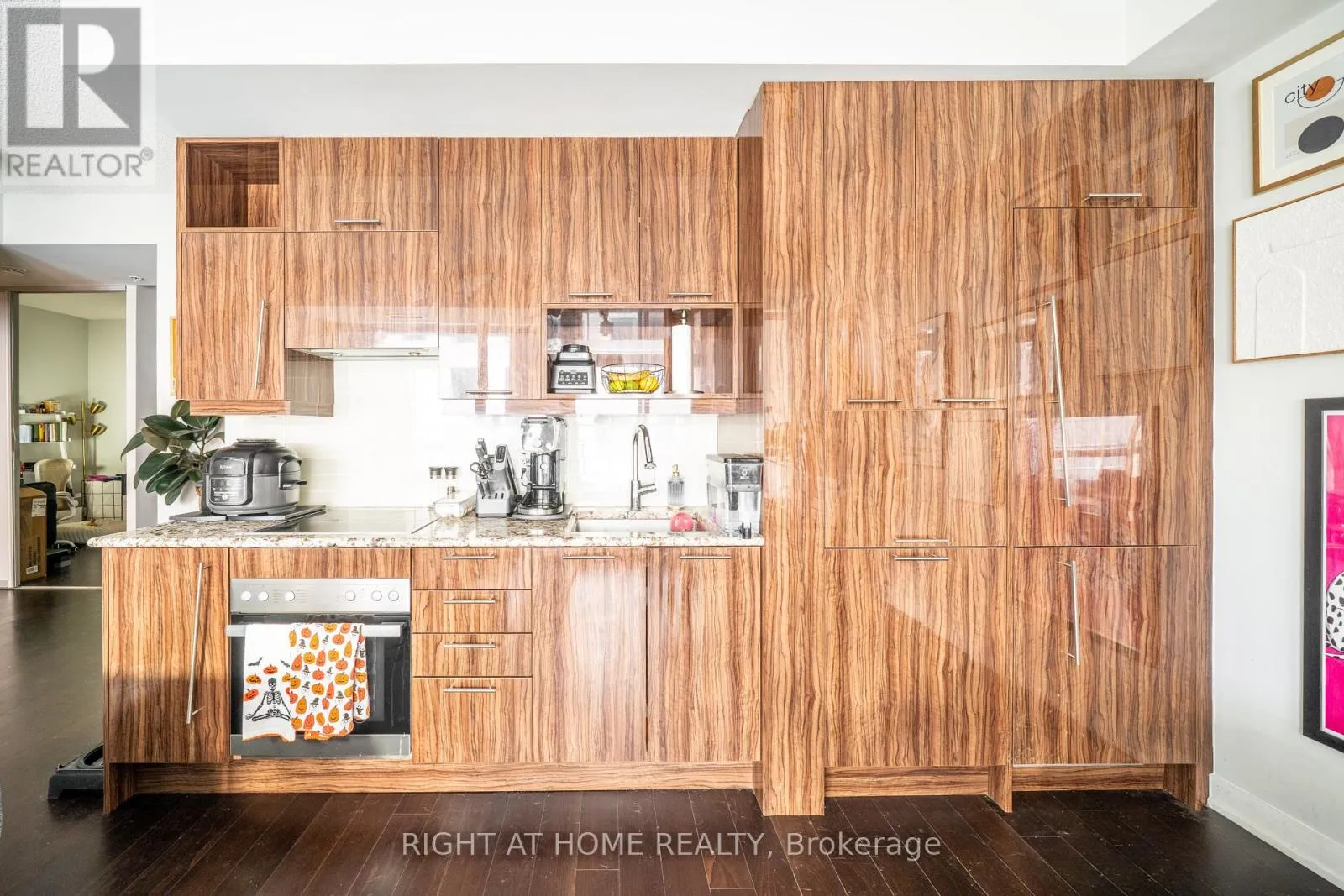 Cross Streets: Richmond Street West / University Ave. ** Directions: South of Queen St W, West of University Ave. Take a full 3D interactive virtual tour of this suite and explore every detail from home. Currently tenanted at $2,750 per month, this 1+ Den condo offers built-in income for buyers seeking a turnkey investment or a flexible downtown residence with strong rental appeal. In a market filled with listings, this suite stands apart. Located in the sought-after Studio on Richmond by Aspen Ridge Homes, it is one of the few downtown buildings that allows short-term rentals within condo guidelines - an advantage that expands options for both investors and end users.The 731 square foot layout is exceptionally functional, with an enclosed den featuring sliding doors that can serve as a second bedroom or private office, and two full bathrooms ideal for shared living or hosting. The kitchen is streamlined along one wall with built-in Miele appliances, a panelled fridge and dishwasher, and generous space for dining and living. Nearly nine foot ceilings and floor-to-ceiling windows fill the suite with natural light, while a full-width covered balcony remains private and usable year-round. The primary bedroom includes a double closet, and a pantry-style closet off the living area keeps clutter out of sight. Parking and a locker are included, adding real value in this prime location. Outside your door, Osgoode Station is only minutes away. Queen and King West, Roy Thomson Hall, Rogers Centre, and many of Toronto's top restaurants are within easy reach. When you want calm, enjoy the building's resort-style amenities, including a green second - floor terrace, rooftop BBQs, gym, yoga studio, billiards lounge, party rooms, and lightning fast FibreStream Internet.This is a revenue smart opportunity in one of downtown Toronto's most vibrant and desirable neighbourhoods. (id:27476)