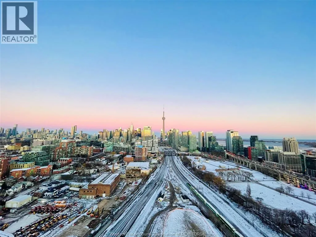 Rarely offered high-floor 2-bedroom corner suite at Garrison Point featuring breathtaking, unobstructed views of the CN Tower, Toronto skyline, and Lake Ontario. This bright and modern unit showcases floor-to-ceiling windows and two private balconies with north and south exposure, delivering stunning sunrise lake views and dramatic sunset cityscapes. The panoramic views stretch across downtown Toronto, offering a true âabove the cityâ living experience. Inside, the suite features a sleek open-concept layout with a contemporary kitchen, quartz countertops, stainless steel appliances, and a functional island perfect for dining and entertaining. The living space is thoughtfully designed with clean finishes, wide-plank flooring, and an abundance of natural light throughout. The unit includes one private underground parking space equipped with EV charging â a rare and highly desirable feature in downtown Toronto. If the tenant has an electric vehicle and chooses to use the charging system, they will be responsible for all associated electricity costs. Residents enjoy access to top-tier amenities including a fully equipped fitness centre, yoga studio, outdoor pool, stylish lounge areas, and a beautifully designed modern lobby with 24/7 security. Located in the heart of Liberty Village, one of Torontoâs most vibrant and sought-after neighbourhoods. Steps to King West, Queen West, waterfront trails, parks, cafés, restaurants, and grocery stores. Directly across from Exhibition Place and minutes to the Financial District with convenient TTC access. Perfectly positioned for Torontoâs major events including TIFF, Caribana, concerts, and FIFA 2026. (id:27476)