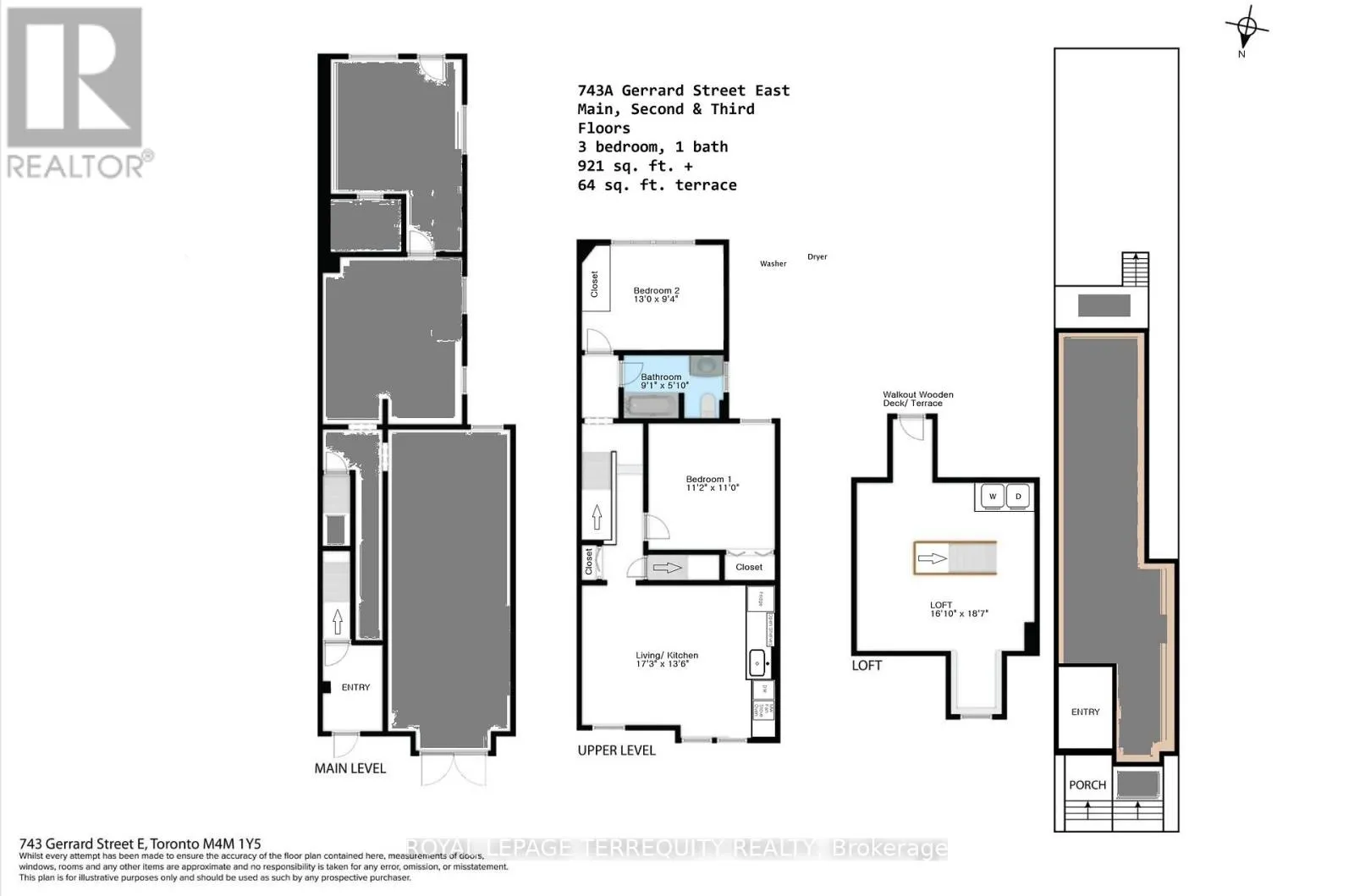 Logan & Gerrard St E A newly-renovated 3 bedroom, 1 bathroom home in the heart of Gerrard East with quick access to Broadview, Carlaw, Withrow Park, Danforth, Leslieville and the DVP.This home boasts 921-square feet of tastefully-designed living space that is newly renovated with attention to design, flow and function.A walkup private entrance from Gerrard St E welcomes you into a private lobby with double-door security access into your home. The second floor features a quartz kitchen, a bright living space, two distinct bedrooms and a full bathroom with a soak-in tub. Nestled on the top floor is a private live-work loft ideal for sleep, work and yoga, featuring a reading nook that peeks onto the street through a hidden window, a full in-suite laundry station and a walkout to a private rooftop terrace.Stroll in any direction to amazing restaurants, bars and cafes including Batifole, Wynona, Lady Marmalade, Bakerrae, Oji Seichi, Hailed, Alice-Marie, Dineen, Pinkerton, Poor Romeo, ANGLR and many more.This home is ideal for a family, school mates, couples and professional artists looking for an inspirational space to call home. Move in by mid-April 2026.FYI Front facade to be redone shortly. Pls Note*Renderings by designer to visualize space. (id:27476)