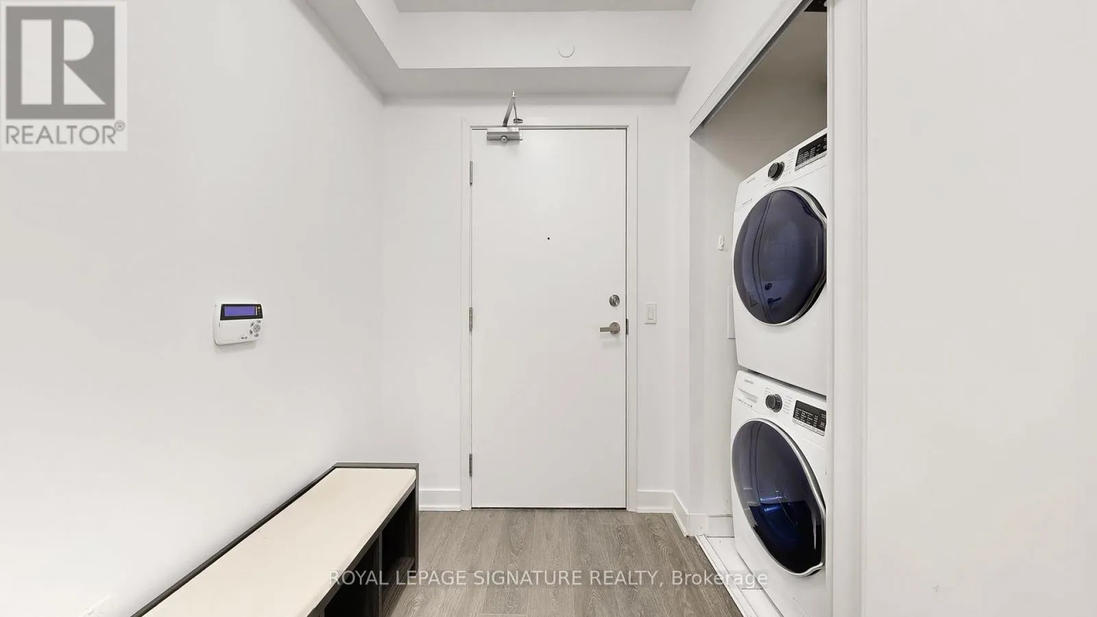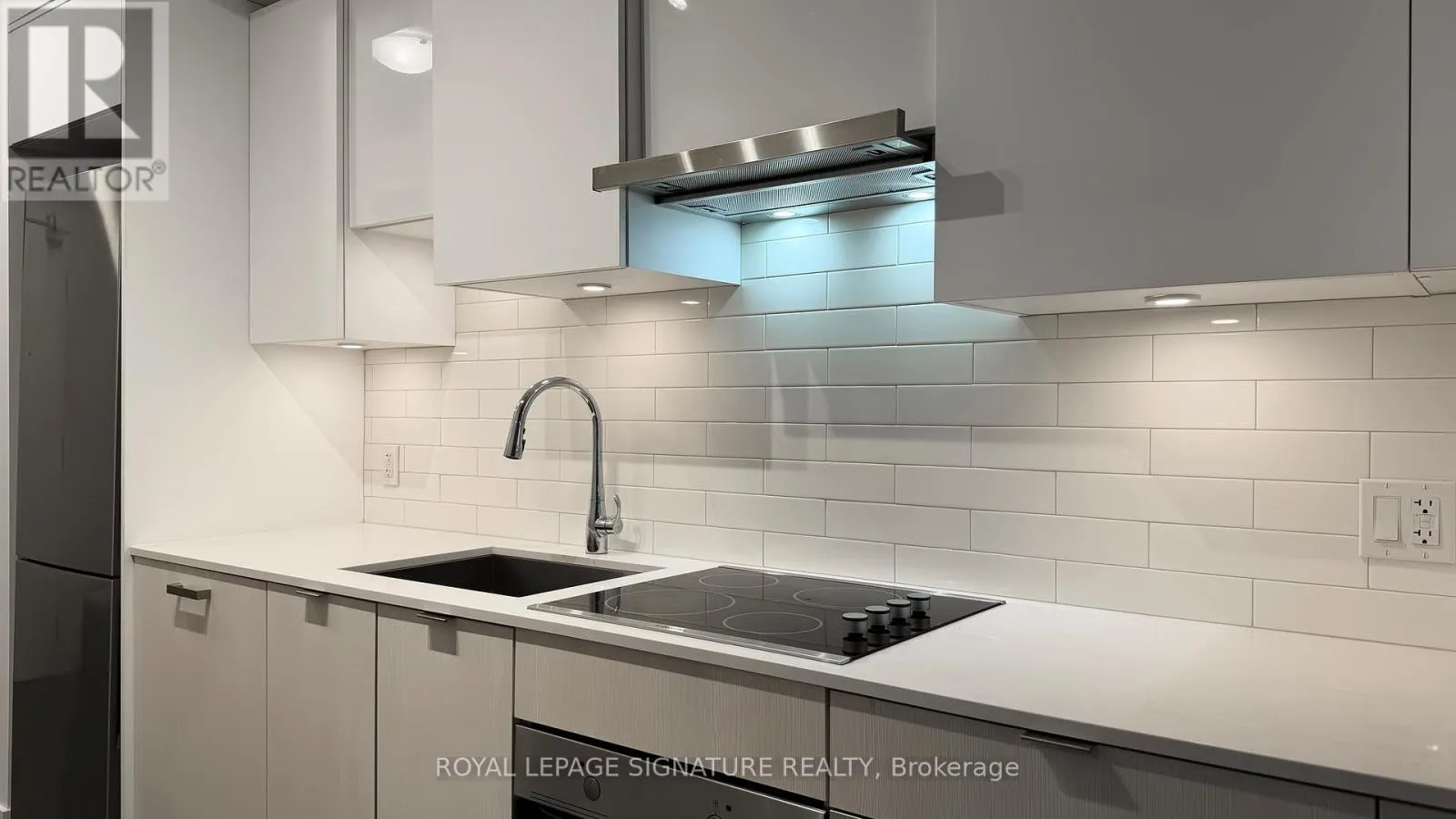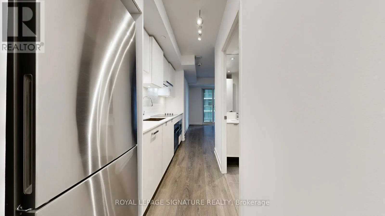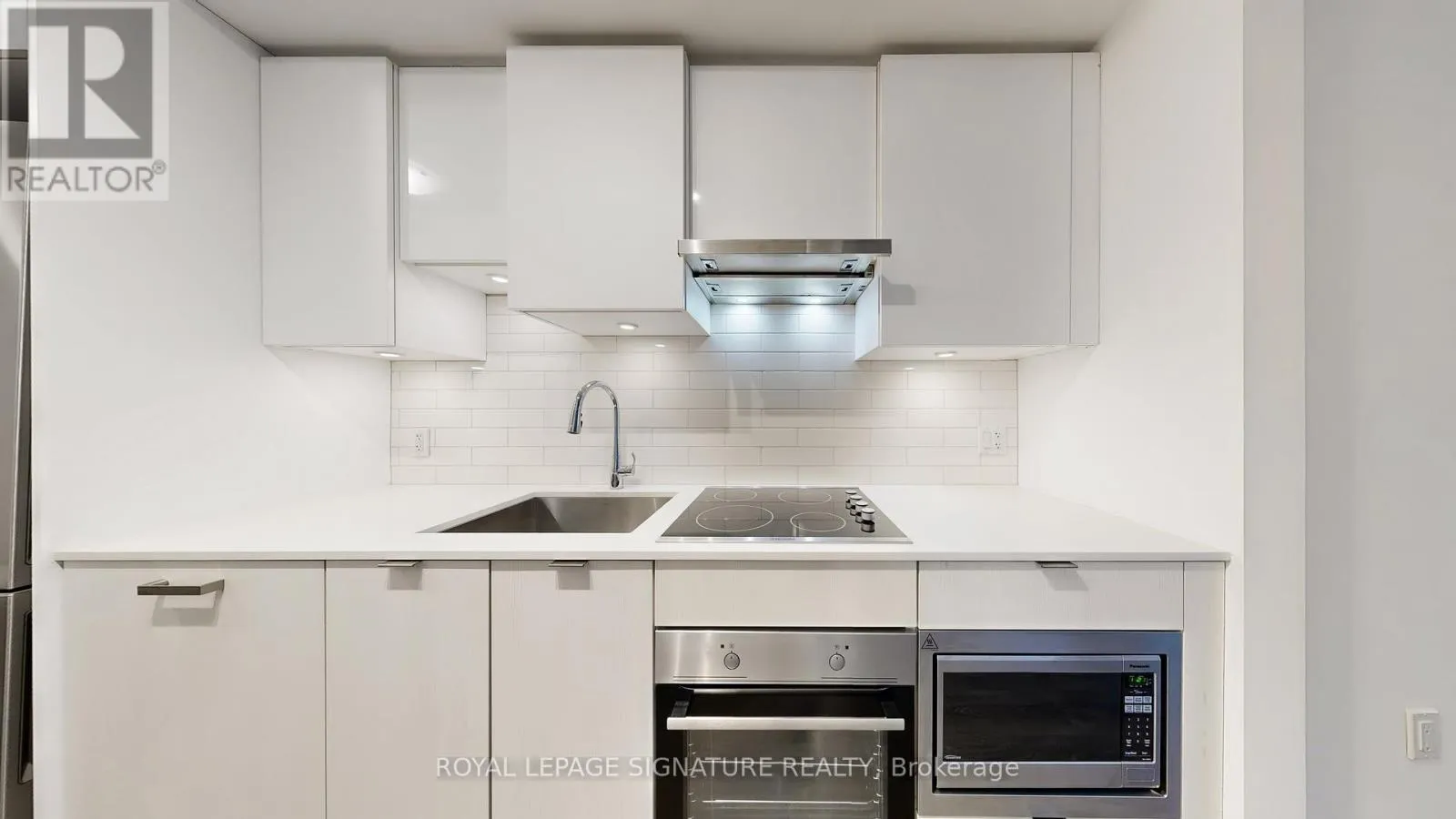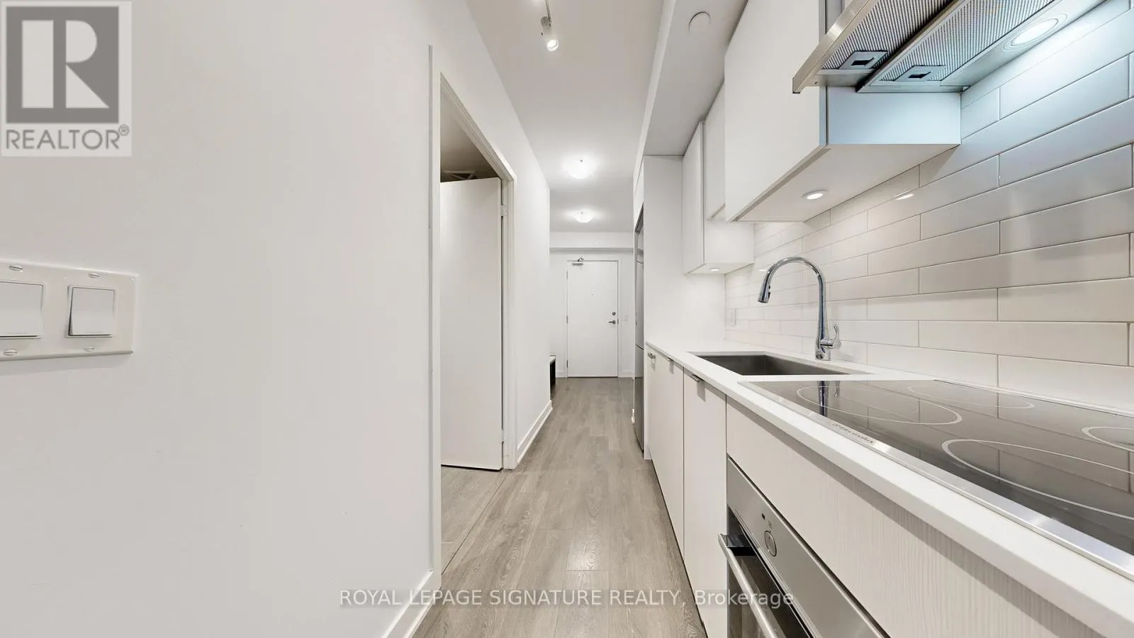 Cross Streets: Broadway/Redpath. ** Directions: East of Yonge north on Redpath. Bright and modern 1+1 bedroom condo in the heart of Yonge & Eglinton. Step into an open-concept living and dining area finished with wide-plank laminate flooring throughout, flowing seamlessly to an extra-long balcony that spans the full width of the unit-perfect for lounging or container gardening with stunning city views. The sleek contemporary kitchen impresses with integrated fridge and dishwasher, glass cooktop, built-in oven and microwave, quartz countertops, subway tile backsplash, and ample cabinetry for all your storage needs. The generous primary bedroom offers a deep closet and floor-to-ceiling windows for natural light, while the versatile den serves ideally as a home office, nursery, or guest room. Enjoy a stylish 4-piece bathroom featuring a glass-enclosed walk-in shower and modern vanity, plus convenient in-suite stacked washer and dryer right by the foyer. Just steps to TTC subway, shops, restaurants, parks, and schools in a well-maintained building with excellent amenities including guest suites. Available immediately for professionals or couples seeking turnkey midtown Toronto living. (id:27476)
