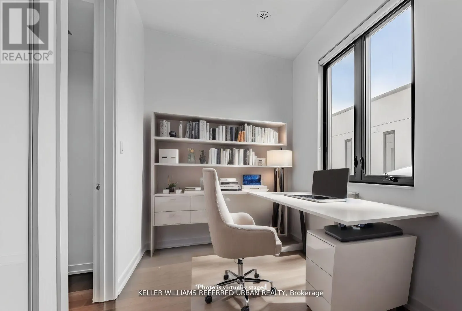 College and Ossington Luxury Executive Laneway Home in Little Italy. This sleek corner townhouse is the ultimate sanctuary for the modern professional or a sophisticated work-from-home duo. Spanning 4 levels of striking contemporary design, the interior features soaring 10 & 12ft ceilings, a glass-encased floating staircase, and a gourmet Scavolini kitchen with premium integrated appliances. Freshly curated in 2025 with designer paint. Architectural Privacy: The verticallayout offers perfect acoustic separation for multiple office setups. The 3rd floor is a dedicated Primary Suite Sanctuary with a 5-piece spa ensuite and walk-in closet. Enjoy a private terrace and the rare downtown luxury of a private underground built-in garage with direct access. Steps to the city's best on College, Ossington, and Trinity Bellwoods. Asophisticated, low-maintenance trophy home for those seeking privacy, style, and a walkable urban lifestyle. (id:27476)