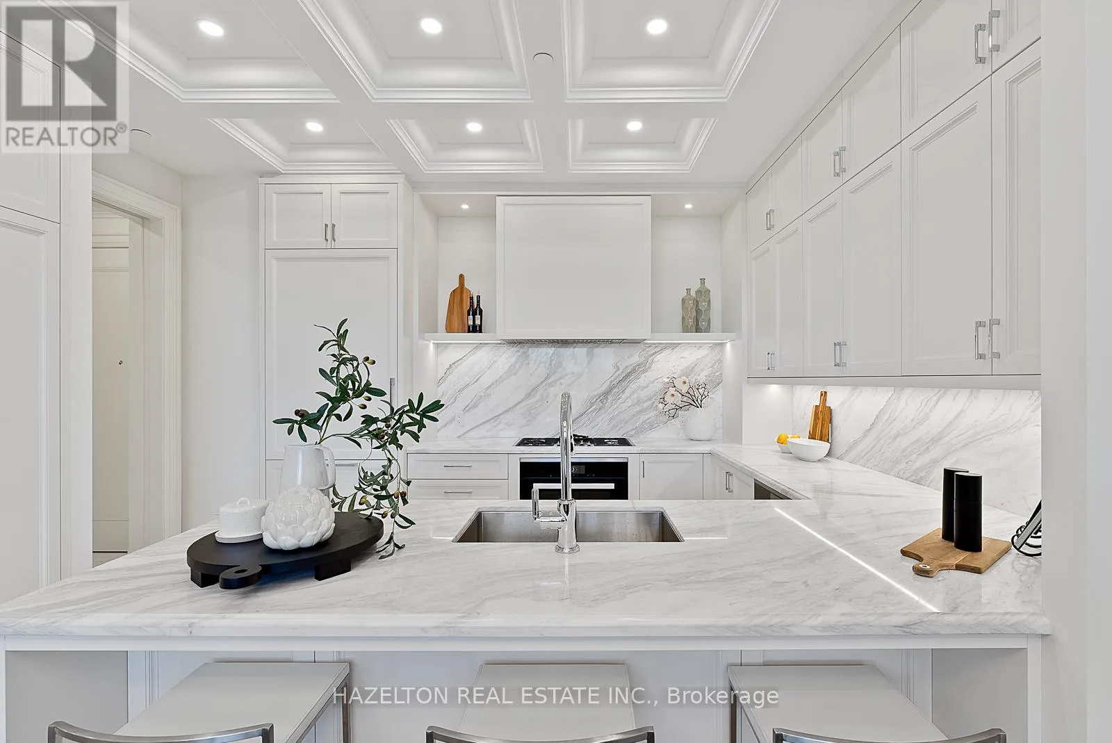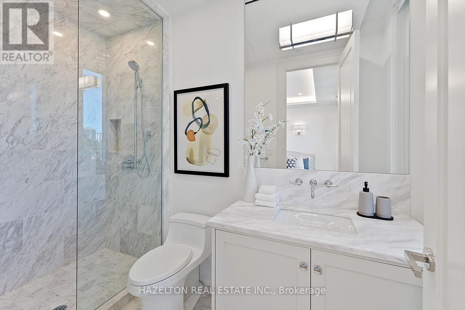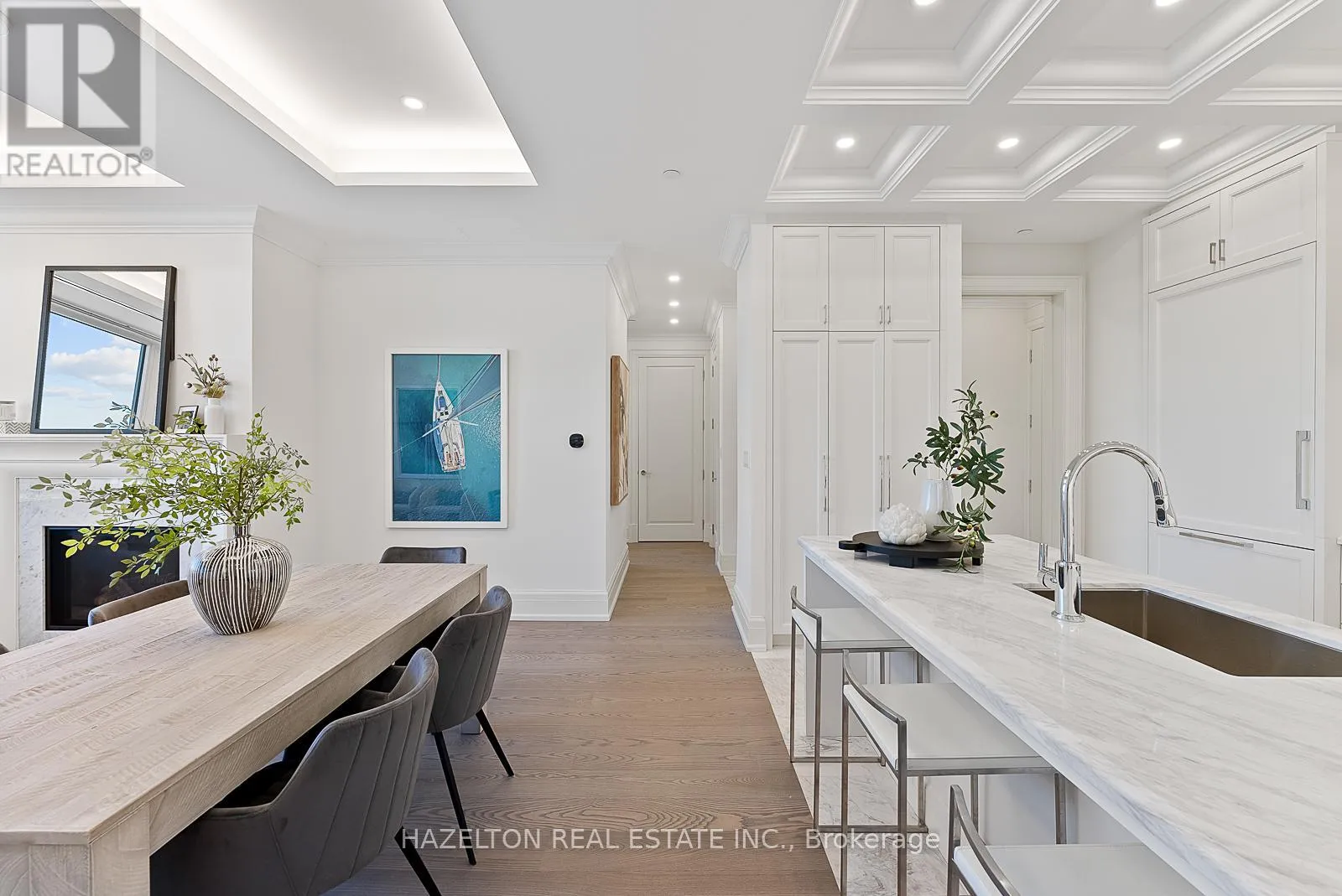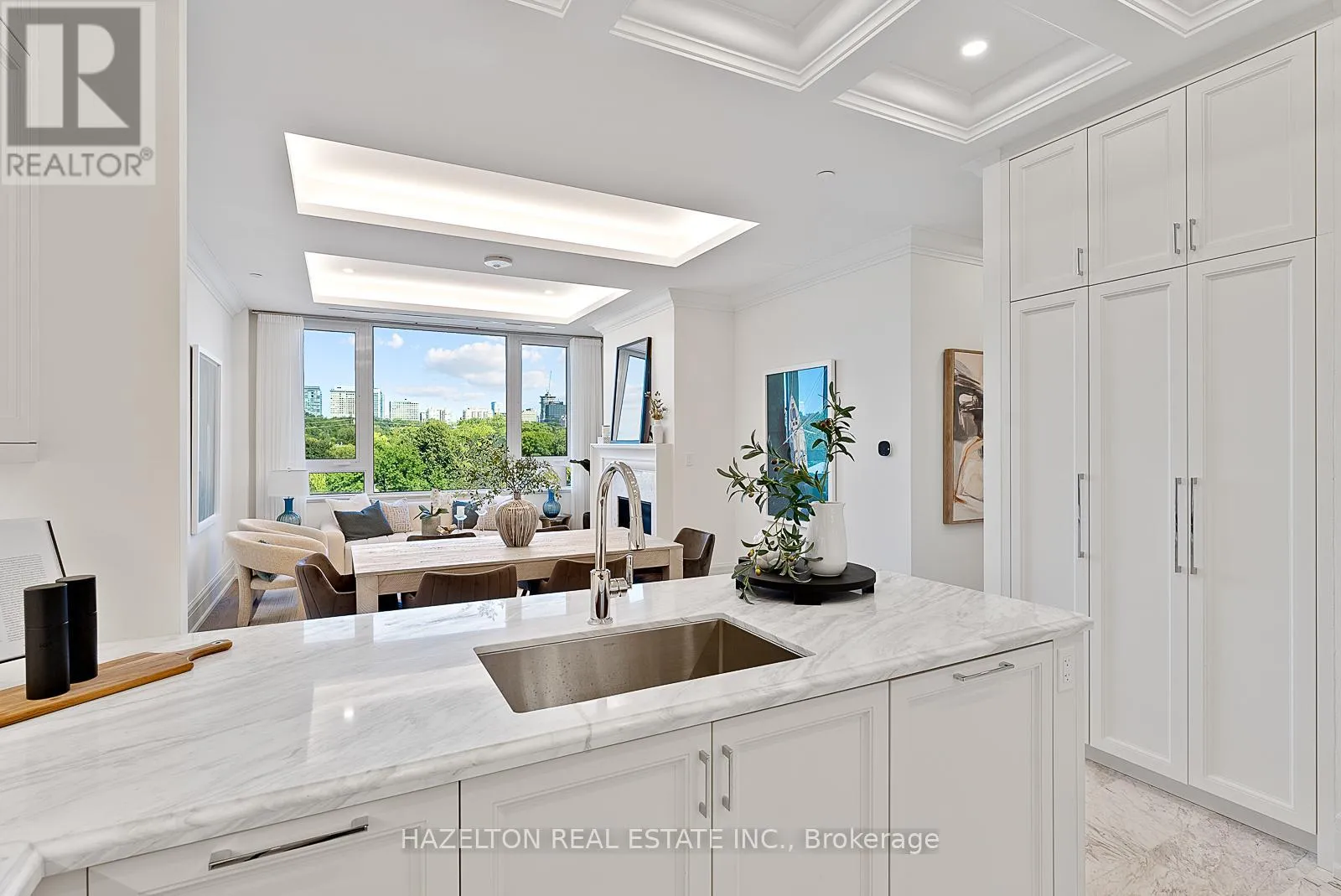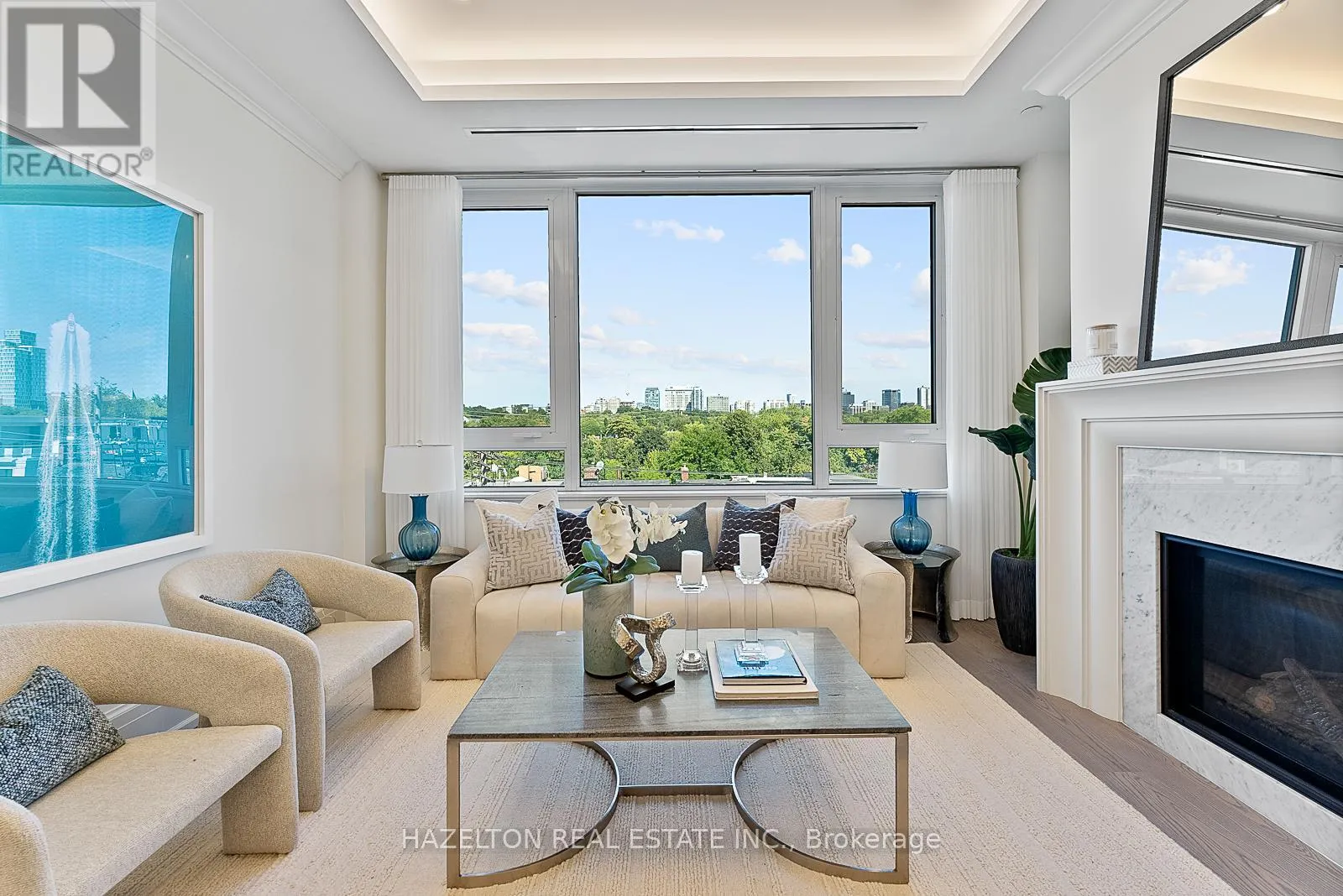 Cross Streets: Davenport/Avenue Rd/Hazelton. ** Directions: East of Avenue Rd, corner of Hazelton. Yorkville perfection, this nearly 1600 sq ft condo is a gem within a premier boutique building, located in the city's best neighborhood. This residence boasts numerous luxurious upgrades, including elegant hardwood floors and marble finishes in all three bathrooms. The kitchen features stunning marble countertops and a matching slab backsplash, creating a seamless and sophisticated look with top of the line built in appliances. The living area is enhanced by a romantic gas fireplace with a custom mantle, perfect for relaxing romantic evenings. Two charming juliette balconies (one in each bedroom) with lovely clear views over the leafy green treetops of Ramsden Park. The custom coffered ceilings with recessed lighting add an extra layer of elegance and sophistication to the home. Relaxing evenings in the generously sized den, with wall-to-wall built-in millwork to provide exceptional storage makes this an ideal home office or TV space. A bright and well sized primary bedroom features a custom walk in closet interior, designed to maximize space and organization and a 3 piece marble ensuite. This condo is a perfect blend of luxury and comfort, making it an ideal home in one of the city's most sought-after locations. (id:27476)