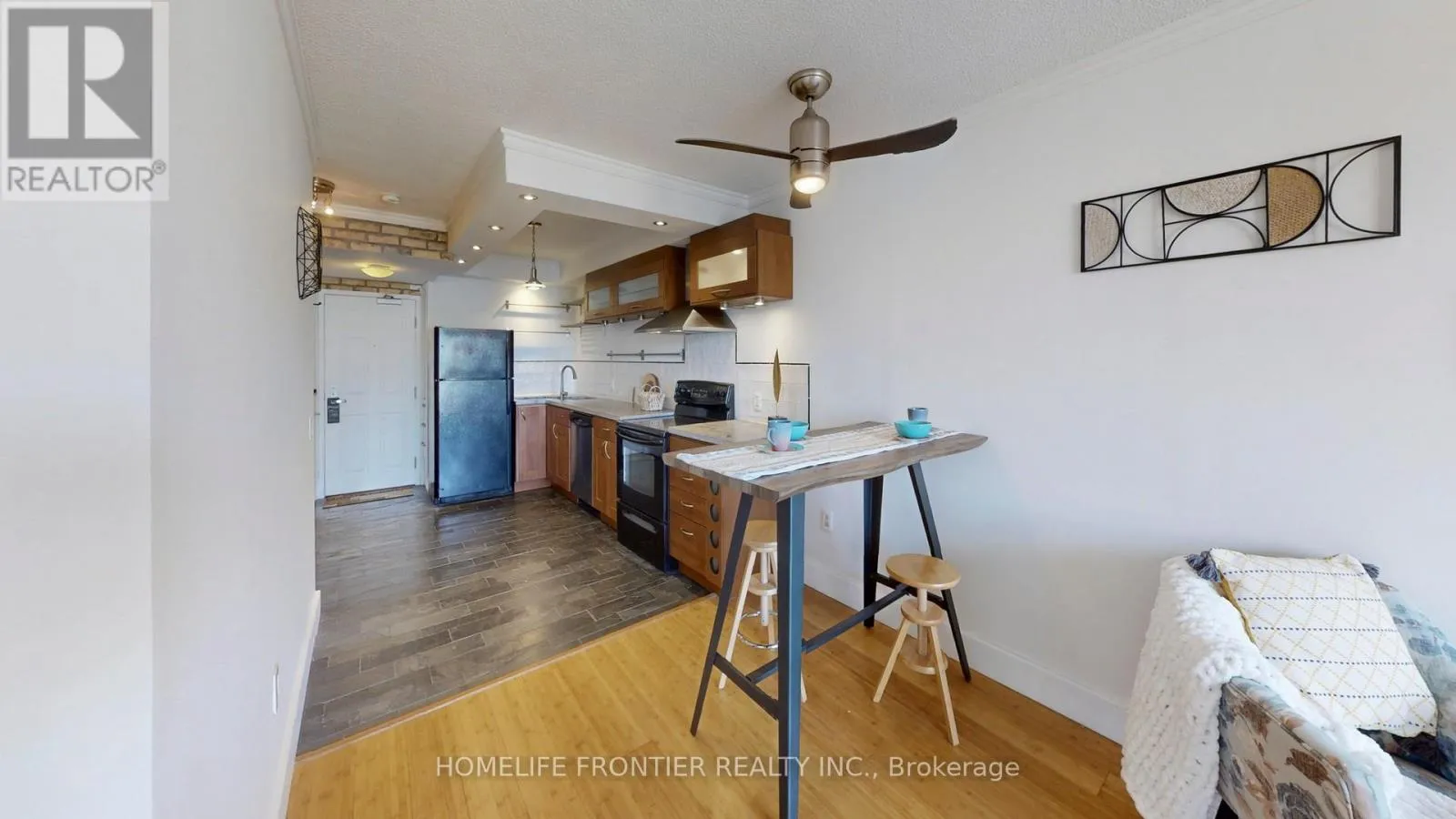 Bloor St W/St. George Discover the Gem of St George Mews -a boutique residence nestled in the heart of The Annex. This quiet boutique residence combining charm, convenience, and character. It's a tranquil retreat in the city. Welcome to Suite 806- a thoughtfully designed One bedroom plus den suite offering 665 square feet of bright, open-concept living space. Large windows in both Living room and Den invites natural light and offer tranquil, tree-lined views. The versatile den, complete with a stylish built-in bookcase, is perfect as a home office, second bedroom, or cozy family room. Luxury details include sleek bamboo flooring throughout, a custom-designed kitchen with contemporary finishes, and a built-in closet in the primary bedroom. The suite includes a private locker for additional storage and all utilities included. The boutique building boasts resort-style amenities such as Rooftop Garden, Lounging Area, Exercise Room, and a Party Room. Enjoy being steps away from the University of Toronto, Yorkville, Bloor Street, and a variety of local cafes. With a Walk Score of 98 (Walker's Paradise) and a Transit Score of 98 (Rider's Paradise). Everything you need is within reach, including the St. George subway Station. Move in and enjoy the unparalleled lifestyle this suite offers. It's an ideal for professionals, students, or anyone seeking tranquility in the vibrant heart of the city. (id:27476)