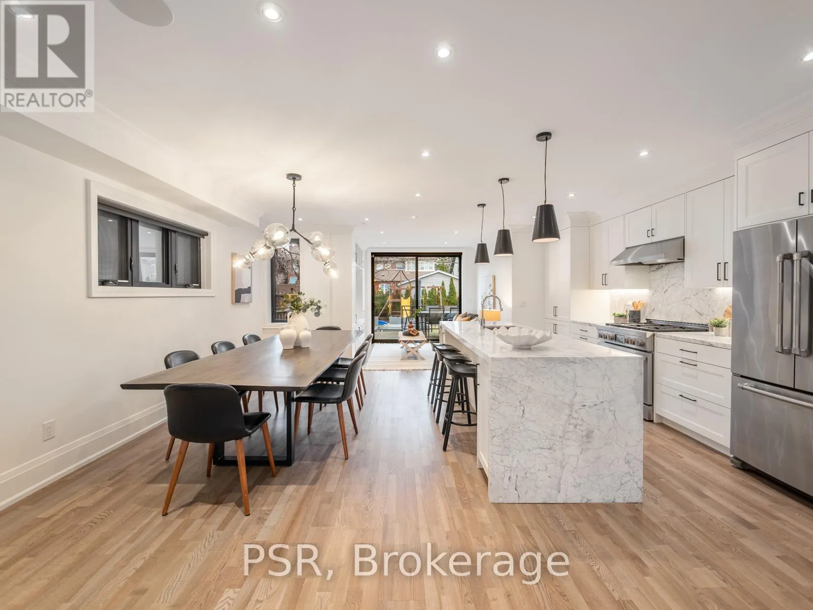 St Clair Ave W & Arlington Ave Welcome to 163 Arlington Ave, a beautifully renovated family home in the heart of Humewood. This stylish residence seamlessly blends modern finishes with thoughtfully designed living spaces across multiple levels, offering exceptional flexibility for today's busy lifestyle. The main floor features a bright, open-concept layout with rich hardwood flooring and elegant custom built-ins in the living room. The dining area flows effortlessly into a contemporary kitchen, complete with a custom marble island with ample storage and luxury appliances. At the rear, the inviting family room provides the perfect gathering space, with a walkout to the patio and landscaped backyard. A convenient 2-piece powder room complete this level. Upstairs, the second floor offers three well-proportioned bedrooms, including a spacious primary retreat with a walk-in closet, custom millwork and a luxurious 5-piece ensuite. The additional bedrooms feature generous storage and share a beautifully appointed 4-piecebathroom.The third floor adds incredible versatility with two additional bedrooms and a 3-piecebathroom, ideal for growing families, guests, or dedicated home office space. The finished basement, with a separate side entrance, offers outstanding flexibility. It includes a large recreation room, a sixth bedroom with custom closets and built-in desk and storage, a 4-piece bathroom, laundry room, and ample storage, including a spacious storage area. Additional highlights include a charming covered front porch, private one-car driveway, storage shed, and a landscaped backyard with patio - perfect for outdoor entertaining. A rare opportunity to own a fully renovated home in the highly sought-after Humewood community, offering space, style, and thoughtful design throughout. (id:27476)