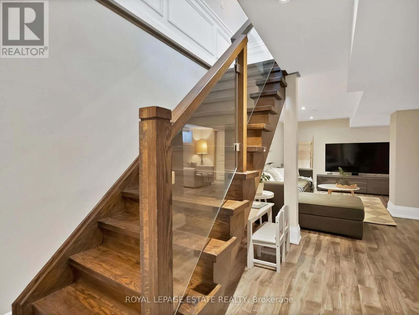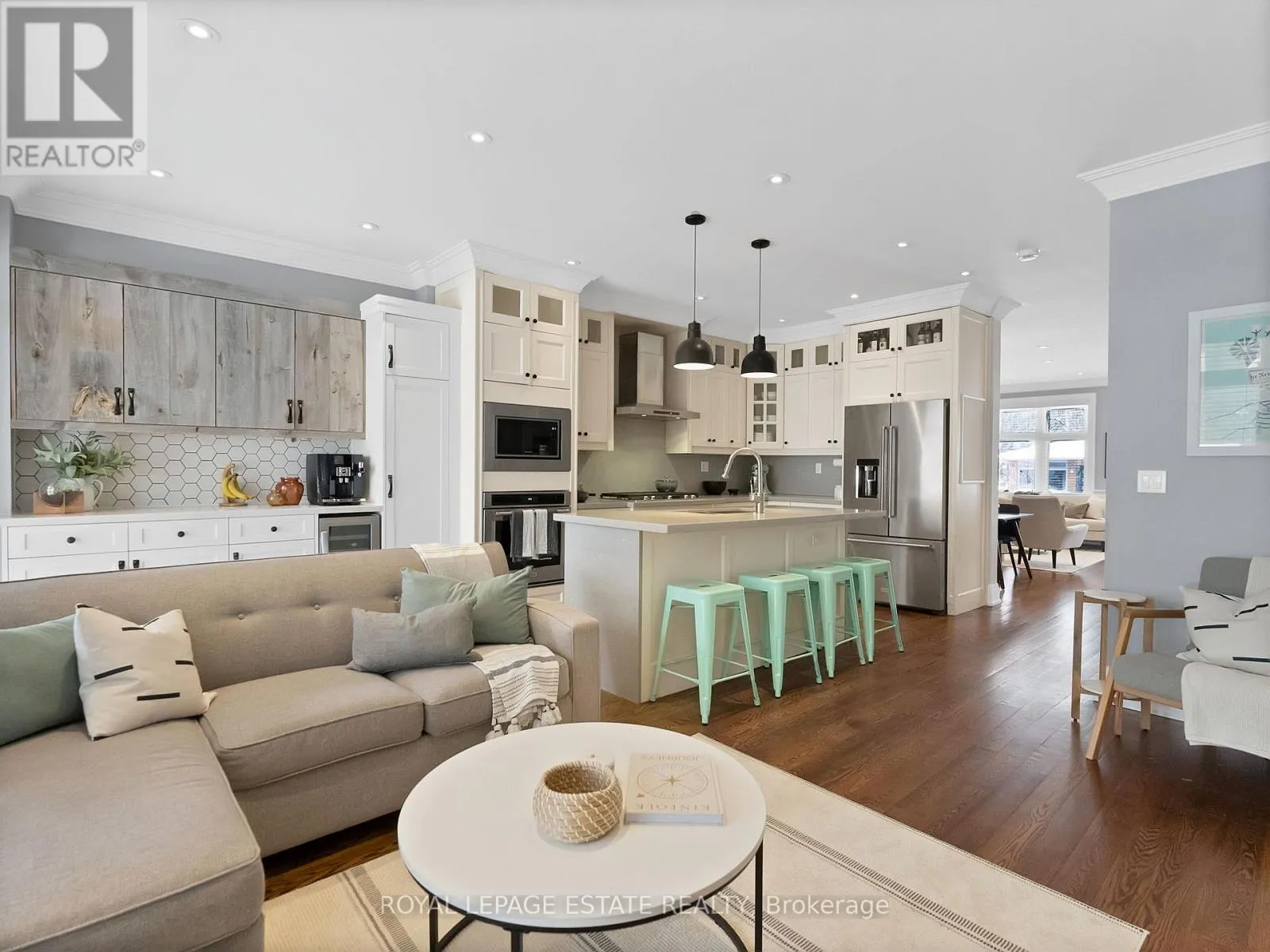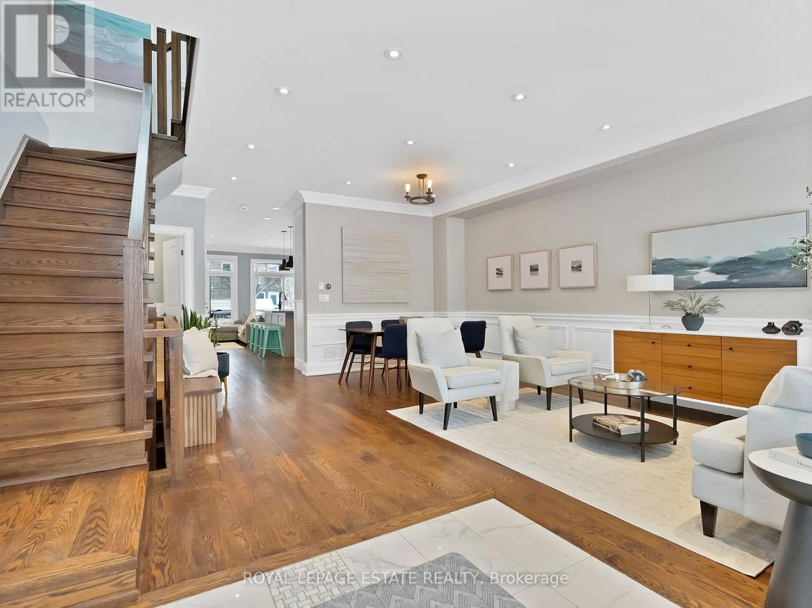 Cross Streets: Warden/Kingston. ** Directions: Kingston/Warden. This impeccably renovated 4-bedroom, 5-bathroom family home is an entertainer's dream, set on a gorgeous tree-lined street and ideally located near top-rated schools, parks, cafes, gyms, and transit, and finished top to bottom with high-end craftsmanship. Featuring two floors of custom-finished hardwood, high ceilings, wainscoting, and plaster crown moulding, the home offers a chef's kitchen with Caesarstone countertops and backsplash, newer fridge, dishwasher, and microwave, and a walk-out from the family room to a composite deck with lifetime warranty. The thoughtful layout includes second-floor laundry, two skylights, one fireplace with a second roughed-in in the basement, and custom built-ins in the primary bedroom and ensuite, guest bedroom, and living area. Recent upgrades include a renovated primary bathroom (2023), renovated main-floor powder room, new washer and dryer (2024), new AC unit (2024), making this move-in-ready home the perfect blend of luxury, comfort, and family living. (id:27476)