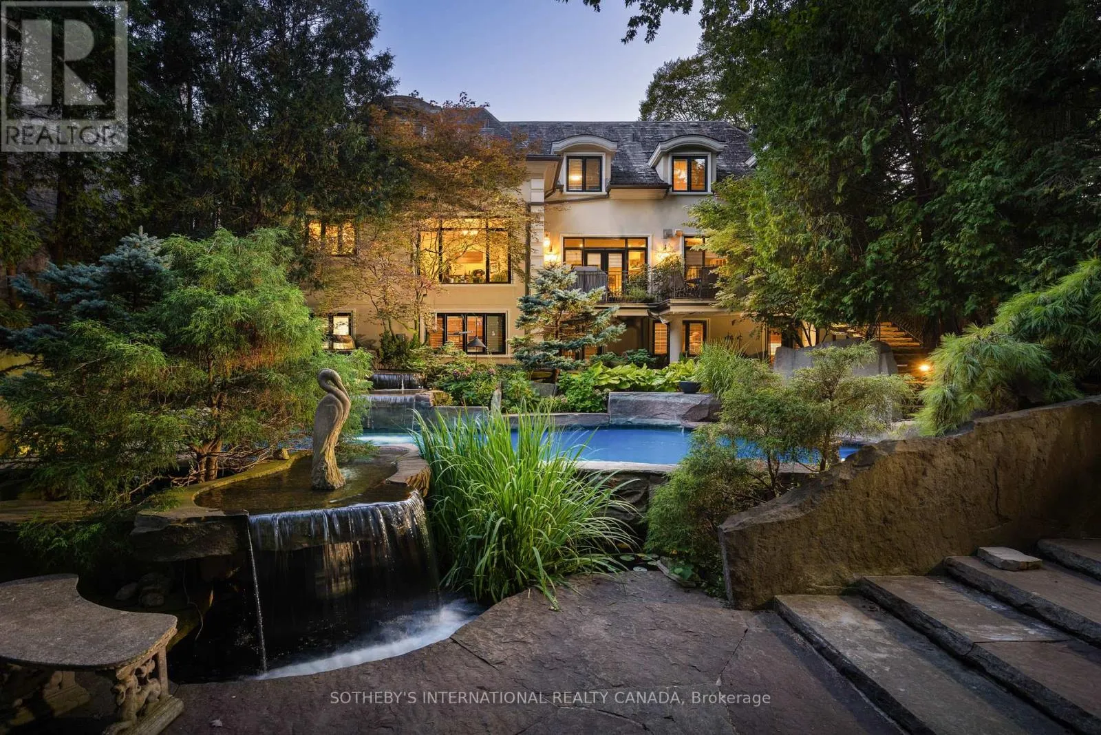 Edenbridge Drive and Royal York Road There is no other property quite like this. Centrally located yet offering a rare sense of privacy, this is an exceptional opportunity to own half an acre on one of the most prestigious streets in Edenbridge-Humber Valley. A setting that feels removed from the city, yet just minutes to everything. The backyard is a true oasis. Thoughtfully designed for both entertaining and everyday enjoyment, it features an inground saltwater pool, cabana, tranquil koi pond, and cascading waterfalls crafted from Credit Valley limestone. Beyond the pool, a stretch of lush green space provides plenty of room for kids to play. Muskoka in the city. Inside, the home offers just over 7,000 square feet of finished living space, thoughtfully designed with both scale and sophistication. The custom chef's gourmet kitchen is the heart of the home, complete with Wolf, Sub-Zero, and Miele appliances, along with bespoke cabinetry by Cameo Kitchens. The walk-out lower level seamlessly extends your living space outdoors, creating an ideal setting for hosting, relaxing, and enjoying the property year-round. An indoor sauna adds a quiet, spa-like element, with a jacuzzi just steps away. This is a legacy property designed to be enjoyed for years to come. (id:27476)