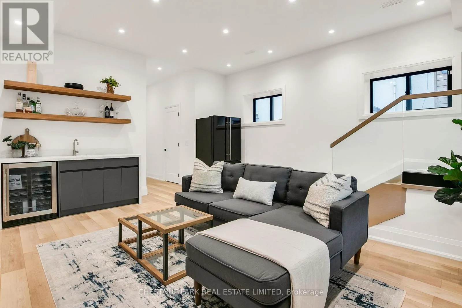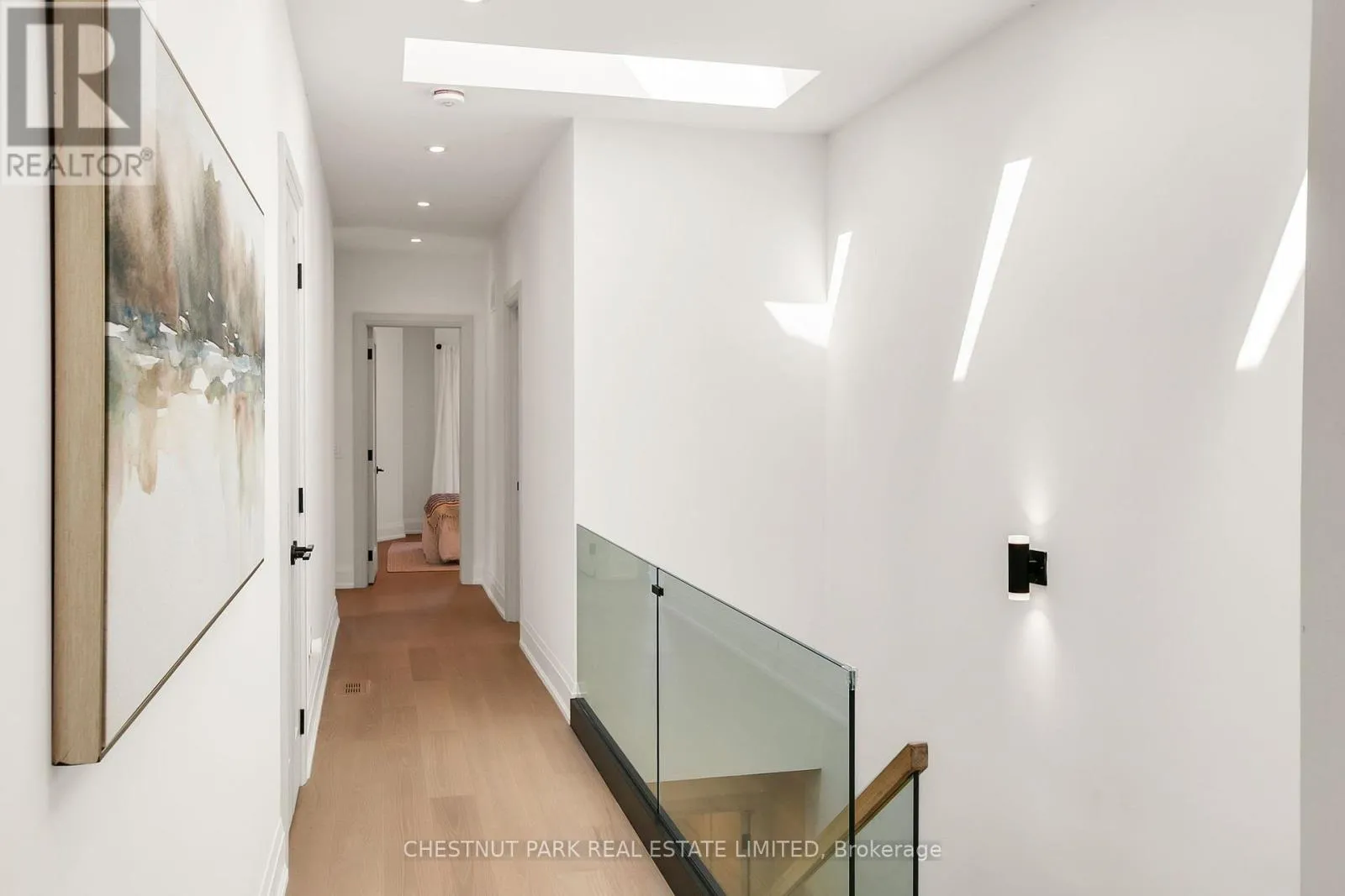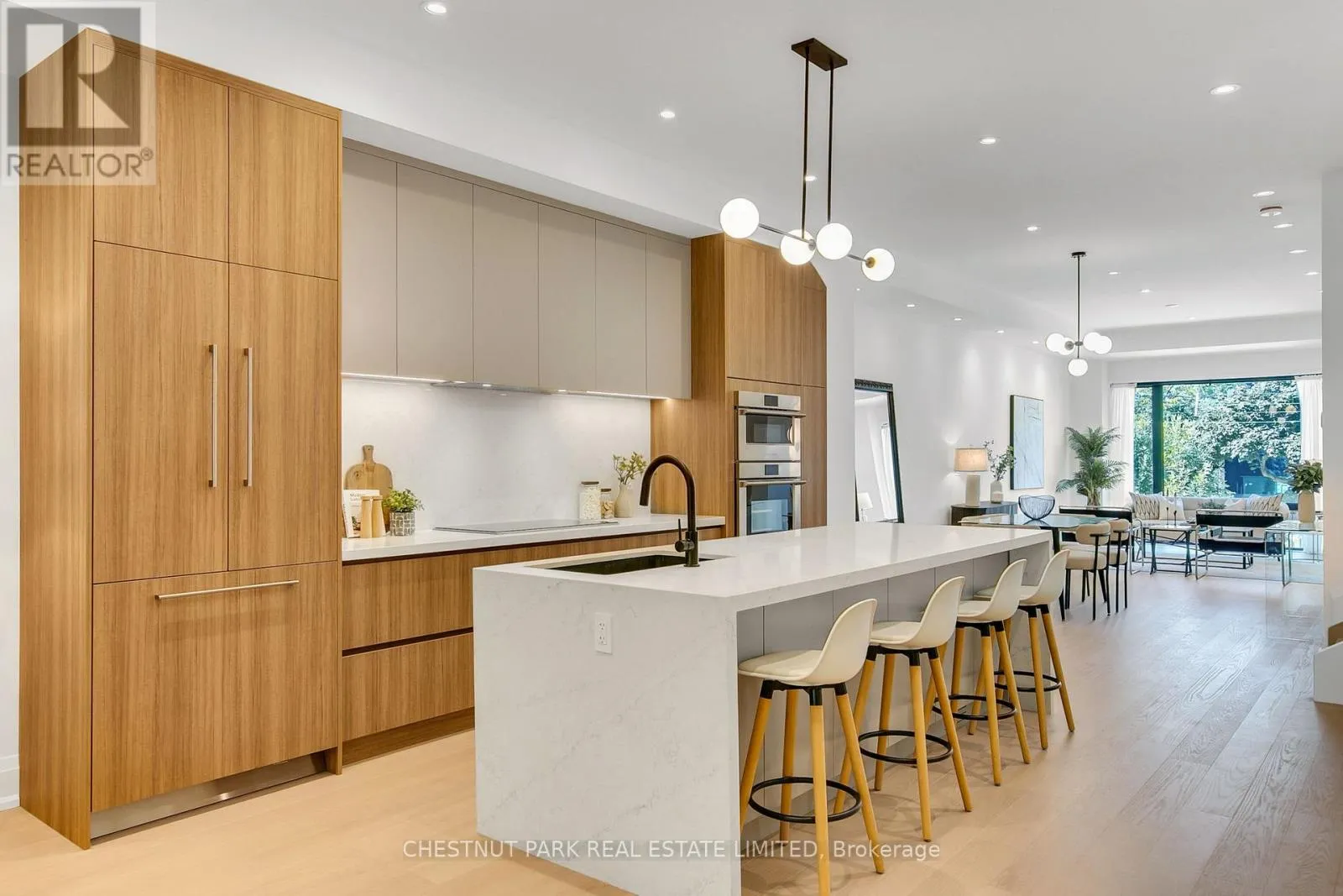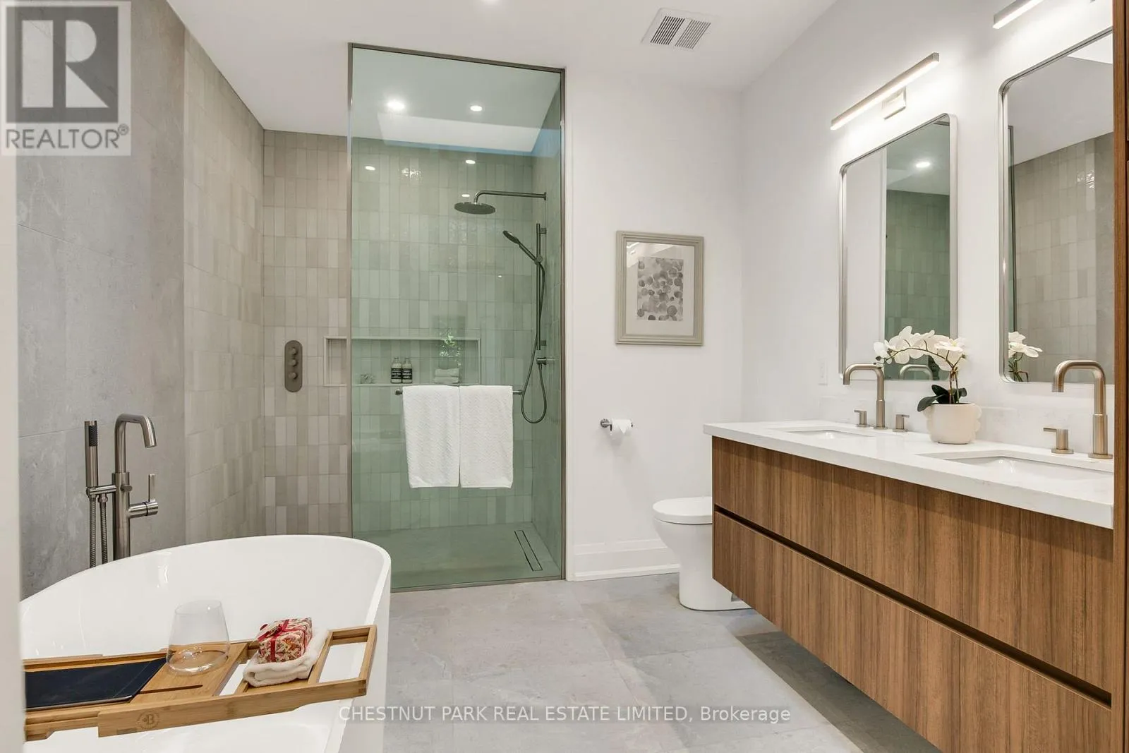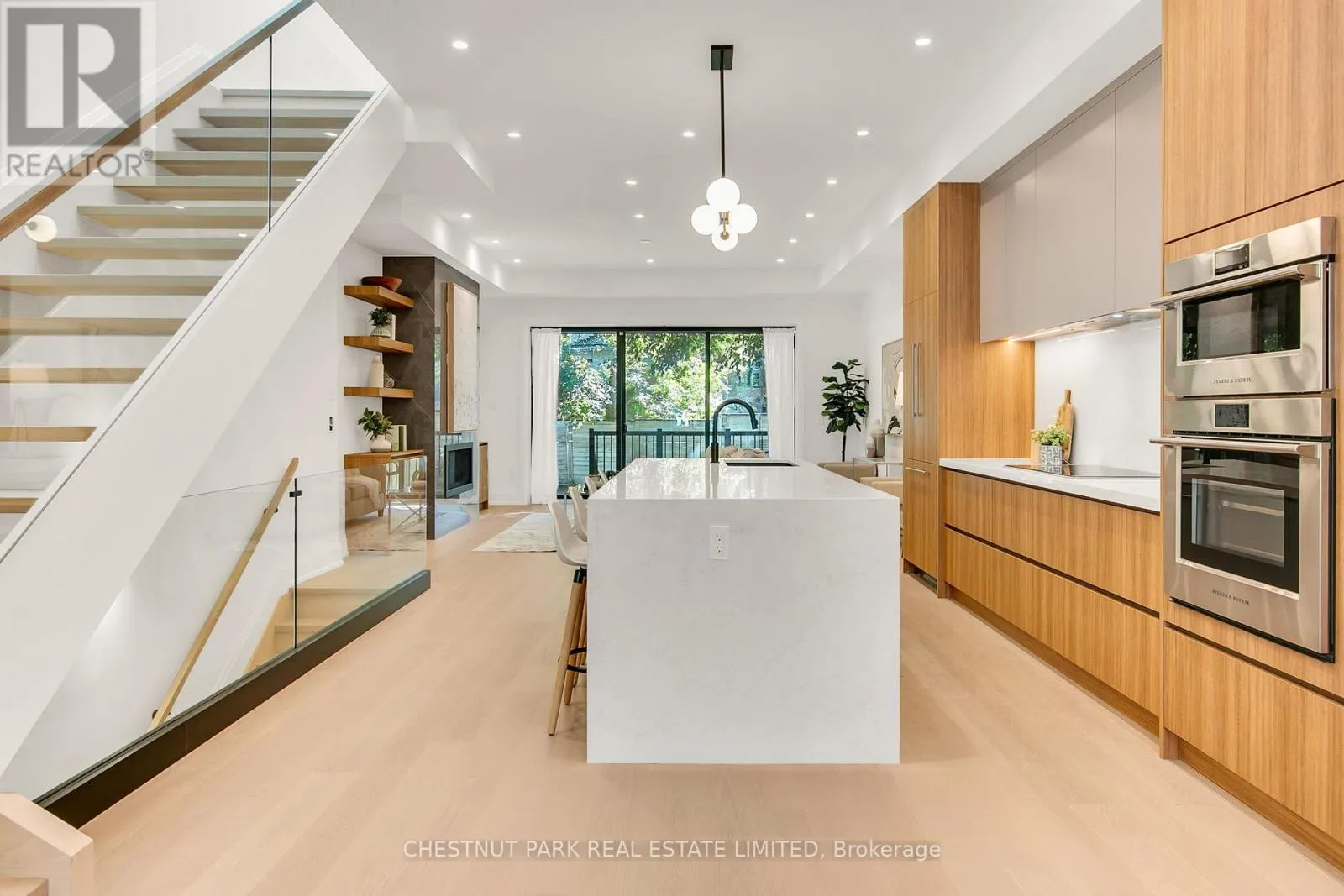Cross Streets: Chaplin Cres & Eglinton Ave W. ** Directions: North of Eglinton on Cul de sac. Tucked away on a quiet, tree-lined cul-de-sac in coveted Upper Forest Hill, this custom-built home offers over 3,500 sq. ft. of meticulously crafted living space. Designed with both sophistication & function in mind, every detail has been carefully considered to create a residence that is as stylish as it is welcoming. Step inside & feel the sense of light & openness that defines the main floor. Soaring 10 ceilings & expansive windows flood the living & dining spaces with natural light & sleek finishes set a tone of understated luxury. At the heart of the home, the kitchen impresses with a striking waterfall centre island, premium integrated appliances & storage, the perfect balance of beauty & utility. The family room, anchored by a modern gas fireplace & stone facade, opens seamlessly onto the deck & backyard. The architectural glass & wood staircase rises gracefully to the 2nd level, where 3 skylights brighten every step. The primary bedroom is a sanctuary, featuring a generous walk-in closet & a 5-piece spa-like ensuite with a deep soaker tub, double vanity & heated floors. 3 additional bedrooms are well-proportioned, sharing a contemporary 4-piece hall bath, while a convenient second-floor laundry adds ease to everyday living. The lower level extends the home's living space with incredible versatility & feels like a main floor with a walkout to a covered patio & nearly floor to ceiling windows. A spacious rec room, complete with a wet bar, provides the ideal backdrop for casual entertaining. A 5th bedroom & full 3-piece bathroom are perfectly suited for guests, while the mudroom with rough-in for a 2nd laundry & direct garage access & heated floors enhances convenience. This home is more than just a beautiful place to live - it's a lifestyle. A true blend of modern design, thoughtful function & Perfectly located near top-rated schools, the shops & restaurants along Eglinton & convenient TTC access. (id:27476)