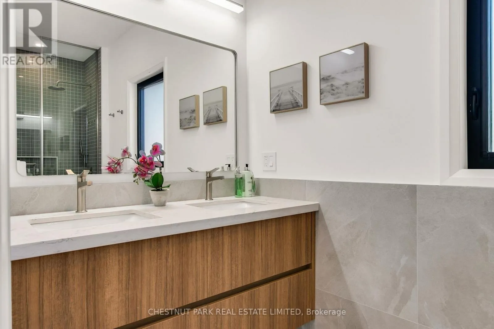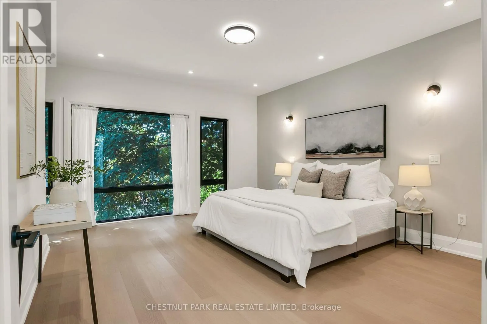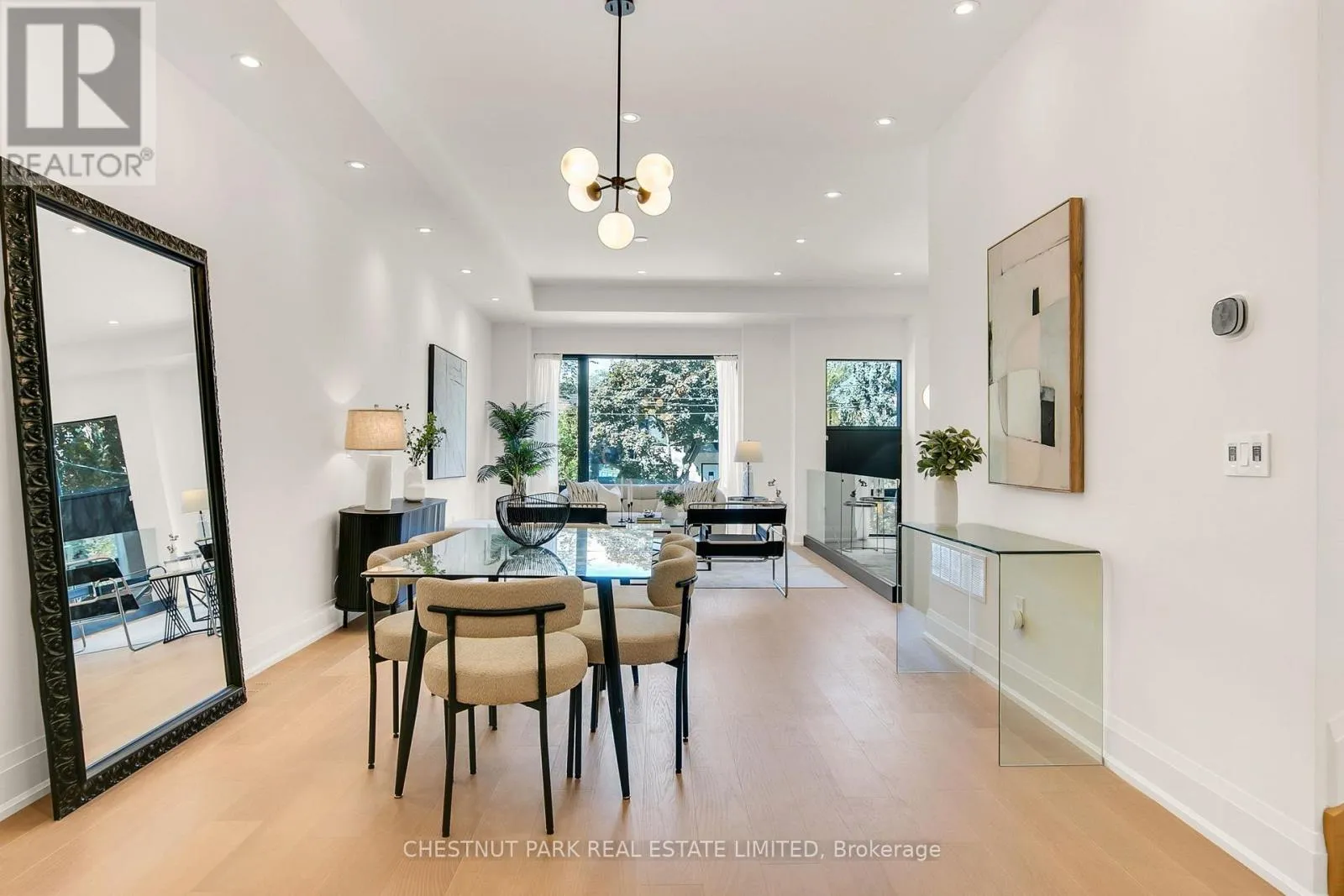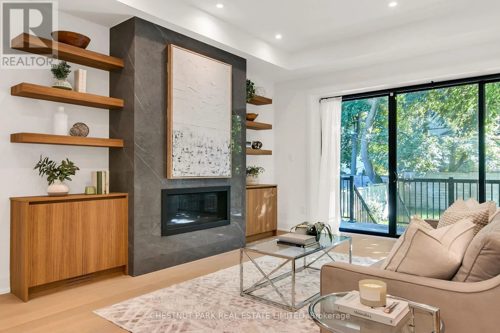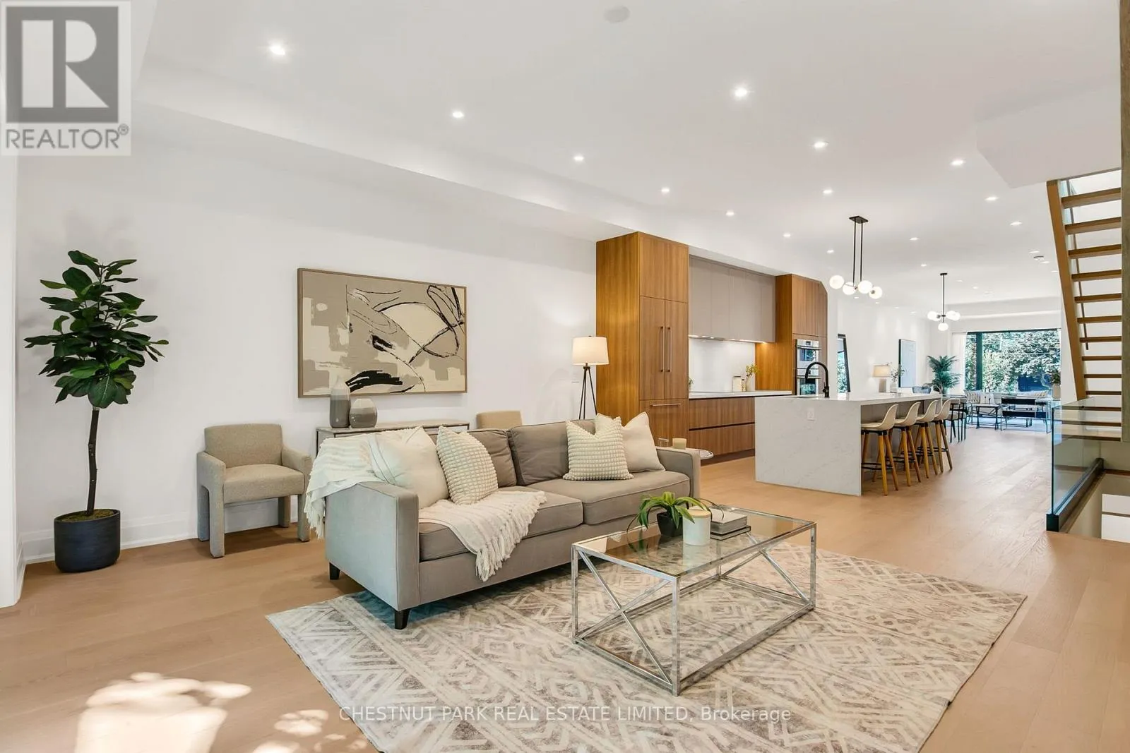 Cross Streets: Chaplin Cres & Eglinton Ave W. ** Directions: North of Eglinton on Cul de sac. Tucked away on a quiet, tree-lined cul-de-sac in coveted Upper Forest Hill, this custom-built home offers over 3,500 sq. ft. of meticulously crafted living space. Designed with both sophistication & function in mind, every detail has been carefully considered to create a residence that is as stylish as it is welcoming. Step inside & feel the sense of light & openness that defines the main floor. Soaring 10 ceilings & expansive windows flood the living & dining spaces with natural light & sleek finishes set a tone of understated luxury. At the heart of the home, the kitchen impresses with a striking waterfall centre island, premium integrated appliances & storage, the perfect balance of beauty & utility. The family room, anchored by a modern gas fireplace & stone facade, opens seamlessly onto the deck & backyard. The architectural glass & wood staircase rises gracefully to the 2nd level, where 3 skylights brighten every step. The primary bedroom is a sanctuary, featuring a generous walk-in closet & a 5-piece spa-like ensuite with a deep soaker tub, double vanity & heated floors. 3 additional bedrooms are well-proportioned, sharing a contemporary 4-piece hall bath, while a convenient second-floor laundry adds ease to everyday living. The lower level extends the home's living space with incredible versatility & feels like a main floor with a walkout to a covered patio & nearly floor to ceiling windows. A spacious rec room, complete with a wet bar, provides the ideal backdrop for casual entertaining. A 5th bedroom & full 3-piece bathroom are perfectly suited for guests, while the mudroom with rough-in for a 2nd laundry & direct garage access & heated floors enhances convenience. This home is more than just a beautiful place to live - it's a lifestyle. A true blend of modern design, thoughtful function & Perfectly located near top-rated schools, the shops & restaurants along Eglinton & convenient TTC access. (id:27476)