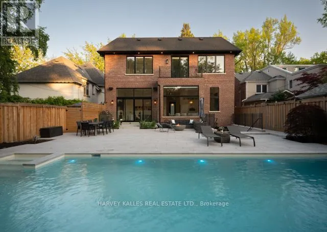 Cross Streets: Avenue Rd & Lawrence Ave. W. ** Directions: Between Mona Dr. & Proudfoot Ave. Welcome to this exceptional custom-built residence (2020) on a premium 50' lot in the heart of Lytton Park, offering approximately 6,600+ Sq.Ft. of thoughtfully designed living space that blends timeless traditional architecture with refined transitional interiors for modern family living. The main level showcases 12'5" ceilings, elegant principal rooms, and a seamless open-concept layout anchored by a chef-inspired kitchen with Sub-Zero, Wolf and Miele appliances, oversized centre island, and custom cabinetry, flowing into a spacious family room with walkout to a professionally landscaped backyard-ideal for both everyday living and entertaining. A rare and highly functional 5-bedroom layout includes a mid-level bedroom or private office with its own 4-piece ensuite, offering flexibility for guests, in-laws, or work-from-home needs. The upper level features four generously sized bedrooms with ensuite access, including a luxurious primary retreat with fireplace, expansive dressing room, and spa-inspired 6-piece ensuite. The fully finished lower level extends the living space with a large recreation room, wet bar, home theatre, exercise room, climate-controlled wine cellar, additional bedroom, and walkout to the yard. This home is appointed with 13-zone radiant in-floor heating throughout the home, multi-zone HVAC, Lutron home automation, Sonos sound system, and quality finishes throughout. Exterior highlights include professional landscaping, a Gib-San concrete pool with Marbelite finish, heated garage, and a snow-melt system for the driveway, front porch and steps. Located within top-ranked public schools including Allenby, Glenview and Lawrence Park CI, and close to premier private schools such as Havergal College, Upper Canada College and Bishop Strachan School, this is a rare turnkey offering in one of Toronto's most sought-after neighbourhoods. (id:27476)