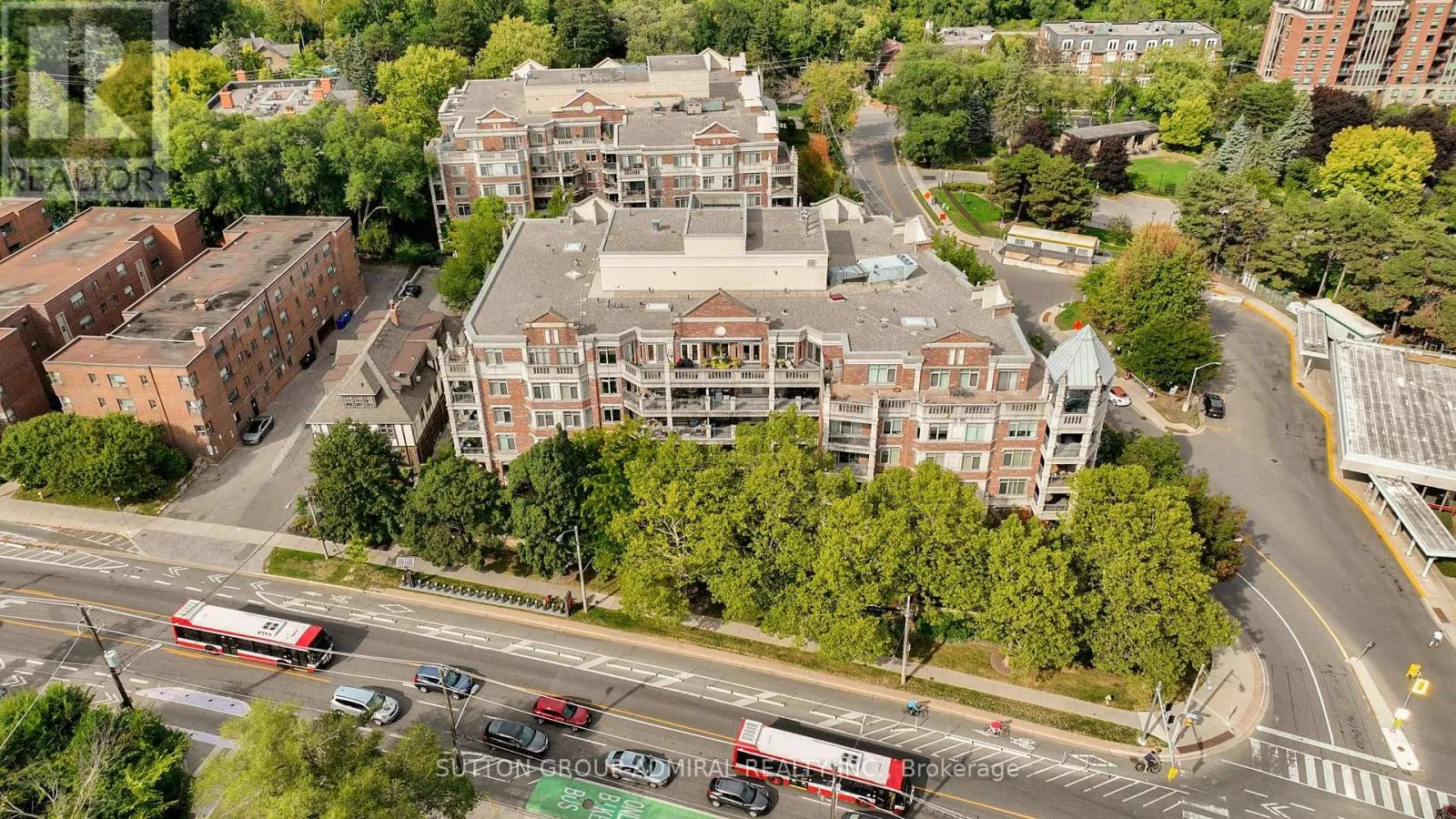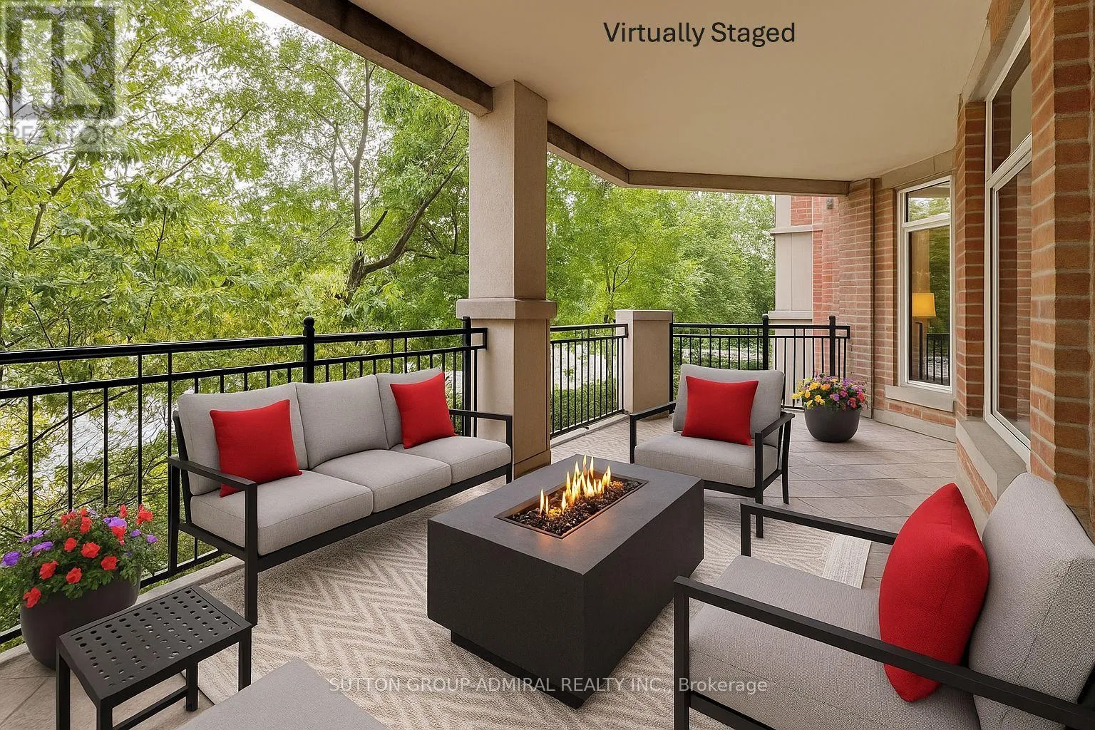 Cross Streets: Bloor St.W. and Old Mill Trail. ** Directions: Bloor St. W./The Kingsway/Old Mill Trail. Welcome to 10 Old Mill Trail - where boutique luxury meets nature, charm, and just the right amount of swagger. Tucked into one of the city's most coveted pockets, this low-rise gem is steps to the Old Mill Inn & Spa, Humber River trails, subway access, and the storybook streets of The Kingsway and Bloor West Village. Location goals? Nailed it! Inside, treetop views and natural light steal the show. Soaring ceilings, rich hardwood floors, crown mouldings, and a sleek electric fireplace create a warm, refined vibe. The open-concept living/dining space is equal parts elegant and functional-perfect for hosting, unwinding, or keeping an eye on the little ones.The dining area flows seamlessly into a well-appointed kitchen featuring a breakfast bar, pot lights, mirrored backsplash, custom desk, and plenty of counter and cupboard space to keep any home chef happy (and organized).The king-sized primary suite is your private escape, complete with a renovated ensuite boasting a jet jacuzzi tub and glass shower. The second bedroom is bright and inviting, paired with a beautifully updated main bath. Plush broadloom in the bedrooms? Your feet will thank you daily. "City outside. Sanctuary inside. Hear the energy of Bloor when you want it... shut it out when you don't - morning coffee with a pulse, evening wine with atmosphere on your massive terrace. Building amenities include concierge, exercise room, party/meeting space, and visitor parking - and yes, your fur-babies are welcome. Recently updated hallways and lobby add a fresh, upscale feel, elevating the everyday experience with a subtle touch of sophistication. Opportunities in Old Mill don't come up often. This isn't just a condo-it's a lifestyle upgrade. And with two parking spaces, you've got options... including that second car you've been eyeing. Buy Today and Brag tomorrow. (id:27476)