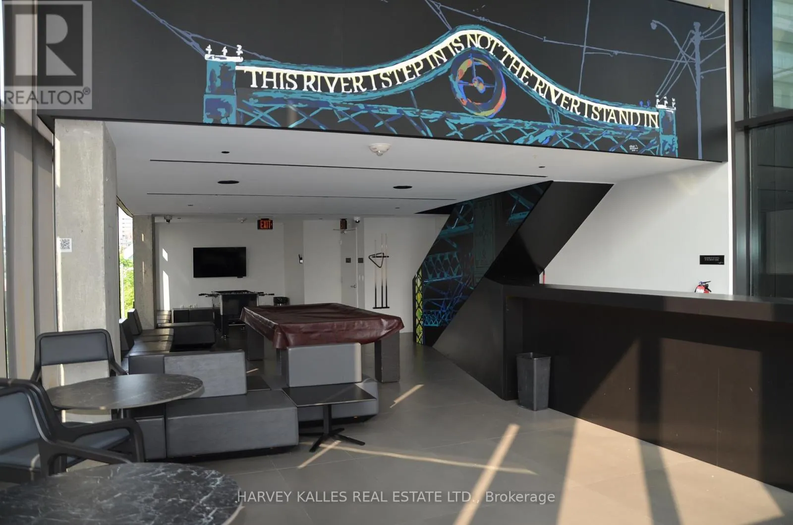 King St E & Lower River St. Jr. 1 bedroom + study unit with 9' concrete exposed ceiling, floor to ceiling windows/glass doors. Engineered hardwood floor, modern designer kitchen features s/s appliances and quartz counter in award winning and fast growing River City Community. 23 acres of public parks incl 19 acres Don River Park and trails. Walk to Distillery District, Corktown, St. Lawrence Market and many amenities. Easy access to Hwy, minutes to TTC rides to Downtown Core. (id:27476)