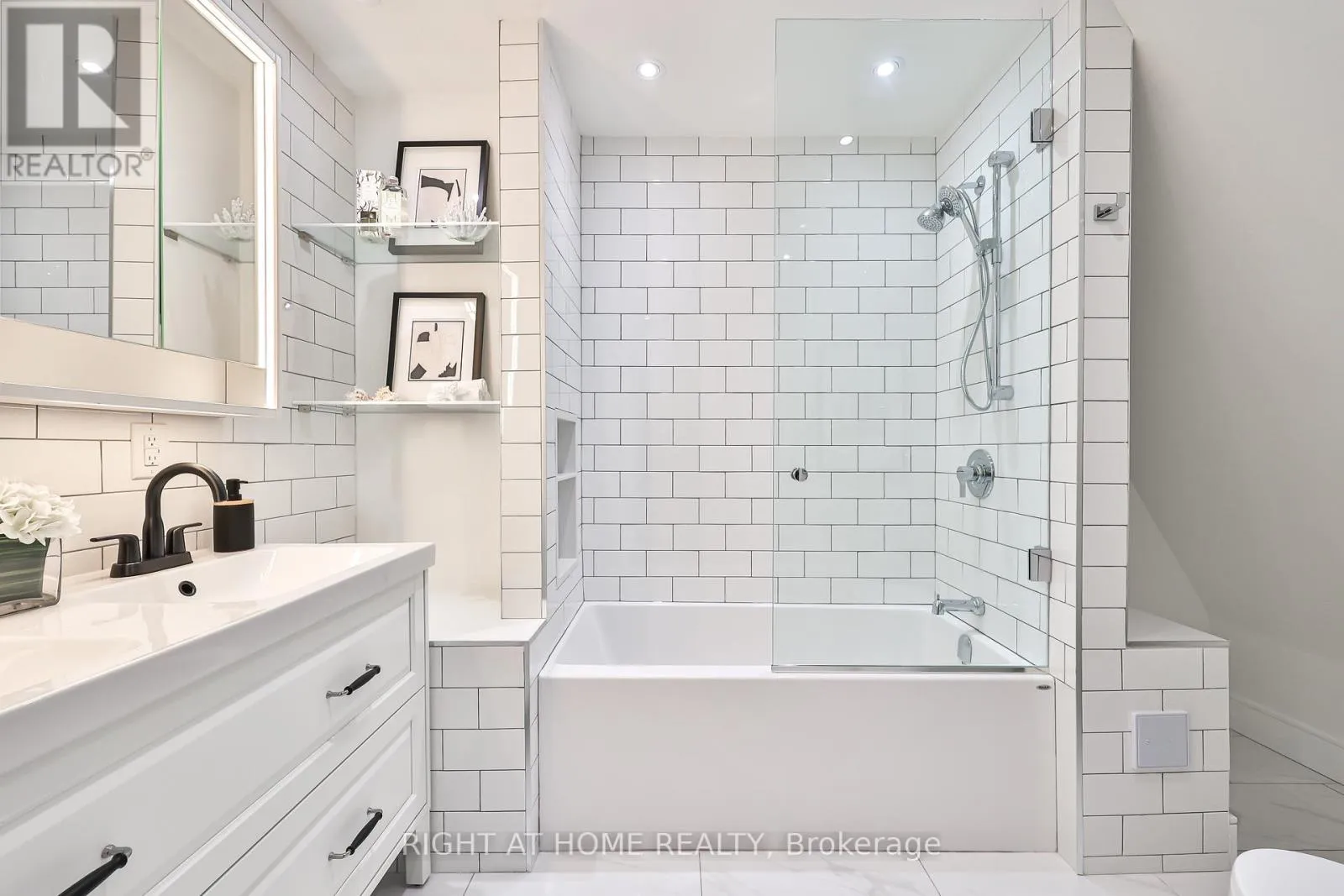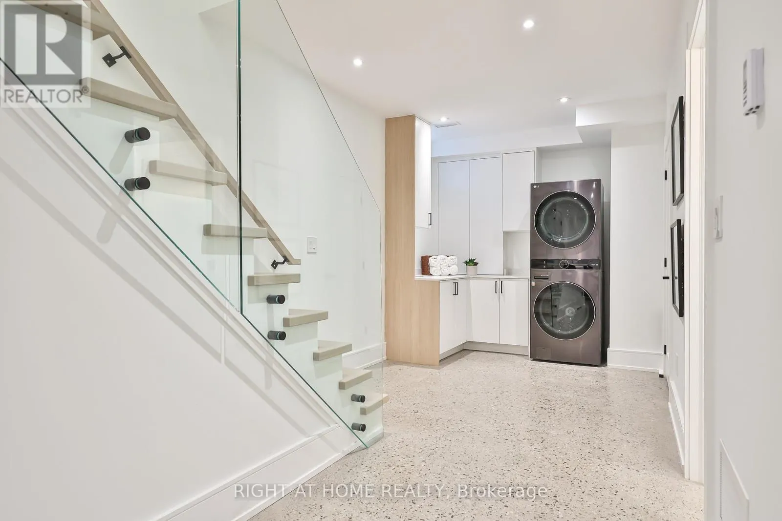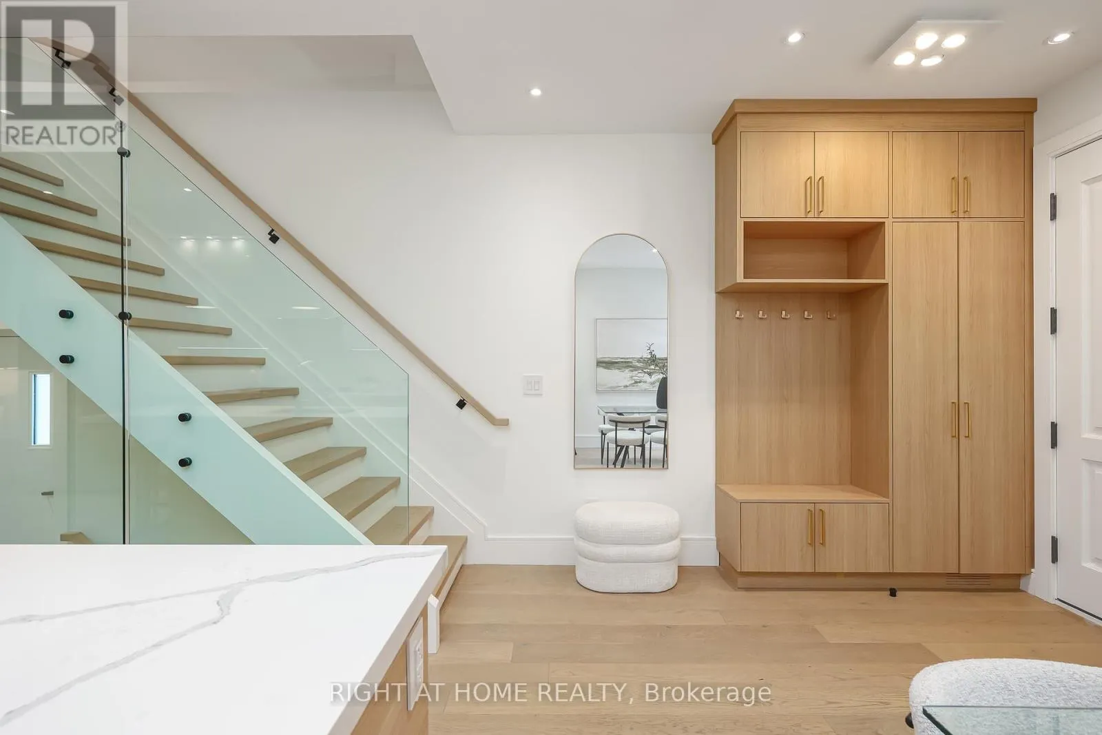 Cross Streets: Vaughan And Winnett. ** Directions: Vaughan Rd and Winnett Ave. Some homes simply stand out, and 193 Winnett Avenue is one that effortlessly raises the bar. From the moment you arrive, the solid mahogany front door sets the tone for a residence where thoughtful design and elevated finishes come together beautifully.Inside, soaring 10 foot high ceilings and wide plank white oak floors create an airy, sophisticated atmosphere, while the open concept main floor flows seamlessly for both daily living and stylish entertaining, offering almost 3,000 sq ft of luxury living across thoughtfully designed levels.At the heart of the home, the Scandinavian inspired kitchen blends clean lines with exceptional function, featuring Caesarstone countertops and backsplash, custom millwork, brushed gold finishes, and premium appliances including a Fisher and Paykel refrigerator and gas range. The living area extends naturally to a covered composite deck with cedar railings and gas rough in, creating an inviting indoor outdoor lifestyle.The second floor offers three spacious bedrooms with custom built ins, heated bathroom floors, and refined finishes throughout. The entire third floor is reserved for a true primary retreat, complete with its own five piece spa inspired ensuite, custom closet systems, and a walkout to a Juliet balcony, delivering privacy and luxury on a level all its own. The lower level adds incredible flexibility with a separate side entrance, 9 foot ceilings, heated polished concrete floors, and a registered legal duplex designation that allows the basement to be used to generate income.Mechanical upgrades such as hydronic snow melt walkways and parking pad mean no more shovelling snow, while dual Lennox HVAC systems, an NTI on demand boiler, smart thermostats, and exterior security cameras reflect the level of care poured into every detail. Perfectly positioned in a family friendly neighbourhood with top rated schools and steps to public transit, this is a home that delivers comfort, quality, and long term value in equal measure. (id:27476)