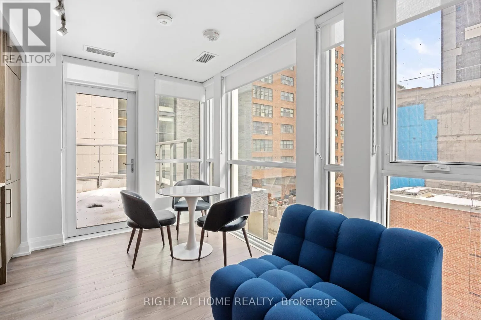 Church / Dundas Bright and efficiently designed furnished bachelor unit at Max Condos. Unit comes with a separate area for bed. Furniture To Include Bed, Mattress, 1 comfy chair, Table + 3 Chairs & 1 Small Dresser-ideal for simple, stylish living. Skip the furniture shopping - everything you need is ready and waiting. Located in a modern building with top amenities including a gym, and 24-hr concierge. Conveniently located close to TMU, Eaton Centre, Dundas Subway Station, grocery stores, cafes, and more. Perfect for students or professionals who want to live in the heart of downtown with everything at your doorstep. A perfect option for students or professionals who want to live in the heart of downtown with convenience at their doorstep. The original rent is $2,127/month, but with 1 month free, the average rent works out to $1,950/month over a 12-month lease. Rent free to be applied to 2nd last month. Photos were taken previously prior to tenant occupancy. (id:27476)