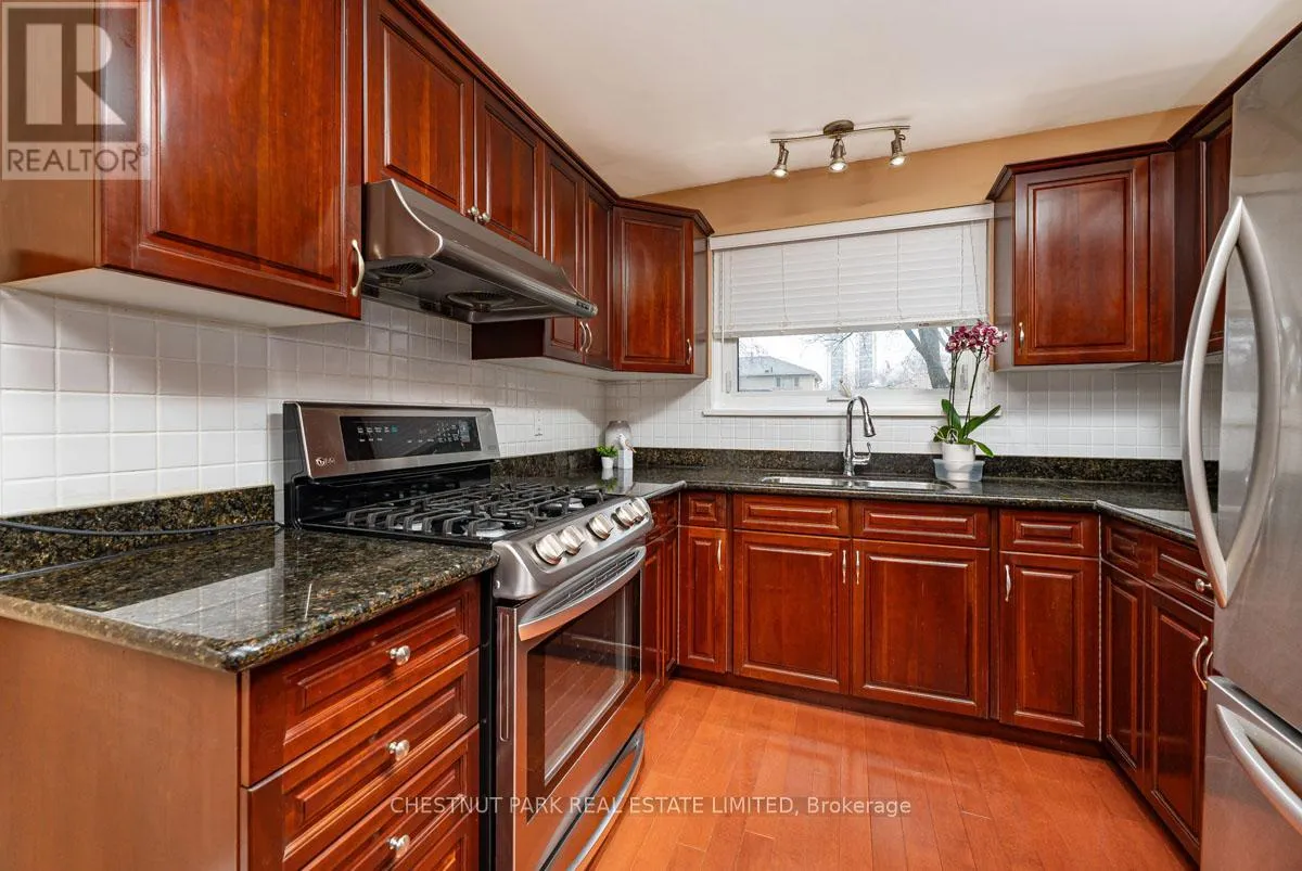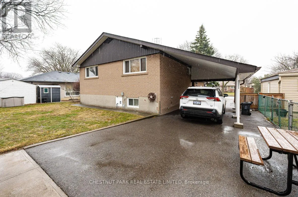 Cross Streets: 401 & Martin Grove Rd. ** Directions: SW of 401 & Martin Grove Rd. Welcome to 16 Vanderbrent Cres, a thoroughly upgraded, well-maintained three-bedroom backsplit, on a 50' x 120' lot, with a spacious lower-level recreation room and a 1.5 car detached garage! Quality finishes: glass-panel front door, solid, no-squeak hardwood floors, cherry cabinets and granite counters, custom blinds, and R48 insulation in the attic. The stately wood tone front door welcomes one into the foyer: slate tile floor, coat closet, and custom corner bench. French doors open to the living/dining room, with large windows & baseboard mouldings. The renovated kitchen boasts an LG gas stove, Ubatuba granite, cherry cabinets, and custom backsplash. Hardwood stairs, with colour-matched railing, lead to upper level. The primary bedroom features custom blinds, a window overlooking the yard, a ceiling fan, and a large closet. The 2nd bedroom has custom blinds, a ceiling fan, a large closet and a window overlooking the yard. The 3rd bedroom has custom blinds and a double-depth closet. Two linen closets. 4-pc washroom w/ pedestal sink, oversized medicine cabinet, and ceramic floor. The lower level has a separate entrance and is comprised of an expansive recreation room and an open laundry/utility area-a bright, cheerful space w/ above-grade windows, two large in-wall mirrors, laminate flooring, and beautiful finishing details: a cupboard with stained class doors and a built-in wood corner shelf. Clean crawlspace storage area accessible w/ attractive wood doors. Parking for five cars: driveway, carport, garage. Garage 22'11" x 16'5"-space for a vehicle and work area or additional storage, w/ 220V power. Storage shed behind garage. Ideally located just 10 minutes to Pearson International Airport, 14 minutes to Kipling Subway and GO Stations, close to 401 and 427. Near Parkfield J. S., Dixon Grove Junior Middle School, and Kipling C.I.; Transfiguration Elementary, All Saints Middle School, and Dante Alighieri Academy Secondary School. (id:27476)