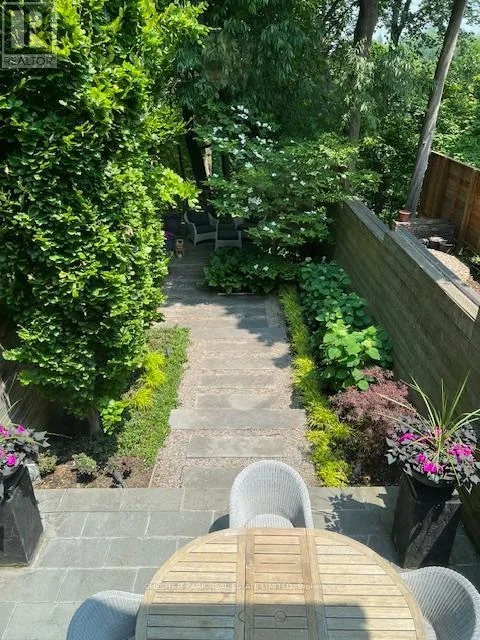 Yonge & St. Clair Pristine executive home on coveted Summerhill Gardens. Reimagined by designer Harvey Wise, this elegant 2-bedroom, 2-bath residence combines solid construction, excellent materials and thoughtful detailing that still feels current today. Exceptionally well maintained and featured in design magazines, it has a level of care and quality that is hard to miss. The view from the entry runs straight through to the Rosedale ravine at the back, giving the house an immediate sense of calm and connection to its setting.The main floor is open and practical, designed in a way that suits both everyday life and entertaining. A generous dining area looks onto the front garden and tree-lined street, while the large Irpinia kitchen sits at the centre of the home with high-end appliances, an oversized waterfall-marble island and ample work space. At the back, a sunken living room with custom millwork and fireplace opens onto a private deep garden overlooking the ravine. As the trees come into leaf, it becomes an especially beautiful place to spend time. A white-granite feature wall runs through the house and gives the interior a clear architectural identity.Upstairs are two well-composed bedrooms. The primary sits at the rear, with elevated ravine views, custom built-ins, a walk-in closet and access to a beautifully finished 5-piece semi-ensuite. The second bedroom faces west over Summerhill Gardens and includes a built-in desk and closet.The fully dug-out lower level adds flexible space for a family room, office or gym, with a front walkout and radiant-heated floors that continue to the outdoor concrete surfaces. At the back, the maintenance-free garden and large deck make the most of the leafy ravine setting. A strong alternative to condo living, this is a low-maintenance home for someone who wants privacy, greenery and thoughtful design, all within easy walking distance of the subway and the best of Summerhill. (id:27476)