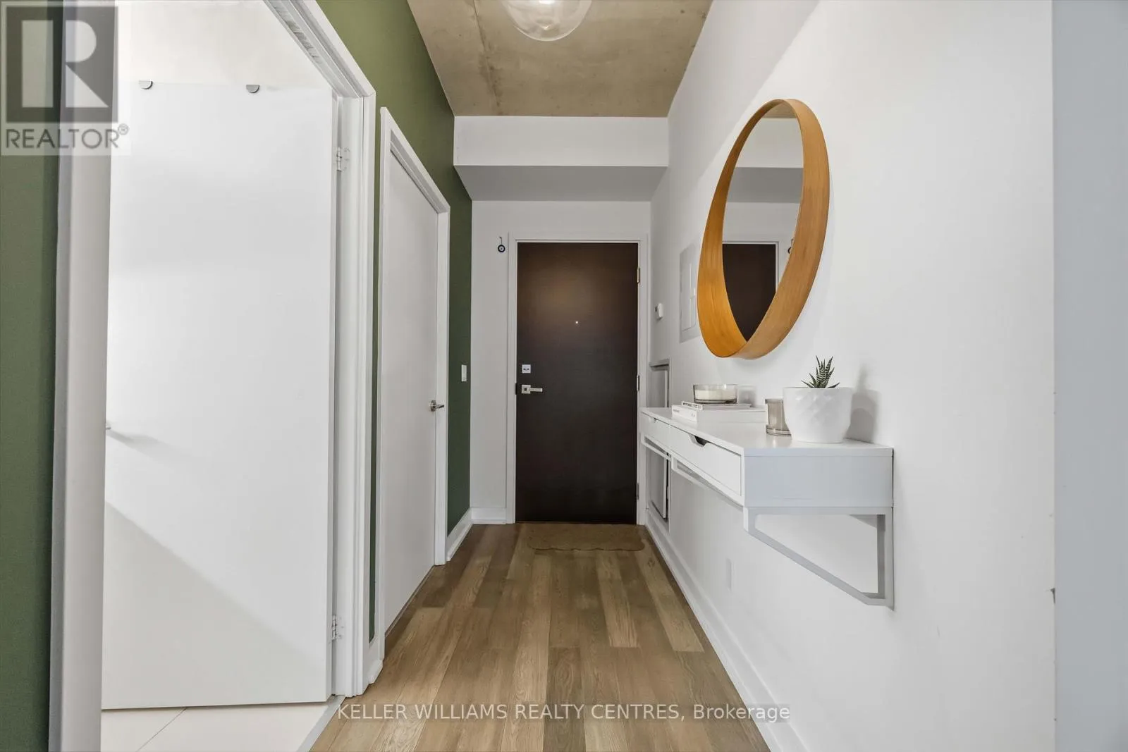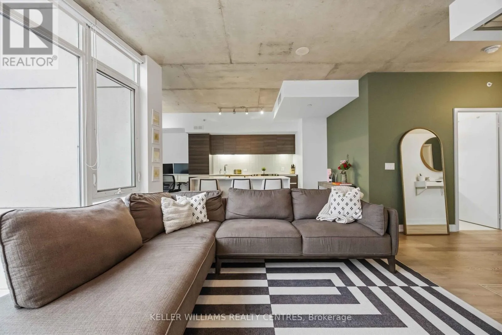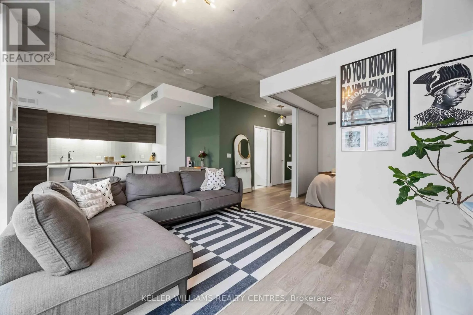 Carlaw Avenue & Dundas Street East Bright. Spacious. Connected. This 1+den suite at 1190 Dundas St E offers just under 700 sq ft of open-concept living with a standout oversized island at its core. The den adds flexibility-perfect for a home office or guest space. Soaked in natural light, the unit features a private balcony with gas BBQ hookup for effortless outdoor entertaining. Upgrades include new flooring (2020), a new fridge (2025), and an updated bathroom vanity (2024). Plus, enjoy a same-floor locker and future Ontario Line access nearby-bringing unbeatable convenience and connectivity. (id:27476)