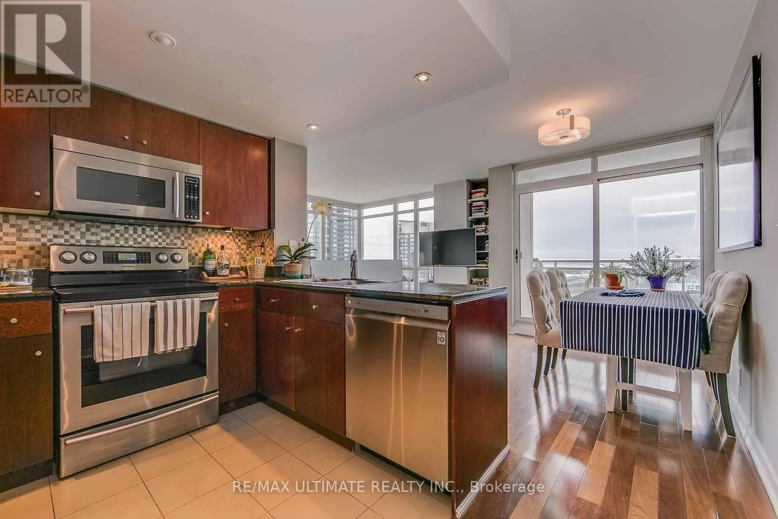 Front/Spadina Experience elevated downtown living in this beautiful south west corner suite. Offering 2 bedrooms + a custom closet built into the den space, this fully furnished and equipped residence is designed for both comfort and sophistication... Just bring your suitcase. Floor-to-ceiling windows flood the space with natural light while showcasing breathtaking city skyline and lake views, complete with unforgettable sunset exposures. The open concept layout features refined finishes throughout, including rich hardwood flooring, sleek granite countertops, and stainless steel appliances. Perfectly positioned in the heart of the city, steps to the Financial District, entertainment, restaurants, transit. Residents enjoy access to luxury building amenities, making this an exceptional opportunity for executive living in one of Toronto's most vibrant neighbourhoods. (id:27476)