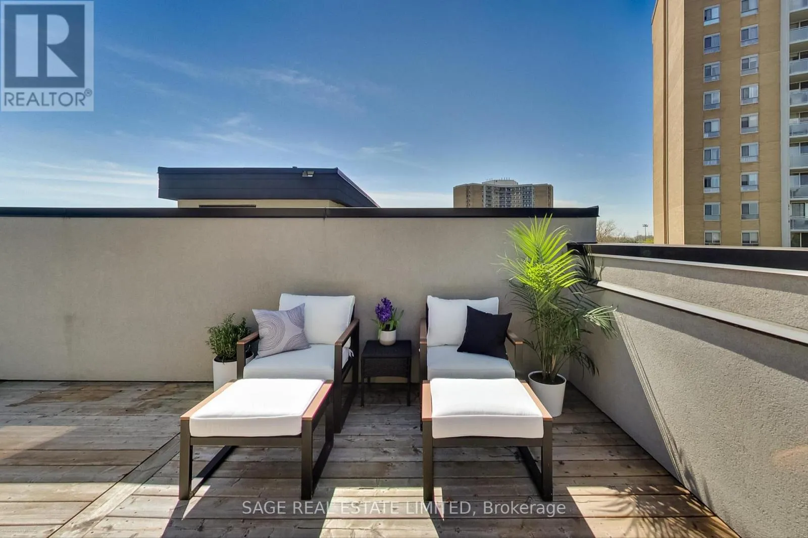Cross Streets: Kipling & Eglinton. ** Directions: https://share.google/l3f1ArcN0e53Gg24g. Sleek, stylish, and sun-filled, this seriously well-finished freehold townhouse in Toronto's coveted Richview neighbourhood delivers both polish and practicality. This home blends clean contemporary design with warm, character-rich details, including premium 7-inch-wide hand-scraped white oak floors, matching oak stairs, and a reclaimed century-old barn beam above the fireplace mantle that adds warmth and character. The main floor features 9-foot ceilings and an elegant living space with sleek built-in cabinetry, textured feature walls, and smart motorized blinds throughout the home. The kitchen is both functional and refined, complete with quartz counters with a waterfall edge, top-of-the-line appliances including a 6-burner gas stove, and a generous walk-in pantry. The primary bedroom offers a private ensuite. The ground-level garage, finished with epoxy resin floors, is currently set up as the ultimate home gym and offers flexibility beyond parking alone. High ceilings and a storage loft add function inside, while an additional surface parking space provides flexibility for a second vehicle or guests. Outdoor living is equally appealing, with a backyard, two balconies, and a rooftop terrace made for summer evenings. A modern HVAC system and wastewater heat recovery system enhance energy efficiency and future-ready appeal. Set in a family-friendly pocket surrounded by parks and walking trails, just steps from Richview and Silver Creek parks and minutes from the airport and major highways, this home pairs upscale finishes with everyday functionality. The turnkey freehold townhouse you've been looking for, no maintenance fees - simply move in and enjoy. (id:27476)