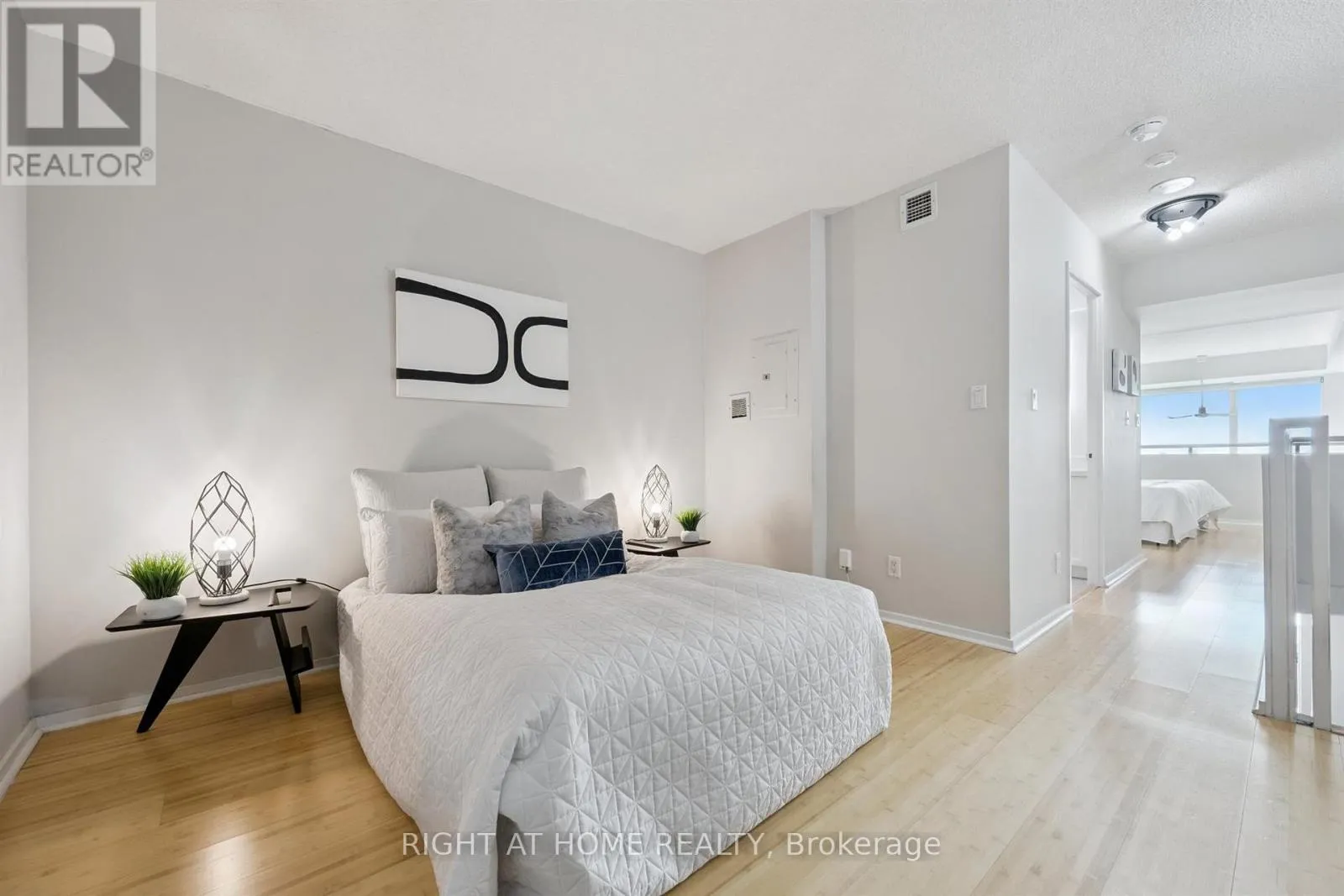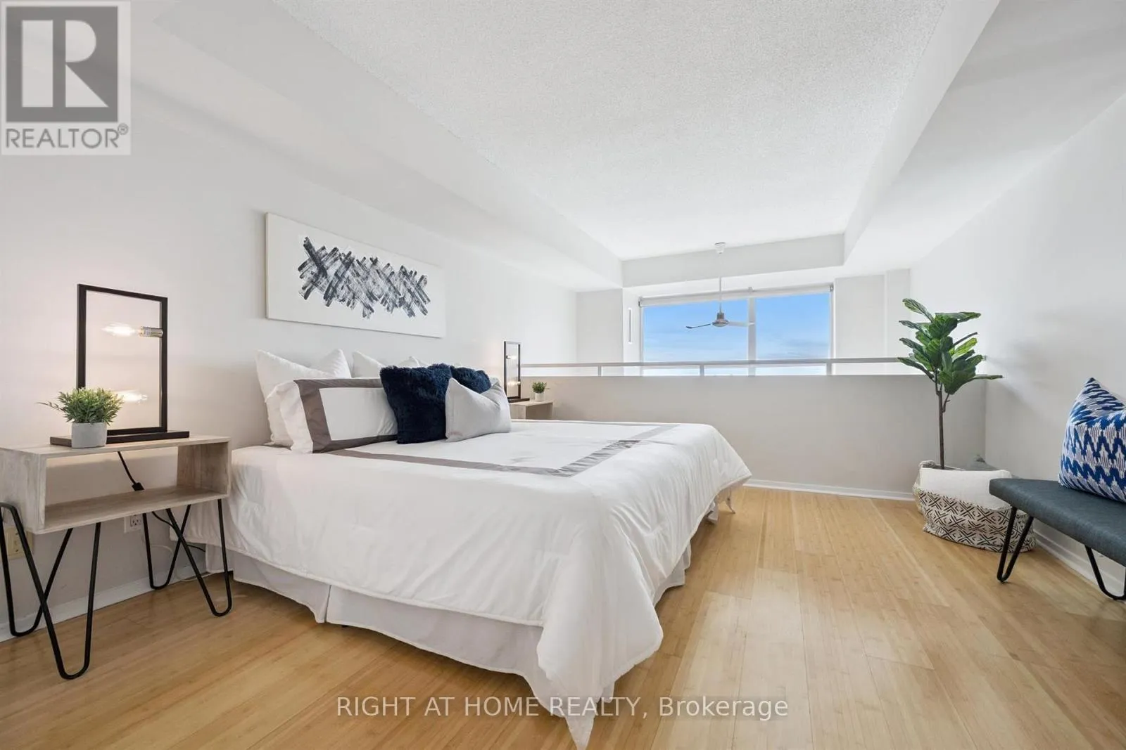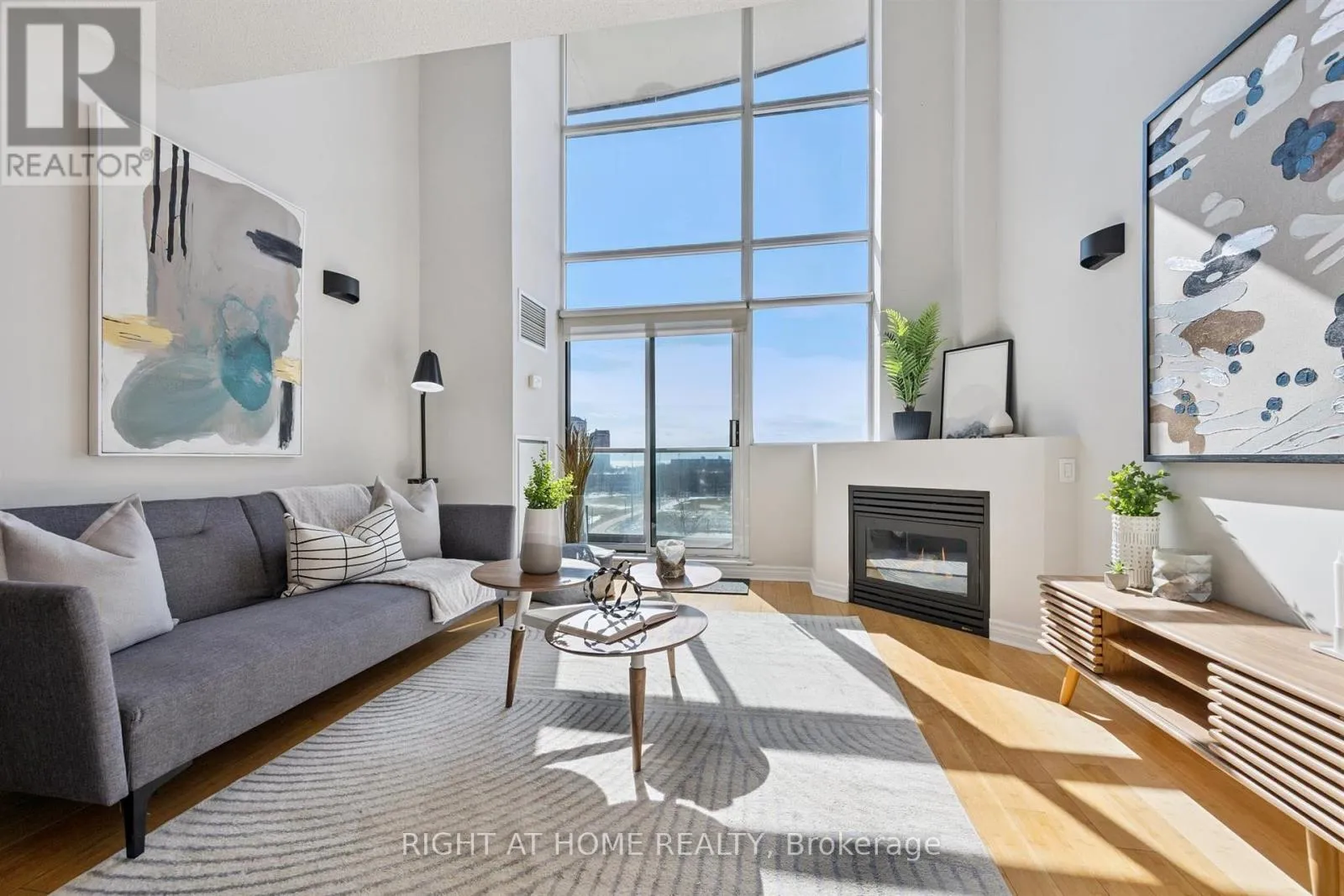 Cross Streets: Lakeshore & Park Lawn. ** Directions: Park Lawn to Legion or Queensway to Grand Ave. You live in a bright, airy 940 sq ft loft, where rare 17-foot floor-to-ceiling windows take centre stage - flooding the space with natural light and framing open views of the park and lake beyond. Located in a quiet boutique building near the waterfront, your home feels both expansive and calm. The open-concept layout connects your kitchen, dining, and living areas - ideal for everyday living and entertaining. In the living area, a gas fireplace anchors the space, framed by the dramatic window wall. Step out to your private balcony - perfect for morning coffee or quiet evenings under the stars. Your kitchen, fully renovated in 2024, blends style and function with quality appliances, smart storage, and a breakfast bar that becomes a natural gathering spot. Upstairs, the loft layout offers two spacious rooms and a renovated full bathroom. The primary bedroom easily fits a king-sized bed, while the second room is nearly as spacious and offers you the flexibility for a home office, guest area, or a growing household. You're part of a well-managed, friendly mid-rise community that offers a quieter alternative to the usual high-rise hustle and long elevator waits - just a more comfortable pace. Within this secure, gated community, you also have access to a private park, fenced dog run, and playground. Amenities include a gym, party room, rooftop garden decks, sauna, and squash court. Just across the street, enjoy 12 acres of green space at Grand Avenue Park, with trails and off-leash areas. You're also a short walk to the lake, where scenic paths and shoreline parks offer a natural escape whenever you need it. Convenient shopping, great dining, parks, entertainment and highly rated schools are all nearby, with quick access to the GO Train, TTC, highways, airport, and downtown. Parking and locker included. Offers anytime. (id:27476)