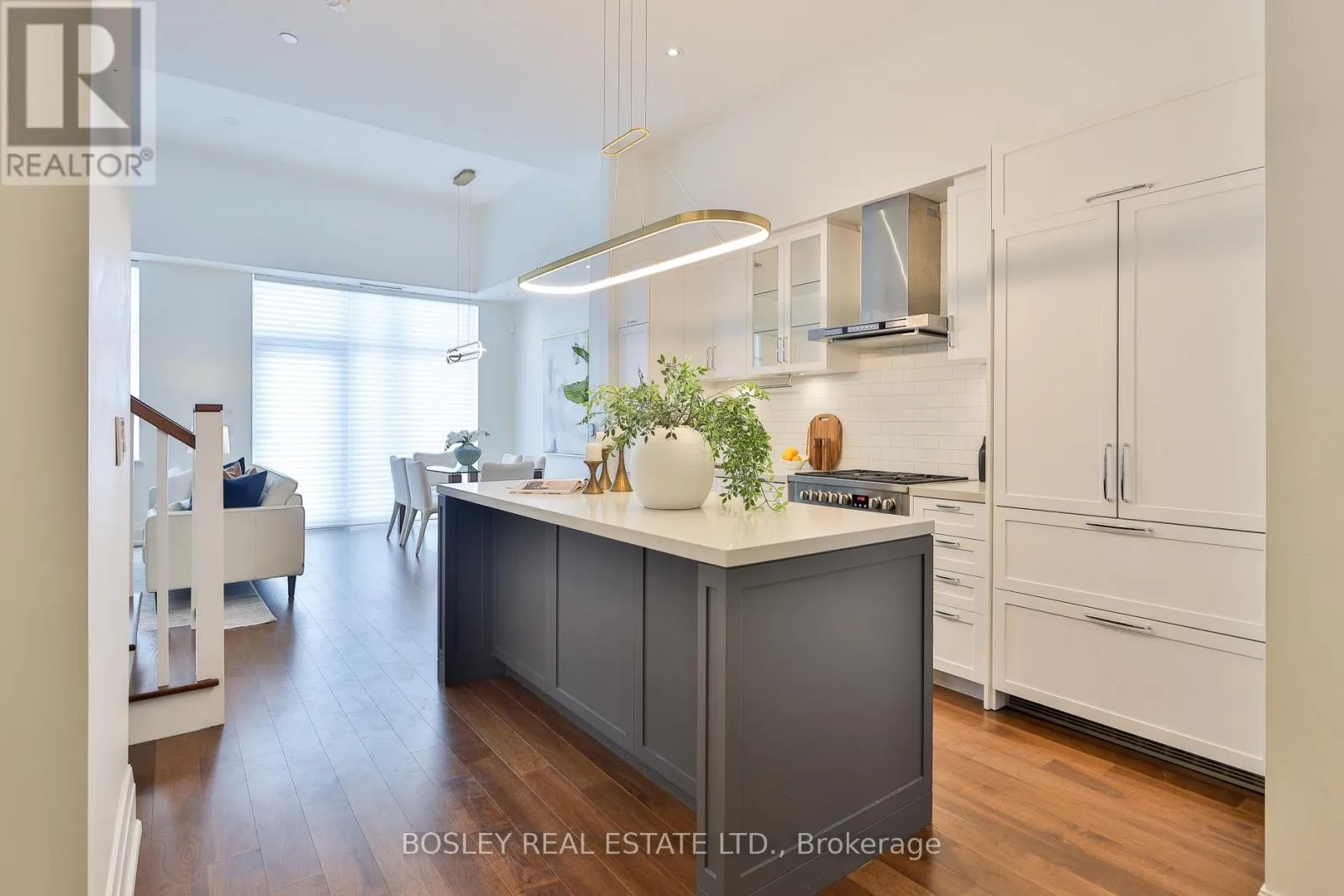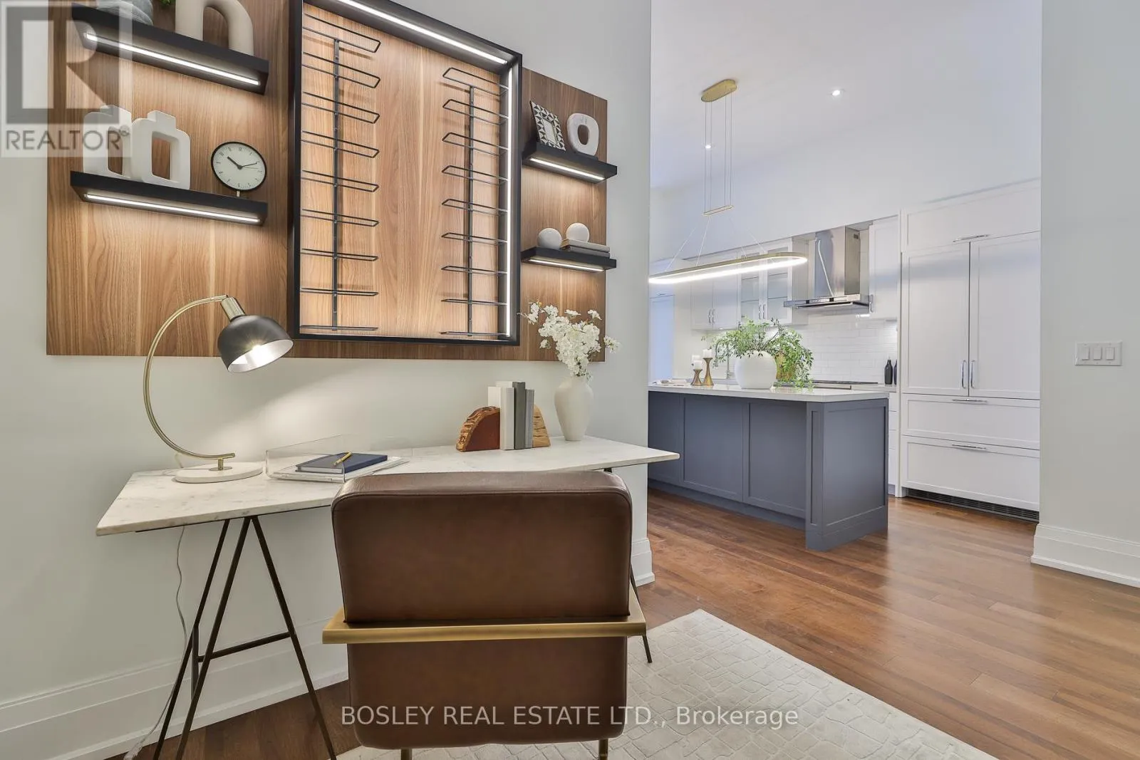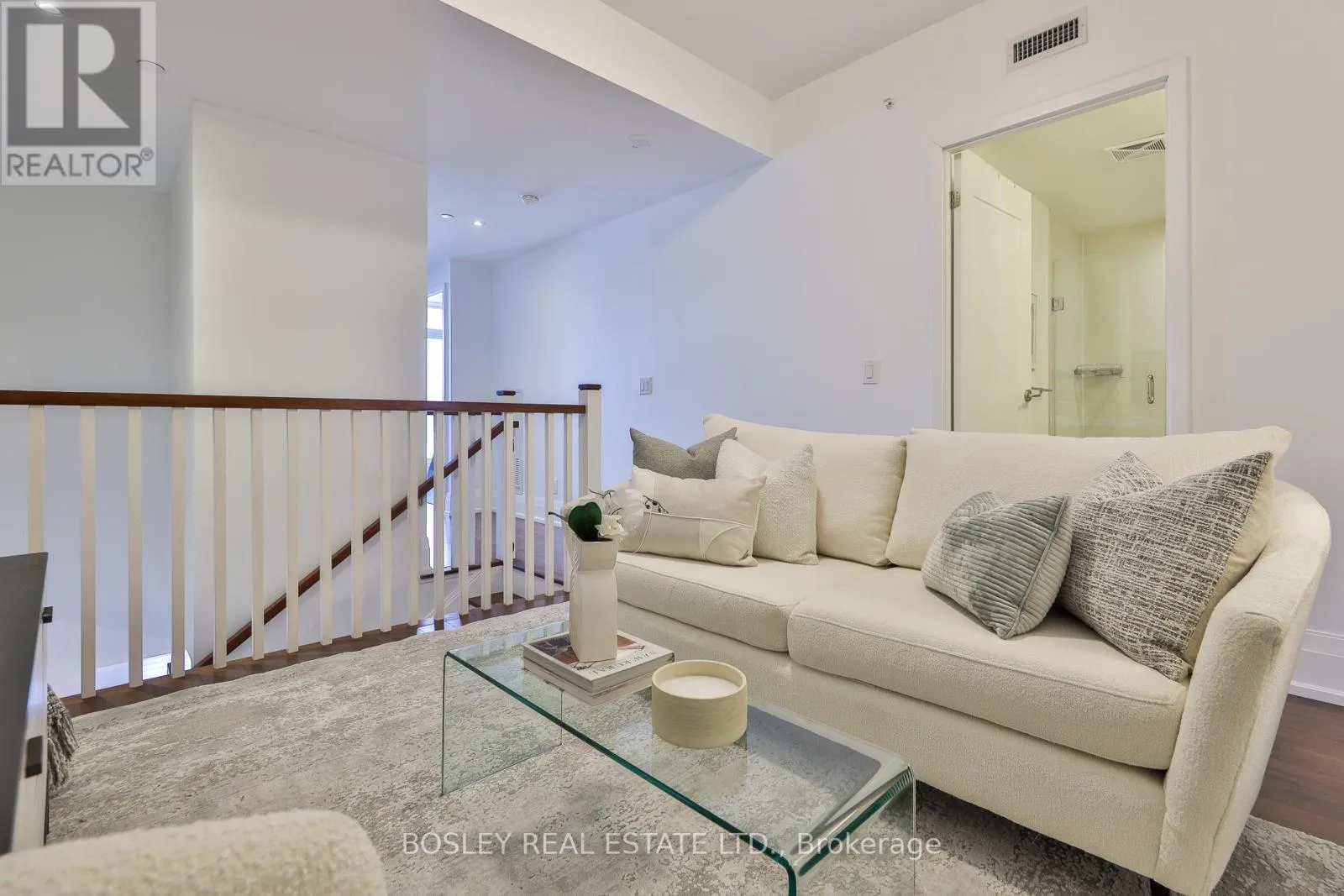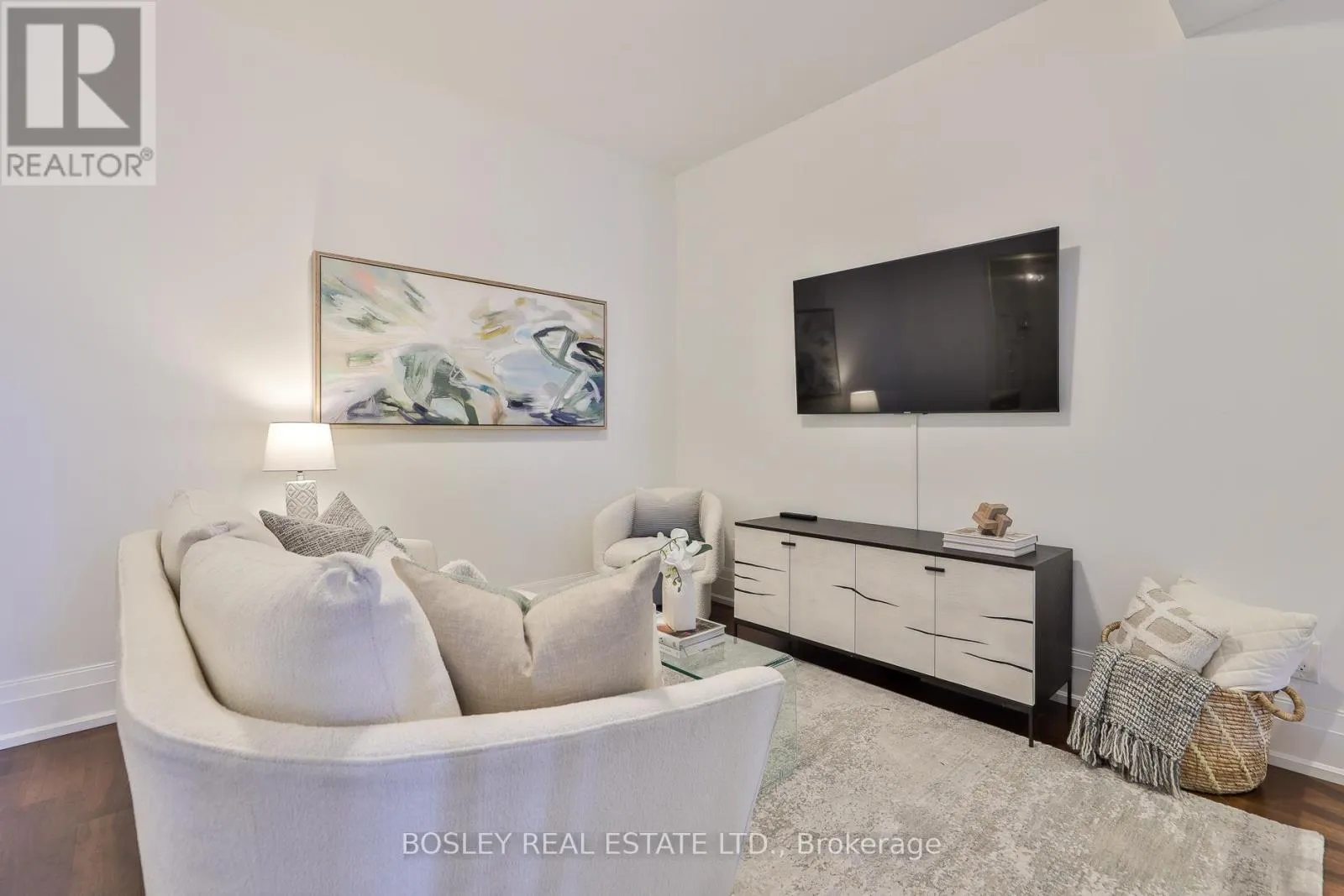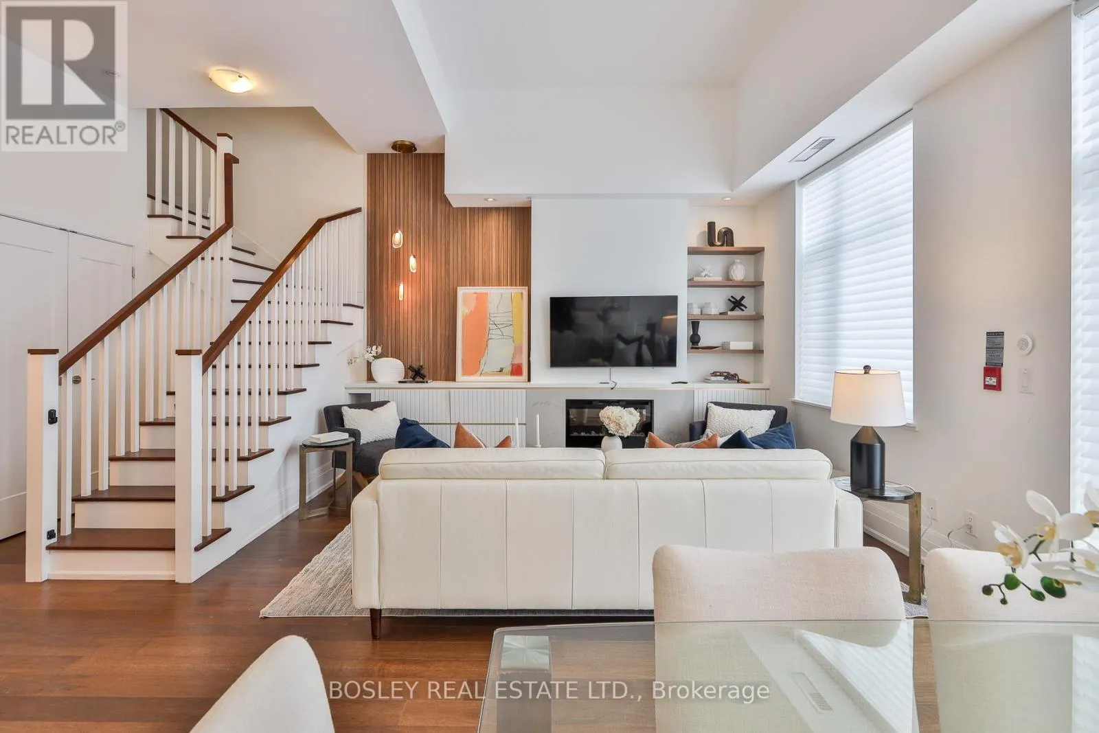 Millwood & Southvale Welcome to The Upper House, a luxury townhouse boutique condo offering exquisite style & an space in family-friendly Leaside. This 2-storey home features 1462 SF of interior living plus a 275 SF terrace with BBQ gas line, for a total of 1737 SF. The open concept main floor impresses with soaring 12-ft smooth ceilings, custom Hunter Douglas remote controlled blinds and prefinished engineered hardwood flrs. A show-stopping, wall-to-wall custom entertainment unit anchors the living room, complete with bespoke cabinetry, pot lights, decorative wood panelling, contemporary fireplace with mantle & wall-mounted TV with statement light fixture. The dining area sits perfectly between the living room and terrace walk-out, making it ideal for dinners by the fireplace as well as enjoying abundant natural light while at breakfast. The modern chef's kitchen is outfitted with top-of-the-line appliances, including a panelled fridge, dishwasher, and pantry offering functionality symmetry. The main floor also includes a large den/office with a double-door closet, which can easily be converted to a third bedroom by adding a wall & glazed French door for privacy. Don't miss the main floor powder room. The upper level enjoys an oversized family room with a 2nd wall-mounted TV (all tvs included) for family movie nights. The principal bedroom features a walk-out to a second outdoor space, his & hers closets and a spa-like ensuite with a glassed-in shower, soaker tub, and double sinks. The 4 PC bath serves the 2 bdrm and family rm. This fabulous offering includes parking and locker. Note this is a pet-friendly building complete with a pet-spa and no size restrictions for your fur babies. A rare opportunity to own a refined townhouse with exceptional design and superior quality finishes (refer to attached Features & Upgrades) in the heart of Leaside! In the top-tier Rolph Rd ES, Bessborough Dr MS & Leaside High School district.property was staged but staging is no longer in place. (id:27476)