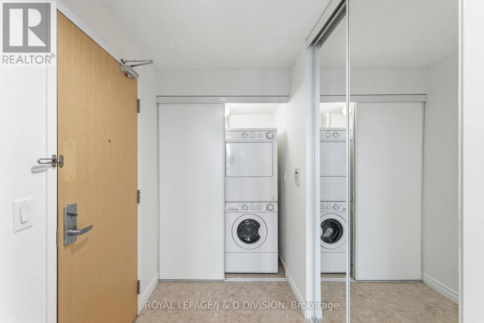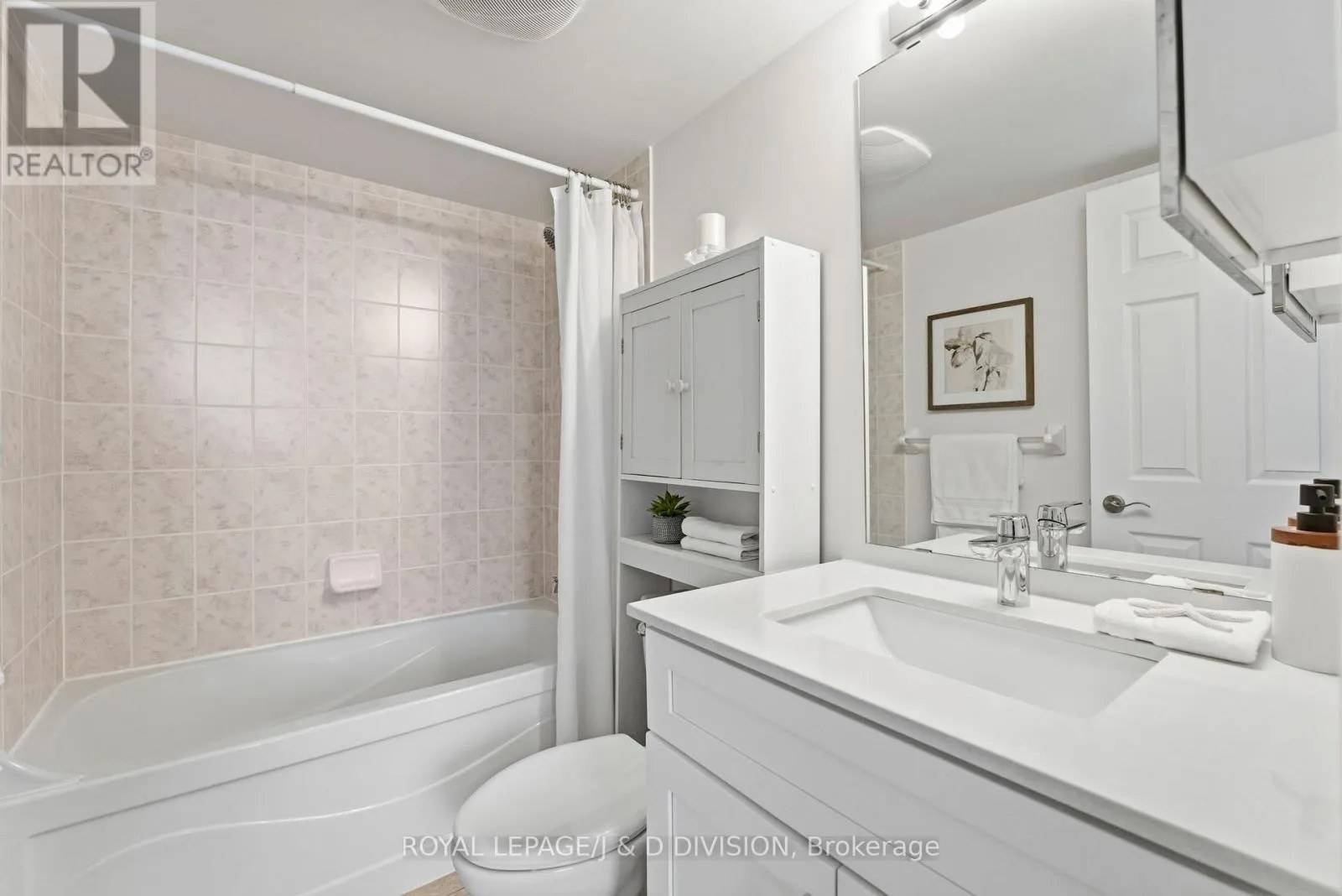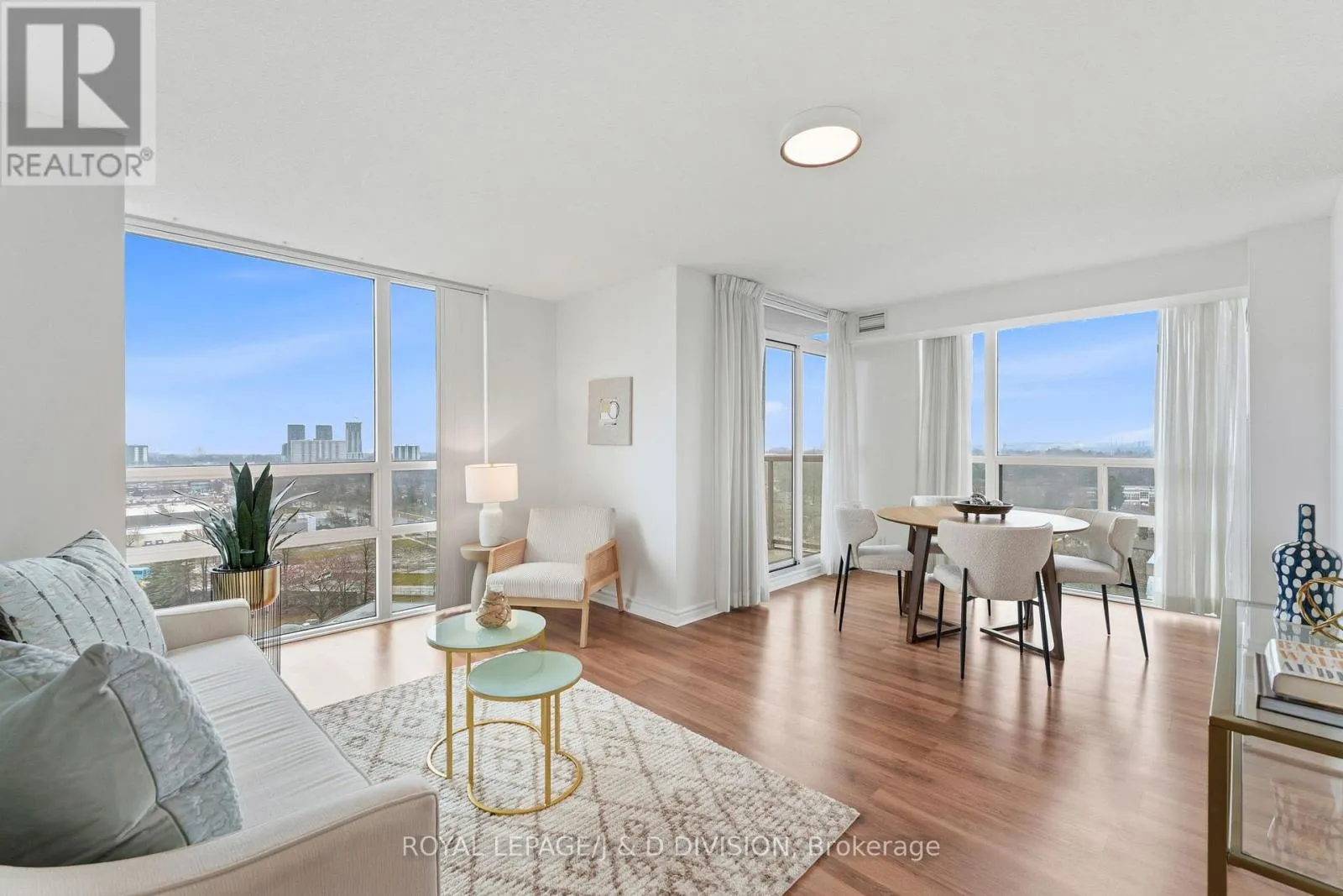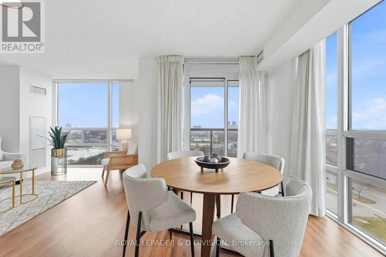 Cross Streets: Ellesmere/McCowan. ** Directions: On North East corner of Ellesmere Rd and McCowan Rd. Bright, spacious, and thoughtfully laid out, this corner 2-bedroom, 2-bathroom condo offers sweeping south and east views that fill this freshly painted home with natural light from morning through late afternoon. The split-bedroom floor plan creates privacy that works beautifully for professionals, guests, or shared living, while the welcoming foyer gives you a proper entry moment, complete with coat storage and ensuite laundry tucked conveniently out of sight. The kitchen is generous in both storage and workspace, with rich cabinetry, full-sized appliances, ceramic tile flooring, and a separate breakfast area where you can enjoy coffee while looking out over the city. It opens naturally into the living and dining space, where corner-unit windows bring in sunlight from two directions and create an airy, open feel throughout the day. A private balcony extends the living space outdoors - perfect for unwinding with a view. Both bedrooms are well-sized, with soft broadloom underfoot. The primary bedroom enjoys sunny south-facing exposure, a walk-in closet, and its own 4-piece ensuite. The second bedroom sits beside another full bathroom, making the layout practical and comfortable for visitors or a home office setup. Dedicated underground parking and locker are included, and the building offers exceptional amenities: 24-hour concierge and security, visitor parking, indoor pool, gym, sauna, guest suites, theatre, games room, bike storage, and more. Set in a highly convenient location, you're just a short walk to TTC, grocery stores, restaurants, pharmacy, banking, and everyday essentials, with Scarborough Town Centre, Centennial Recreation Centre, and quick access to Highway 401 all close by. (id:27476)