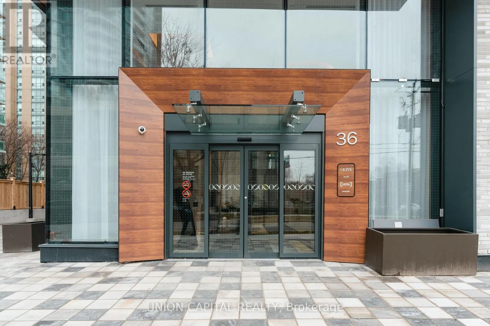 Yonge and Finch Welcome to Olive Residences at 36 Olive Avenue, located in the dynamic Yonge & Finch hub of North York. This modern 1 bedroom + den suite offers an ideal layout of efficient living space plus a large balcony. Featuring a private bedroom and a versatile den, perfect for a home office or guest room. The open-concept living and dining area is enhanced by floor to ceiling windows and a sleek kitchen with built in appliances and premium finishes. Just steps to Finch Subway Station and transit options (TTC, GO, YRT), with quick access to Highway 401, commuting is incredibly convenient. Enjoy being surrounded by top restaurants, cafes, shopping, and everyday essentials. Residents have access to over 11,000 sqft of amenities, including a fitness center, yoga studio, co-working space, lounge, party kitchen, BBQ terrace, guest suites, and 24-hour concierge. Modern, connected and move-in ready, everything you need in one address. (id:27476)