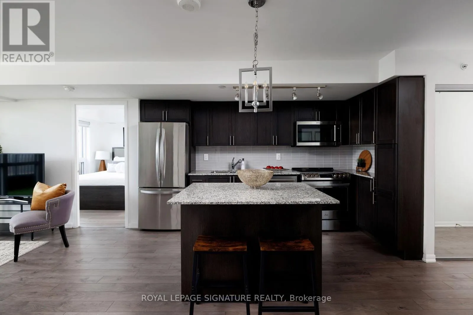 Dufferin & Lawrence Spacious and beautifully upgraded 3 bedroom plus den suite in Treviso 3 offering a functional layout designed for modern living. This bright east facing unit features a large private terrace overlooking the park, perfect for summer mornings with stunning sunrises and afternoon BBQs in a quiet setting.Thoughtfully designed chef inspired kitchen with full sized appliances, granite countertops, ceramic backsplash, upgraded under-mount sink, track lighting, and a large island with additional storage, ideal for both everyday living and entertaining.Open concept living area with floor to ceiling sliding doors leading to the terrace, creating a seamless indoor outdoor experience.Primary bedroom features a large window, his and hers closets with built ins, and a 4 piece ensuite. Second and third bedrooms are well sized with large window and custom closet organizers, offering flexibility for families or work from home needs. Separate den provides additional space for a great dining room and or office space if needed. Additional features include upgraded light fixtures throughout, full sized washer and dryer, ample hallway storage with built ins, and a highly efficient layout that maximizes every square foot.Includes 1 parking and 1 oversized locker conveniently located on the same level as the unit, offering exceptional day to day functionality. Enjoy premium building amenities including a rooftop outdoor pool, gym, theatre room, games room, two party rooms, and full time concierge exclusive to the building.An exceptional opportunity to own a well designed, move in ready home in a vibrant and connected community. (id:27476)