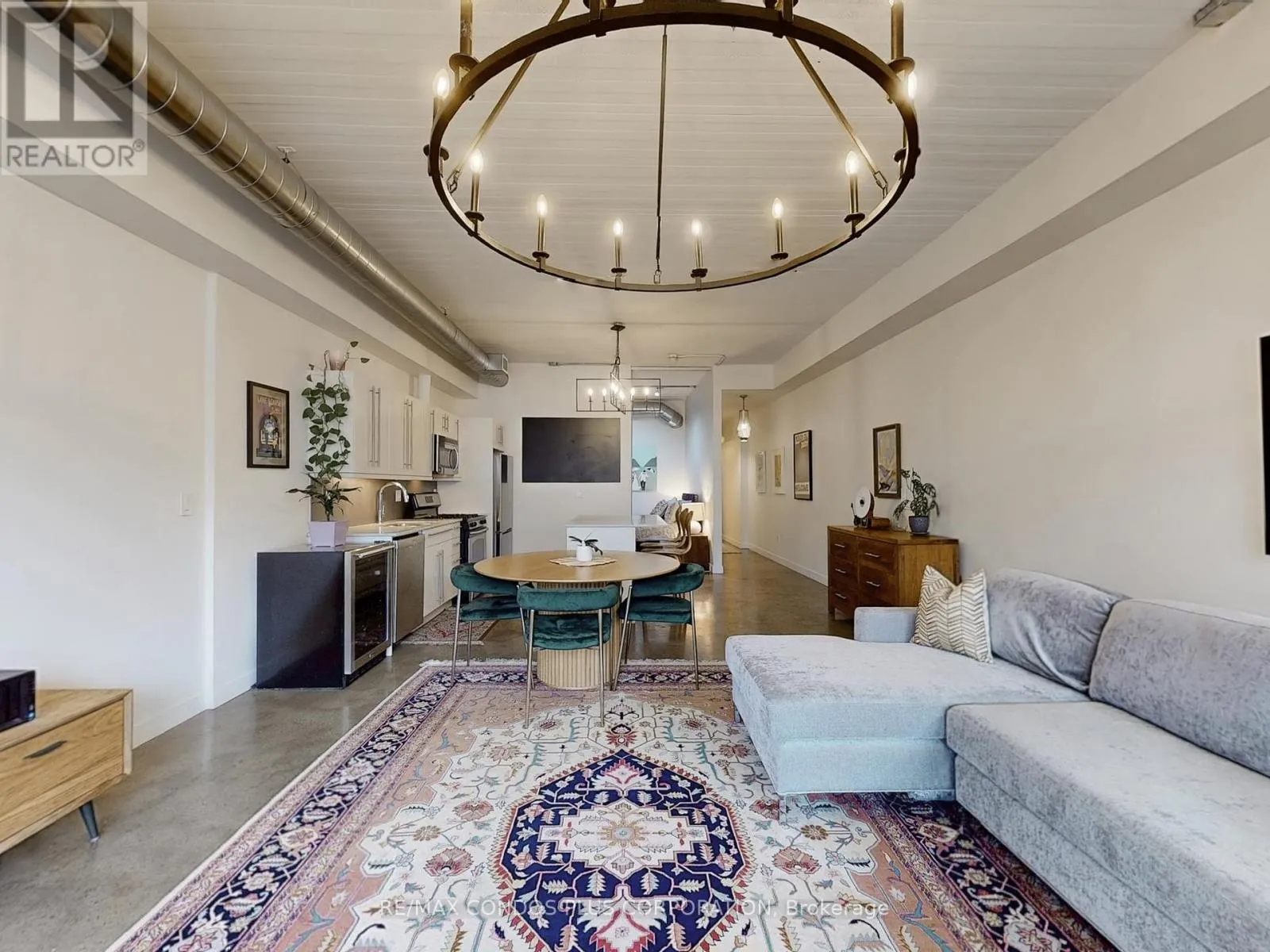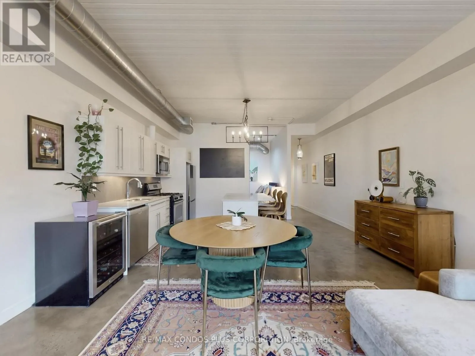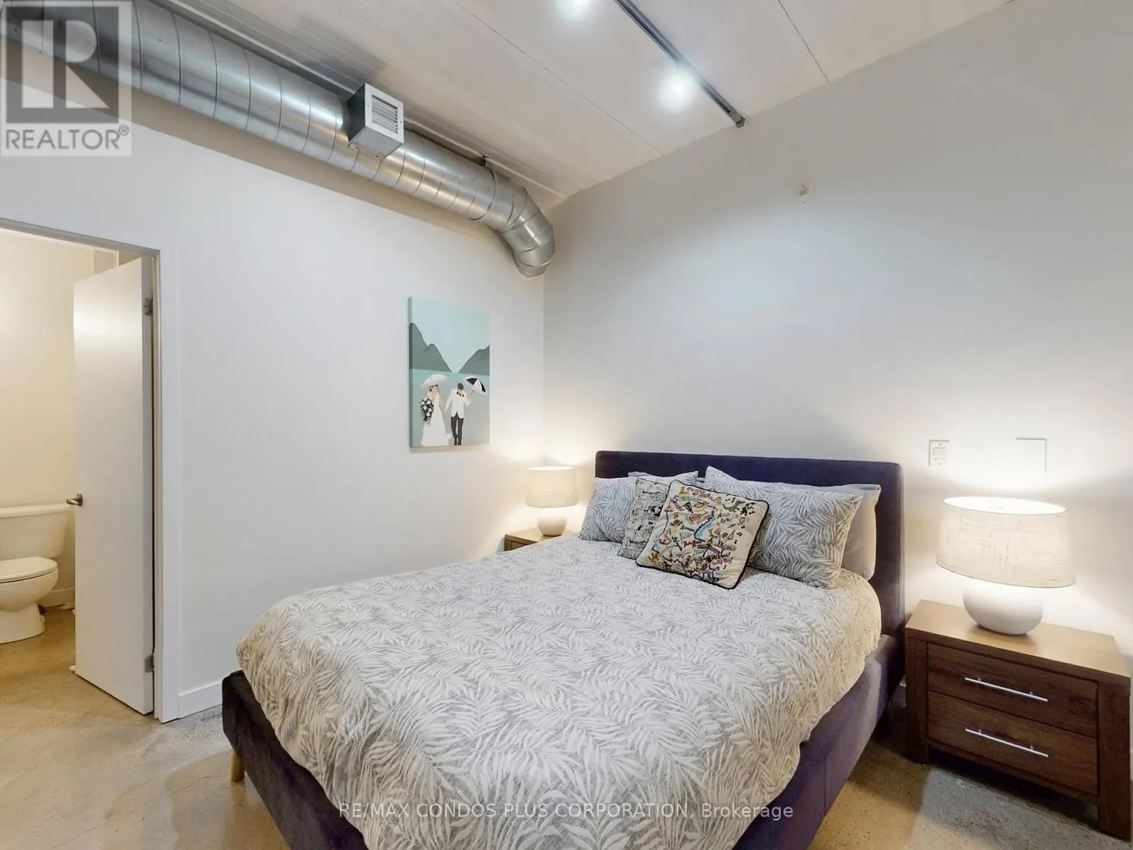 Queen St. E and Saulter St. Riverside Lofts! Bright and spacious 1-bedroom+den in Toronto's desirable Riverdale neighbourhood. Features 1009 sf of interior living space, functional open concept layout ideal for entertaining, & generously sized primary bedroom with huge closet and 4-pc ensuite. Large den perfect for a home office, media room, or 2nd bedroom. Beautifully finished interior with polished concrete floors throughout, soaring 10 ft ceilings, exposed ductwork, & floor-to-ceiling windows. Well-appointed kitchen includes stylish high gloss cabinets, ample storage, quartz counters, stainless steel appliances, undermount lighting, and large centre island. Massive 135 sf terrace with BBQ gas line. Steps to the public transit, Jimmie Simpson Park, and countless restaurants, cafes, shops, and boutiques along Queen St. E. Minutes to the Toronto Waterfront, Tommy Thompson Park, Woodbine Beach, and Martin Goodman Trail. (id:27476)