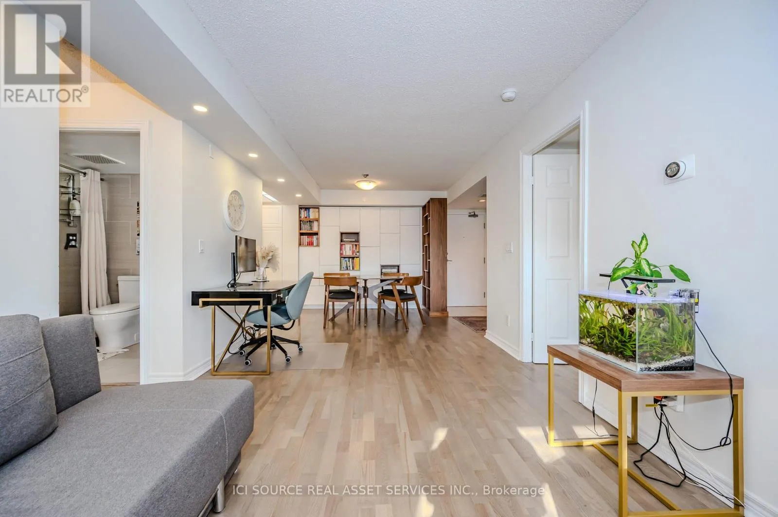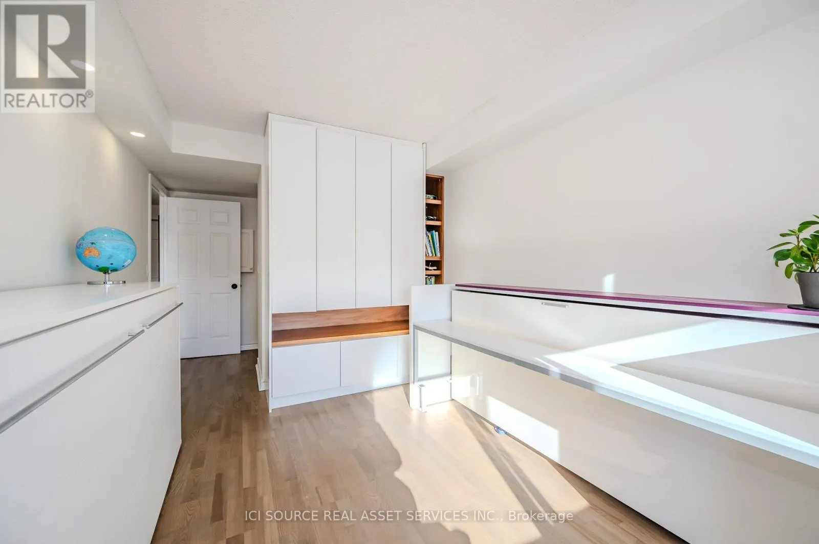 McCrae and Laird Light-filled 2-bedroom, 2-bath family condo in prime Leaside. Renovated and meticulously maintained east-facing unit featuring custom built-in wall shelving, hardwood floors, and pot lights throughout. Ideally located just 5 minutes from the new LRT line and within the catchment of one of Toronto's top-rated schools, making it perfect for families. Enjoy close proximity to excellent schools, scenic biking trails, shopping, and everyday amenities. Pet-friendly building. Status Certificate Available. Extras: Fridge, stove, dishwasher, washer, dryer, wall-mounted TV, California shutters. Hot water tank is a rental. *For Additional Property Details Click The Brochure Icon Below* (id:27476)