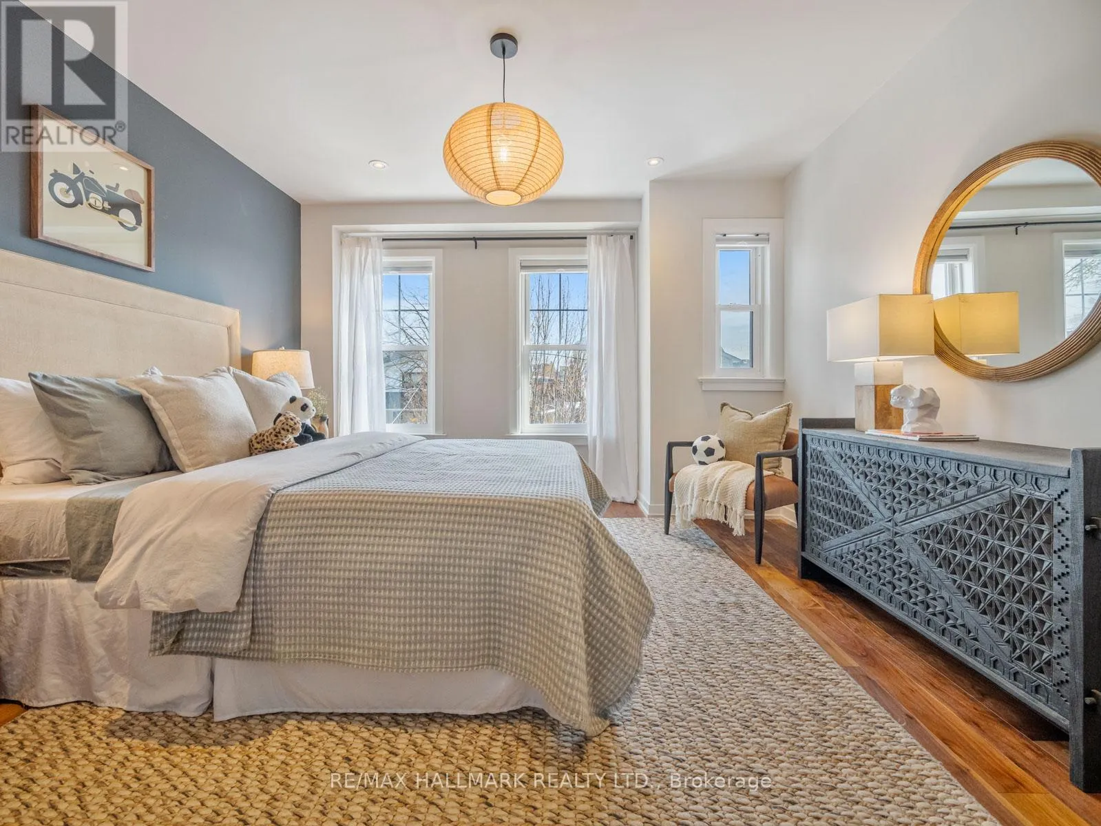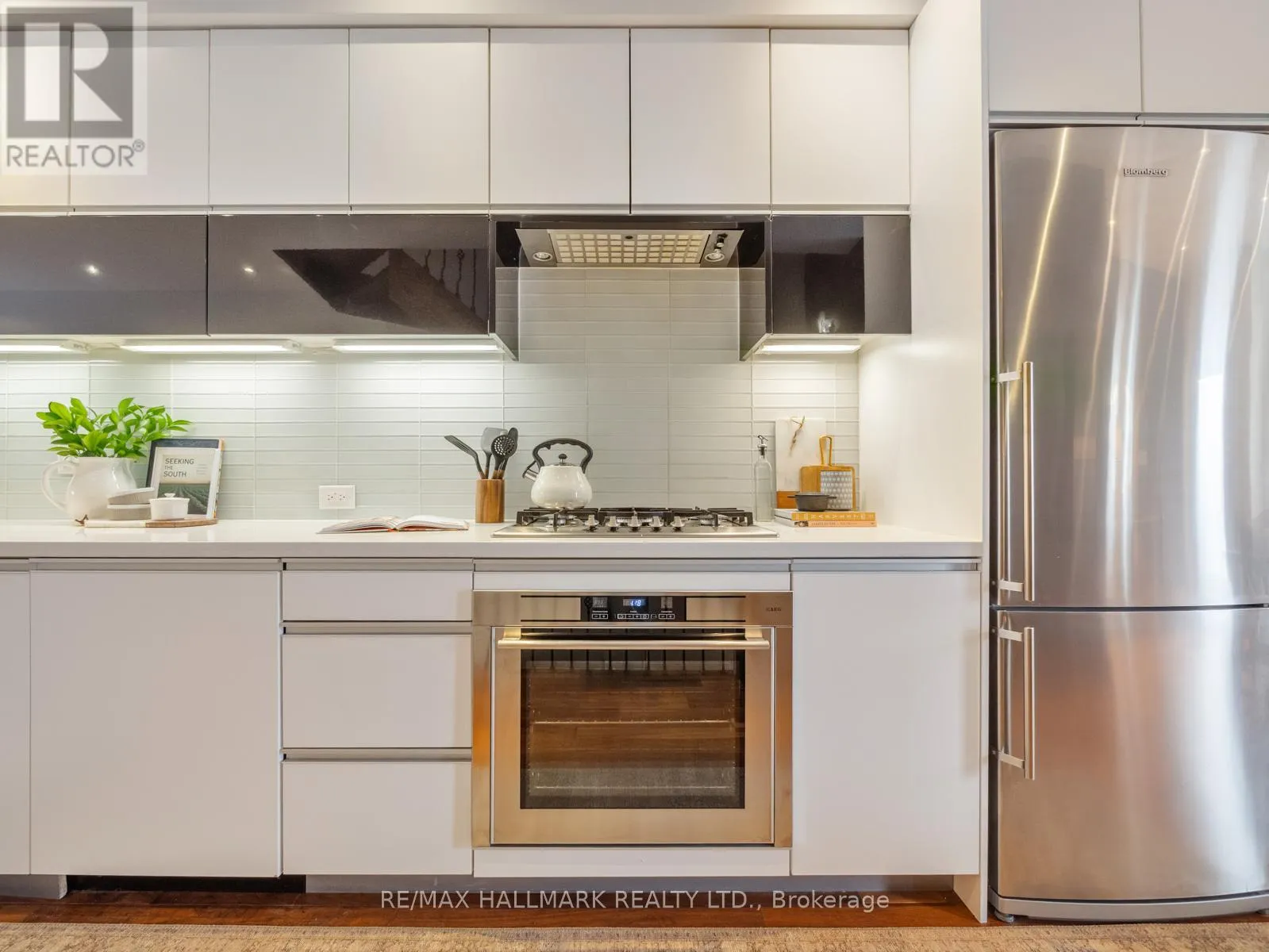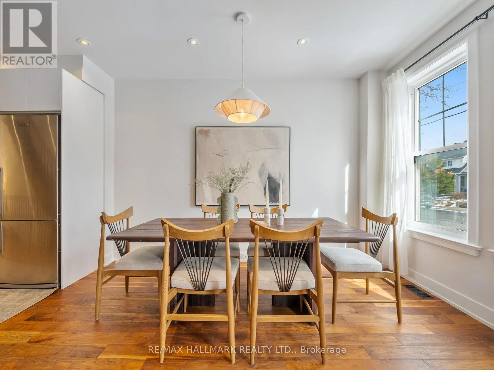 Cross Streets: Kingston Rd & Scarborough Rd. ** Directions: Ask siri ;). Steps to everything Kingston Road Village has to offer, with Adam Beck PS (French Immersion) at the top of the street, this home offers all the conveniences of a new home! The open concept main floor features a spacious family room anchored by a gas fireplace with a walk-out to the back deck, the modern kitchen features high end appliances including a 5 burner gas range, AEG wall oven, Blomberg stainless fridge and panelled Bosch dishwasher, a generous & bright dining room as well as a sizeable front hall closet. The second floor houses two large bedrooms and a family sized bathroom with double sinks - making bed time with multiple kids a breeze! The third floor owner's suite features a spa-worthy ensuite bathroom with double sinks, a soaker tub, glass shower and ample storage along with not one but two walk-in closets! The tall lower level offers a spacious recreation room, a powder room which is tucked away from the living area for privacy and direct access to your 2 owned underground parking spots! That's right, forget about wiping snow off your cars. While this home is completely freehold, you also own two parking spots in the underground parking of the condo building next door - and you have direct access from your basement! (id:27476)