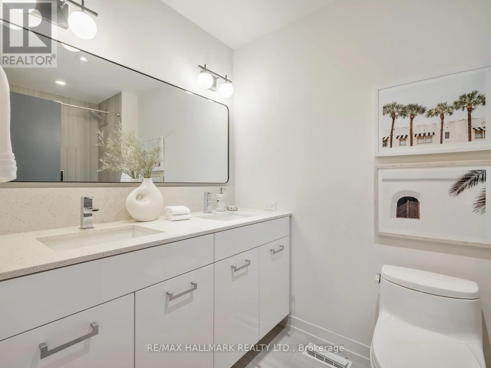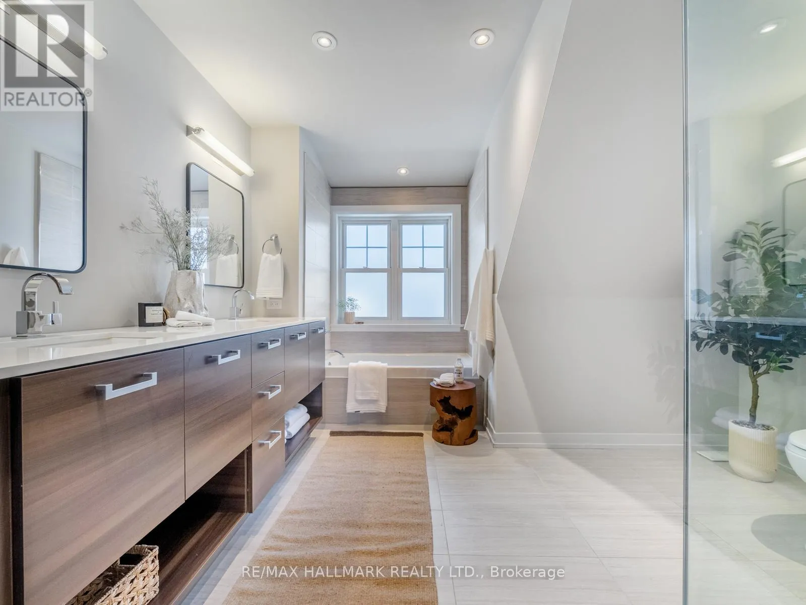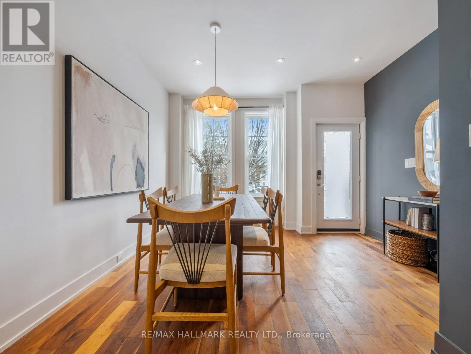 Cross Streets: Kingston Rd & Scarborough Rd. ** Directions: Ask siri ;). Steps to everything Kingston Road Village has to offer, with Adam Beck PS (French Immersion) at the top of the street, this home offers all the conveniences of a new home! The open concept main floor features a spacious family room anchored by a gas fireplace with a walk-out to the back deck, the modern kitchen features high end appliances including a 5 burner gas range, AEG wall oven, Blomberg stainless fridge and panelled Bosch dishwasher, a generous & bright dining room as well as a sizeable front hall closet. The second floor houses two large bedrooms and a family sized bathroom with double sinks - making bed time with multiple kids a breeze! The third floor owner's suite features a spa-worthy ensuite bathroom with double sinks, a soaker tub, glass shower and ample storage along with not one but two walk-in closets! The tall lower level offers a spacious recreation room, a powder room which is tucked away from the living area for privacy and direct access to your 2 owned underground parking spots! That's right, forget about wiping snow off your cars. While this home is completely freehold, you also own two parking spots in the underground parking of the condo building next door - and you have direct access from your basement! (id:27476)