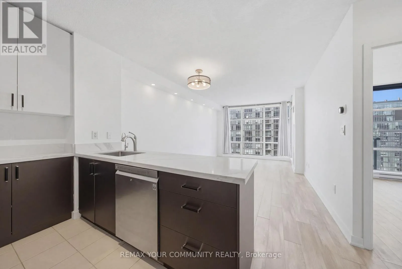 Spadina & Bremner The perfect layout plus unobstructed views of the water... Mariner Terr Unit 4502 is the one for you! Elevated downtown living at Harbourview Estates II! This bright 1+Den offers 648 square feet of functional space, complete with parking and a locker - perfect for First-Time Buyers and Young Professionals. Enjoy a sun-filled open-concept layout with floor to ceiling windows and stunning 45th floor views of the city and waterfront. The upgraded U-shaped custom kitchen is unique to this unit and offers enhanced counter space, storage, and functionality. The versatile den works as a home office or guest space, while the spacious bedroom offers great storage and comfort. Let's not forget about exclusive access to the iconic Superclub amenities: large 25m indoor pool, full-size gym, indoor track, basketball court, tennis & squash courts, games room, bowling alley, BBQ terrace, dog run, children's play room, party/meeting room, lounge areas, and more! Live in the heart of it all - you are just steps to the Harbourfront, Rogers Centre, Scotiabank Arena, The Well, and the Financial District, with easy access to Union Station and the Gardiner Expressway. (id:27476)