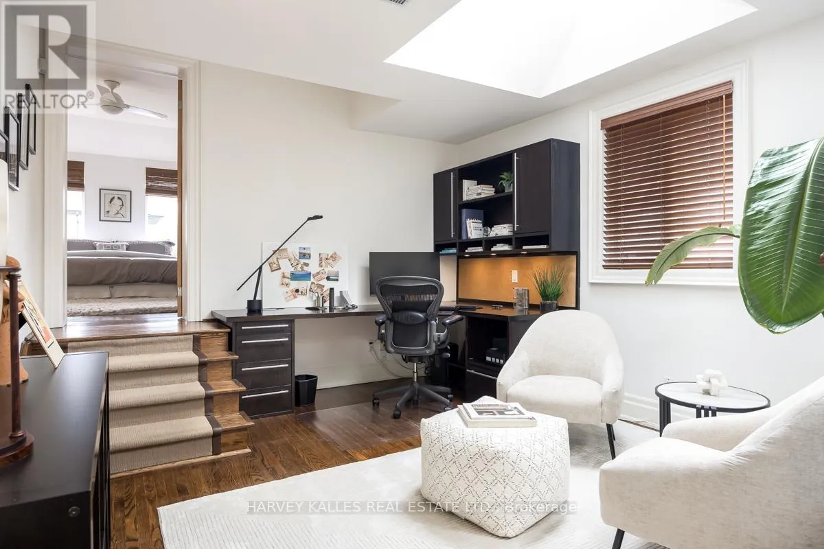Avenue Rd & Lawrence Ave Welcome to 85 Kimbark Blvd, a beautifully maintained and inviting home nestled in one of the city's most sought-after neighbourhoods. This charming residence offers a seamless blend of timeless design, modern comfort, and exceptional functionality, featuring three spacious bedrooms and thoughtfully designed living spaces- ideal for families and professionals alike. The bright, airy interior is enhanced by expansive windows that fill the home with natural light, creating a warm and welcoming atmosphere throughout. The main floor showcases an open-concept living, kitchen, and dining area, perfect for both everyday living and effortless entertaining. A well-appointed kitchen anchors the space, flowing into a generous family room with soaring ceilings and a rare wood-burning fireplace- adding both character and comfort. A formal dining room provides and elegant setting for hosting. On the second level, you will find well-proportioned bedrooms, including a serene and spacious principal retreat featuring a vaulted ceiling and a spa-like ensuite. An open-concept office area, illuminated by two large skylights, offers a bright and inspiring workspace for today's remote professional or creative pursuits. The fully finished lower level adds exceptional versatility, offering a large recreation room or optional fourth bedroom, a three piece bathroom, dedicated laundry, and ample storage. Set on a quiet, tree lined street, the home also features a very private backyard surrounded by mature trees- an ideal setting for outdoor relaxation and entertaining. Located just steps from top-rated schools, boutique shopping, fine dining, and convenient transit, this is a rare opportunity to own a truly special home in a prime location. (id:27476)