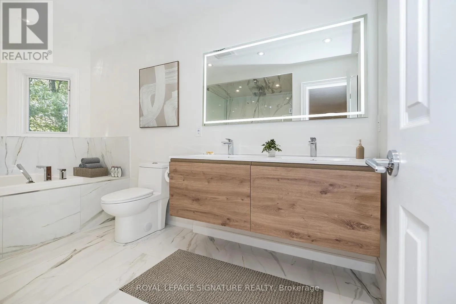 Sheppard & Port Union Renovations Galore! This stunning 4-bedroom detached home has been completely renovated with meticulous attention to detail, offering the feel of a brand-new, never-lived-in build. Bright and spacious throughout, the home features a designer chef's kitchen with quartz countertops, a custom island, built-in oven, microwave, cooktop, and a breakfast area overlooking the garden. The main floor boasts a welcoming family room with a fireplace and a walk out from both family room and kitchen to beautiful new deck, the elegant living and dining areas are enhanced by high-end finishes and pot lights, as well as a versatile office or den that can easily function as a fifth bedroom. Upstairs, a beautiful winding staircase with wrought iron pickets leads to four generously sized bedrooms, including a luxurious primary retreat complete with a walk-in closet, Pela blackout blinds, and a spa-inspired 5-piece ensuite. This home is finished with engineered hardwood flooring throughout, brand-new windows, and a Marley clay tile roof with a lifetime warranty. All appliances, including the washer and dryer, are brand new (2025). Enjoy the added convenience of direct access to a double-car garage. Step outside to a private backyard featuring a full deck-perfect for entertaining or relaxing. Ideally located close to highways, shopping, schools, restaurants, and scenic hiking trails, and just minutes to the lake and Rouge Beach, this home seamlessly blends modern luxury with everyday comfort in a prime location. (id:27476)