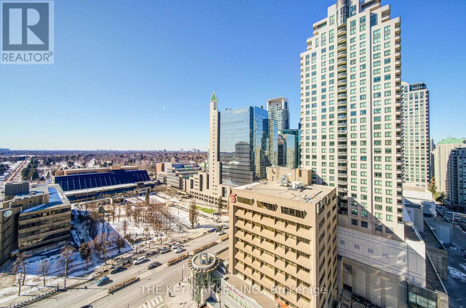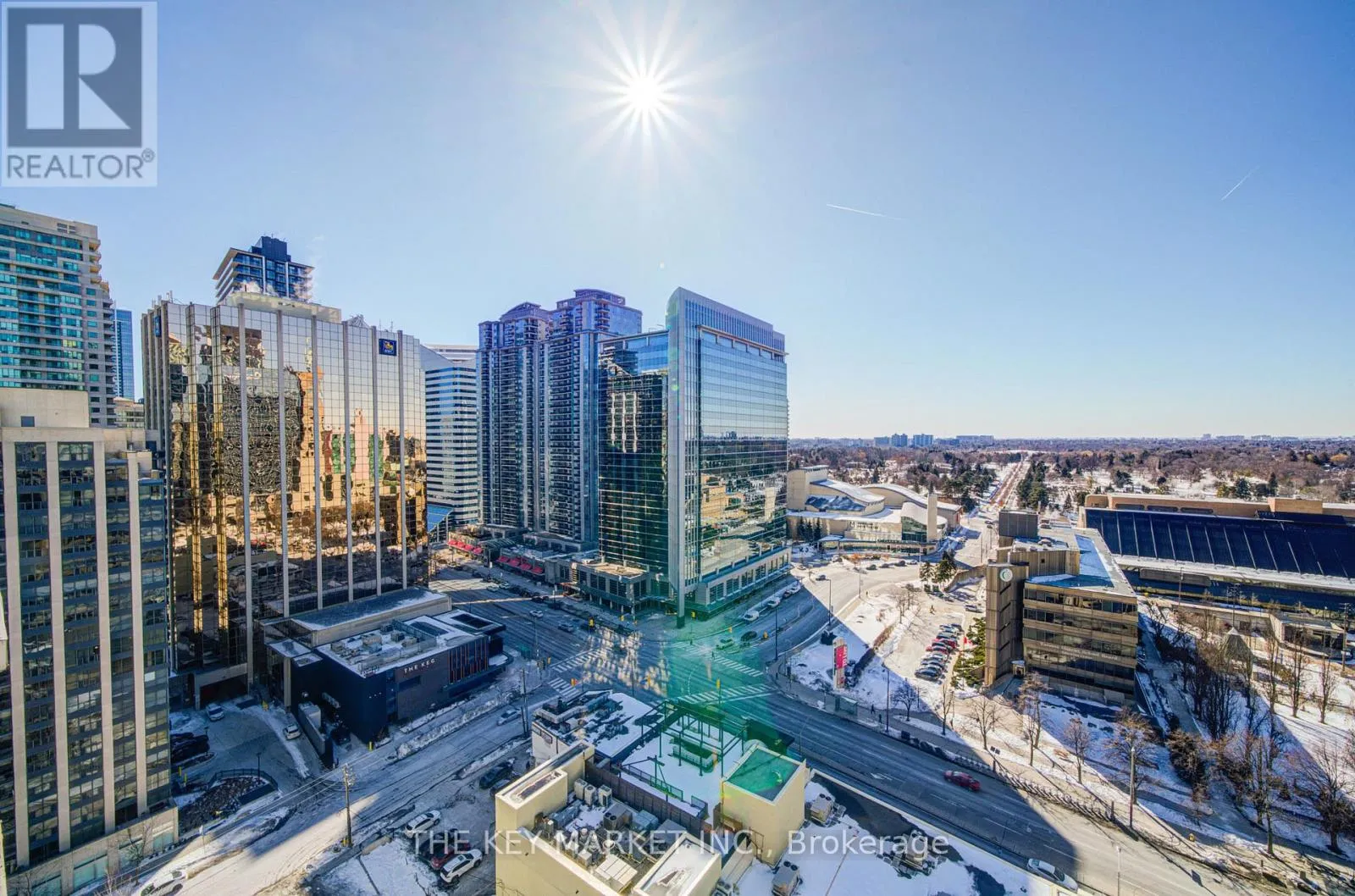 Cross Streets: Yonge St and Sheppard Ave E. ** Directions: Enter from Elmwood Ave and park on the surface visitor parking. Welcome to this fully renovated, extra-large 1+Den suite in the heart of North York, ideally located directly across from Mel Lastman Square and offering approximately 750 sq. ft. of beautifully designed living space with an open balcony and sweeping city views. Bathed in natural light through oversized windows and a patio door with unobstructed views, the home provides a bright and inviting atmosphere perfect for both everyday living and entertaining. The spacious open-concept living and dining area seamlessly extends to the private balcony-an ideal spot to enjoy your morning coffee, watch the sunset, or host friends and family against a stunning skyline backdrop. The thoughtfully designed layout includes a versatile den, offering the perfect separate space for a home office, reading area, or potential guest room-ideal for today's flexible lifestyle. The modern kitchen has been beautifully upgraded with quartz countertops, custom backsplash, stylish cabinetry, and brand-new stainless steel appliances, creating a sleek yet functional space for cooking and gathering. The generously sized primary bedroom features a large closet and bright window, while the spa-inspired bathroom has been completely renovated, offering a relaxing retreat at the end of the day. No detail has been overlooked in the extensive updates throughout the unit, making this truly a move-in-ready home. Located at 21 Hillcrest, you are surrounded by some of North York's best amenities: steps to North York Centre Subway Station, Empress Walk, North York Central Library, T&T (Loblaw), Cineplex, shops, restaurants, cafés, and grocery stores, with quick access to 401/404/DVP for effortless commuting. Outstanding building amenities: 24-hour concierge, visitor parking, gym, indoor pool, jacuzzi, sauna, theatre, lounge, and guest suites. Offering generous space, stylish renovations, and an unbeatable location- This is not just a home, its a curated life. Come experience it. Fall in love. Make it yours. (id:27476)