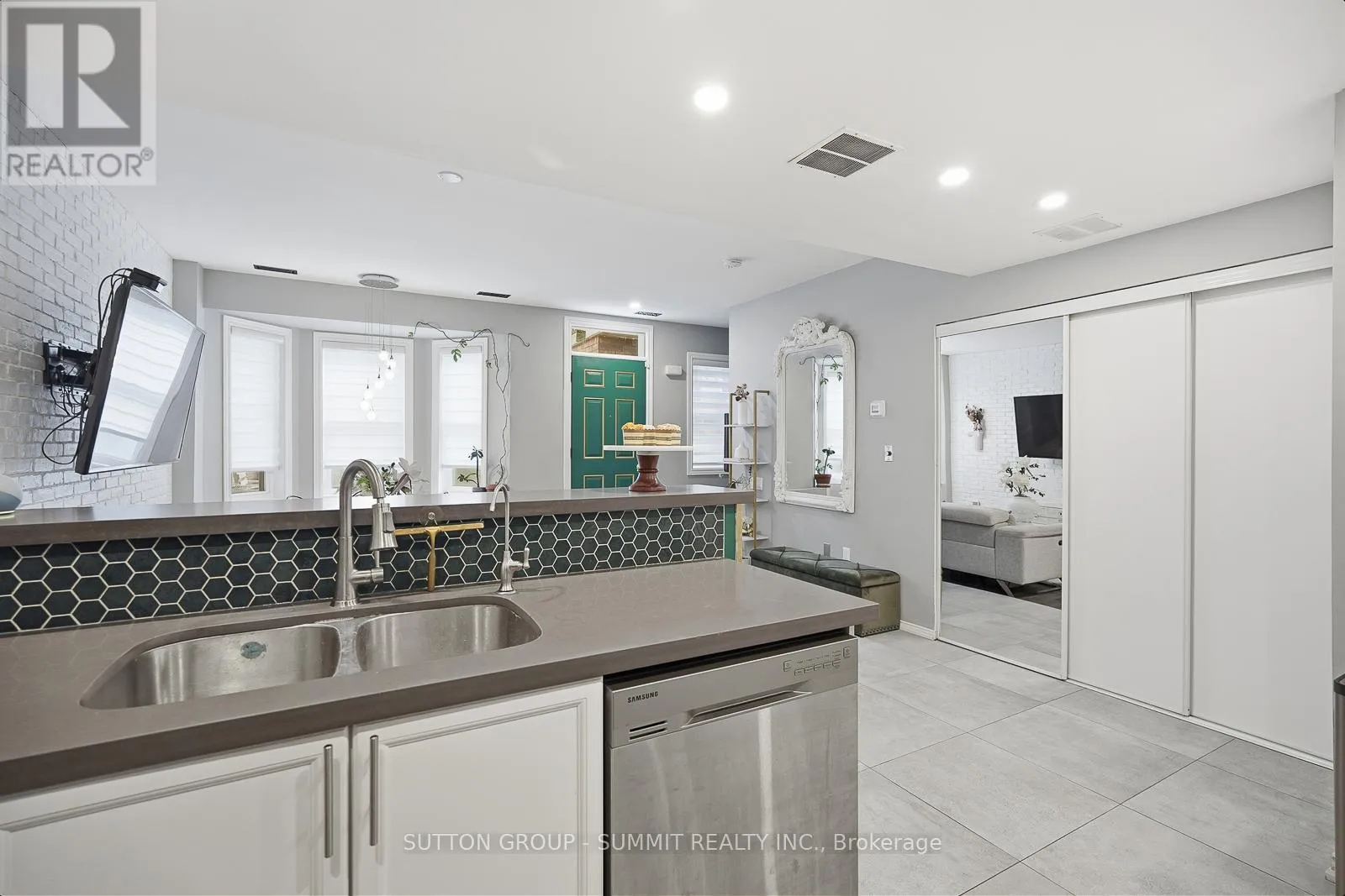 DUFFERIN/LAWRENCE AVENUE Welcome to your beautifully renovated residence at Liberty Walk-a designer-appointed, fully renovated 2 bedroom , 2 bath townhouse WITH 2 PARKING that seamlessly blends modern elegance with everyday comfort.Step inside to discover a stunning newly renovated kitchen featuring premium Caesar stone countertops, a stylish backsplash, stainless steel appliances, and a convenient breakfast counter perfect for casual dining or morning coffee. The main level also offers a bright dining area and a thoughtfully designed powder room, creating an ideal space for both daily living and entertaining. Upstairs, the spacious primary bedroom retreat features a comfortable sitting area, fresh designer paint throughout, and elegant contemporary lighting that enhances the home's sophisticated ambiance. A fully removated upper 4 piece bath. Enjoy outdoor living with your large private patio, an inviting space ideal for summer barbecues, relaxing evenings, and entertaining guests. Additional features include TWO parking space and a large private locker, providing convenience and extra storage. Perfectly located, this home offers easy access to TTC transit and subway, a 24-hour Shoppers Drug Mart, shopping at Yorkdale, and quick connections to Highways 401 and Allen Road, making commuting and everyday errands effortless. A rare opportunity to own a stylishly renovated townhouse in a prime, highly connected location. (id:27476)