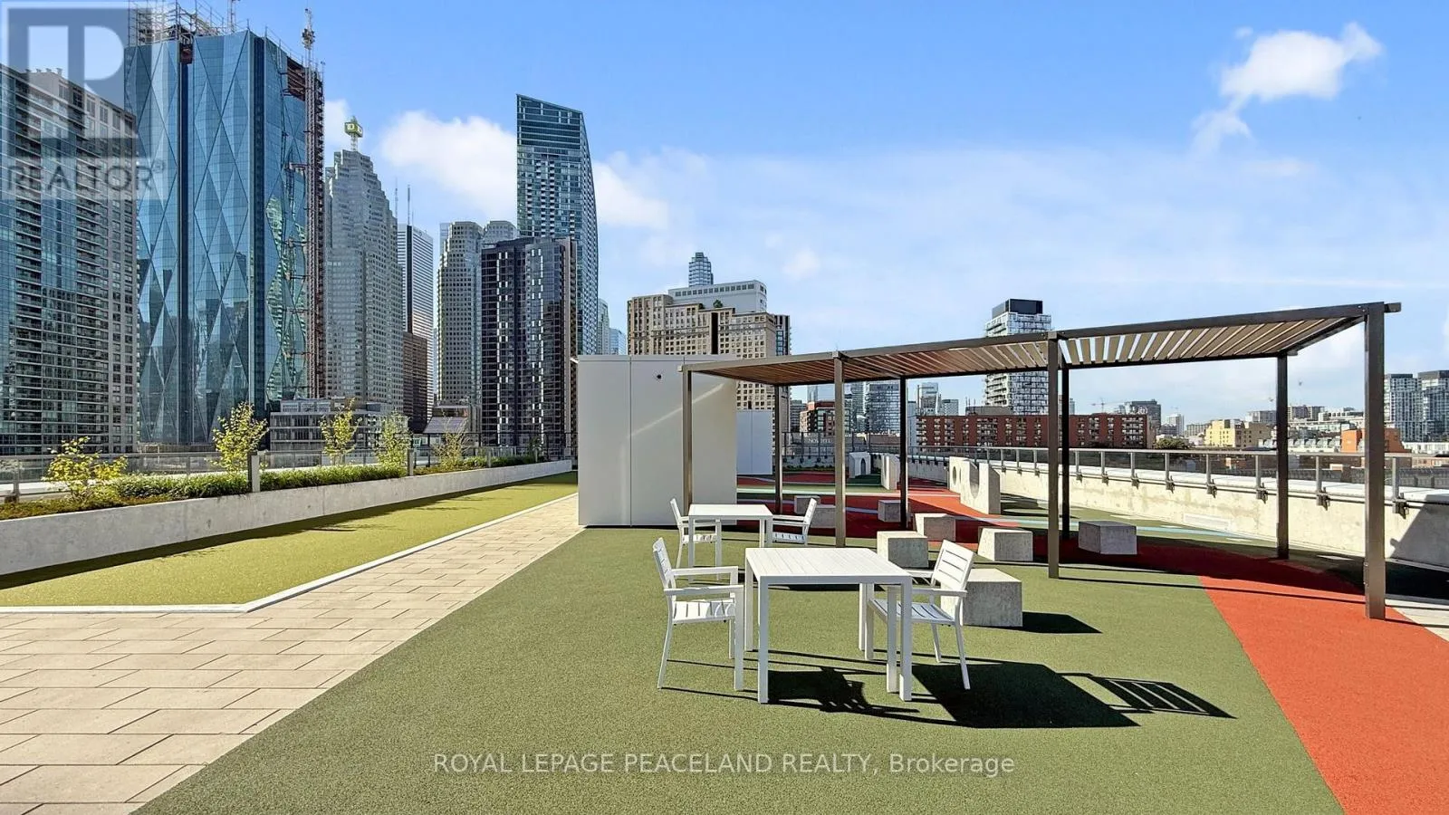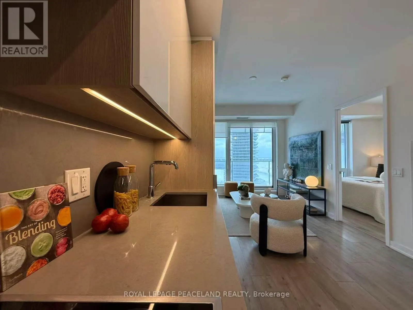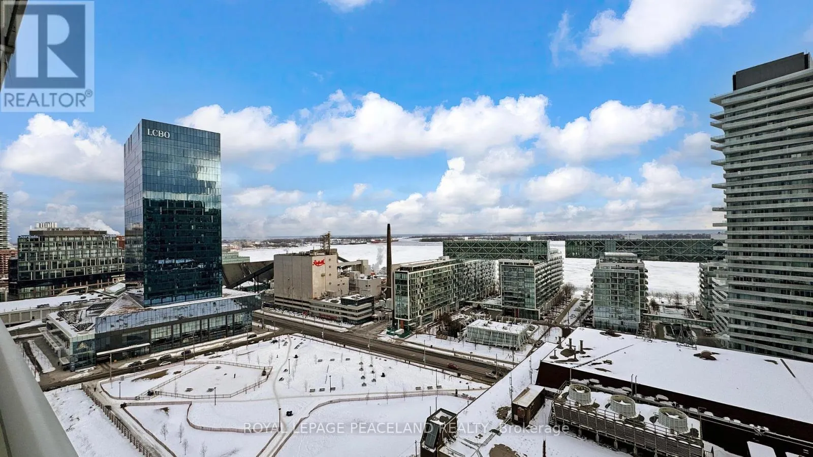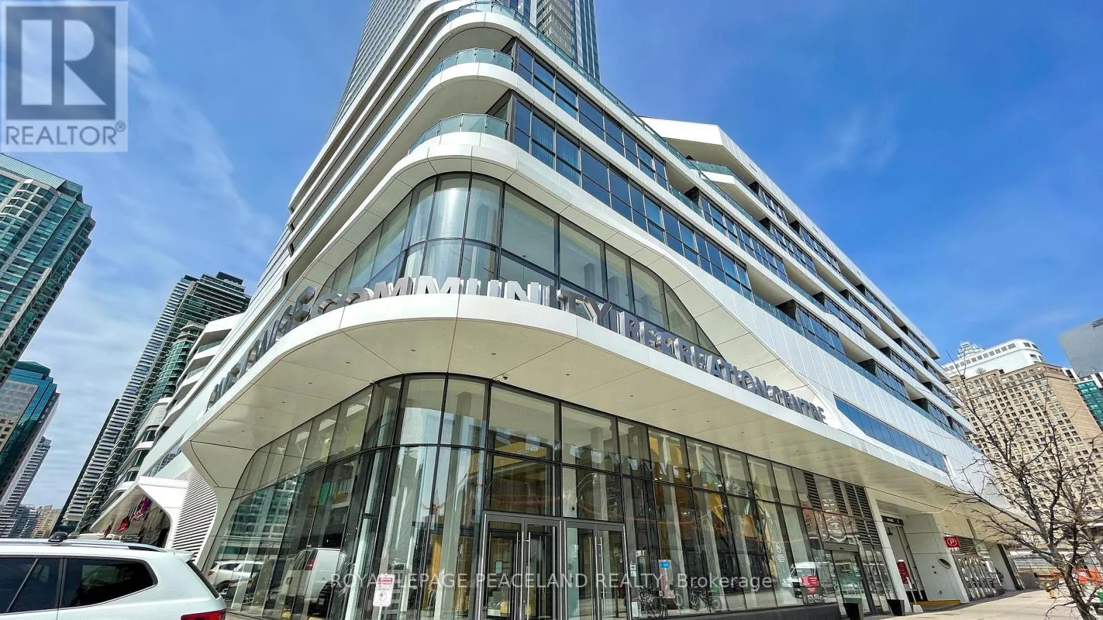 Yonge/ Lakeshore Bright south-facing 1+Den suite with unobstructed lake and city views through floor-to-ceiling windows! Functional open-concept layout featuring 9-ft ceilings, laminate flooring, and modern finishes throughout. Spacious bedroom plus a versatile den ideal as a second bedroom or home office. Contemporary kitchen with quartz countertops, designer backsplash, and ample cabinetry. Enjoy a private balcony perfect for relaxing or entertaining. Freshly painted and move-in ready. Located in a prestigious waterfront building with world-class amenities including 24-hour concierge, indoor pool, fitness centre, rooftop BBQ lounge, and more. Steps to Union Station, the Financial District, waterfront trails, restaurants, and everyday conveniences, with future potential for direct PATH connectivity and a newly created waterfront park nearby, adding to both lifestyle appeal and long-term value. An exceptional opportunity for both end-users and investors in the heart of downtown Toronto. Book your showing today! (id:27476)