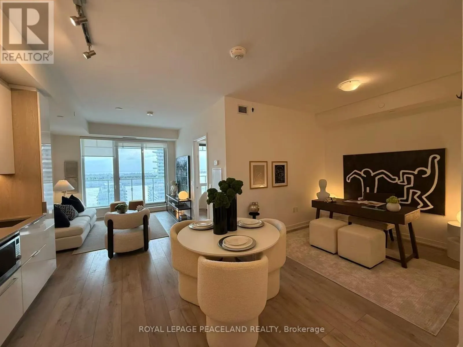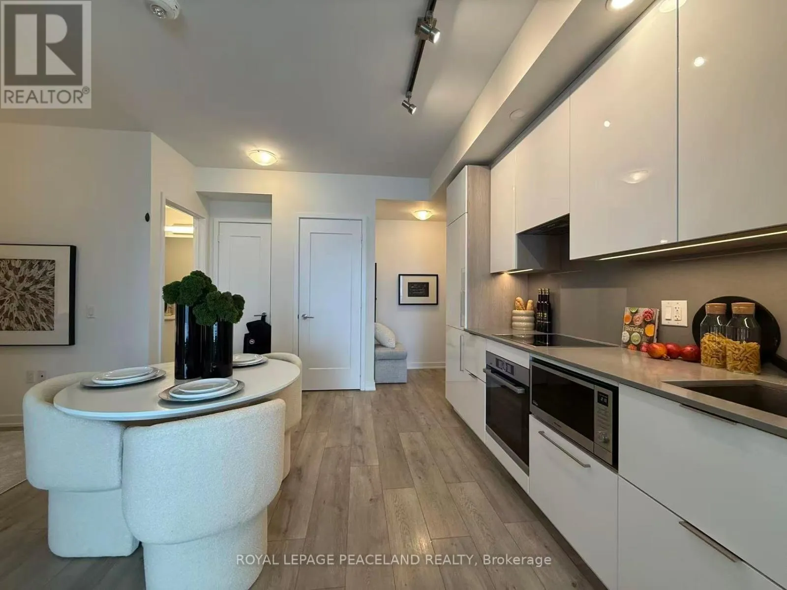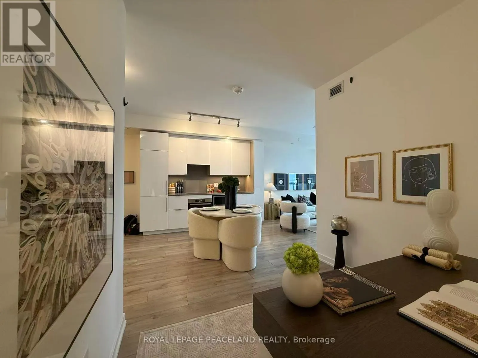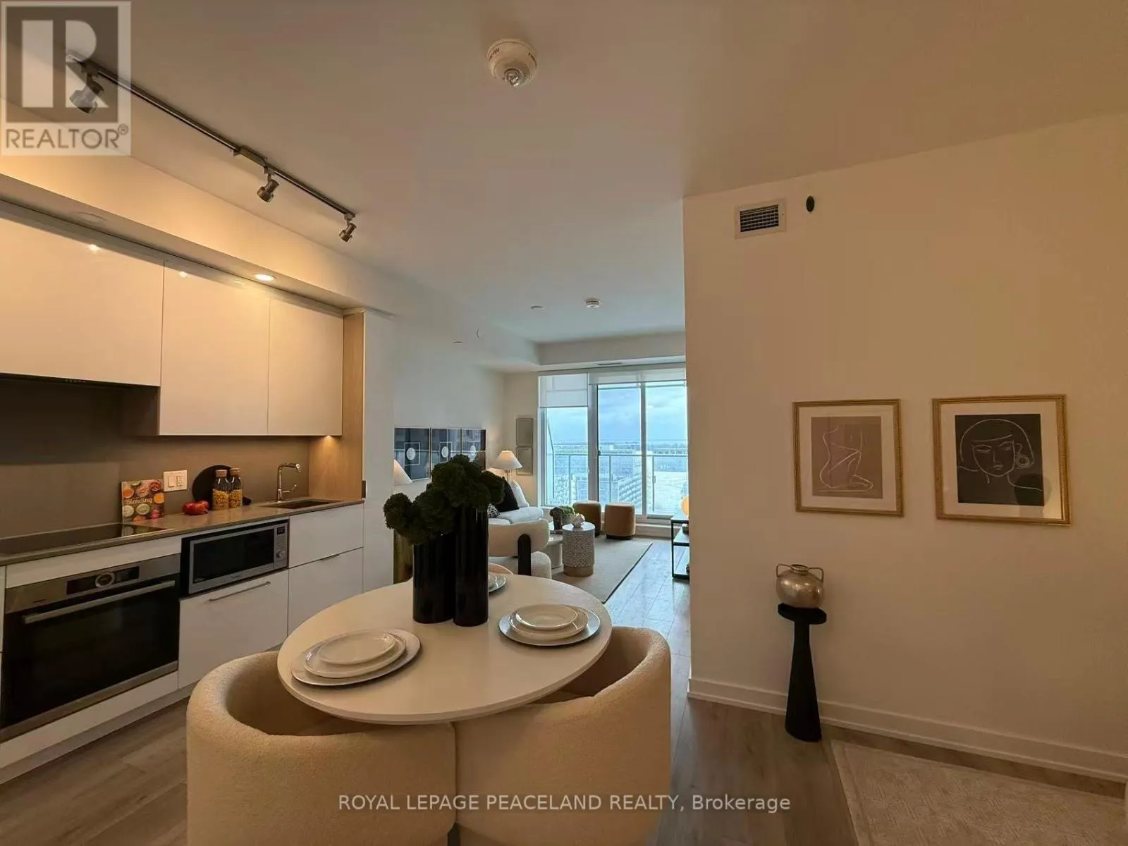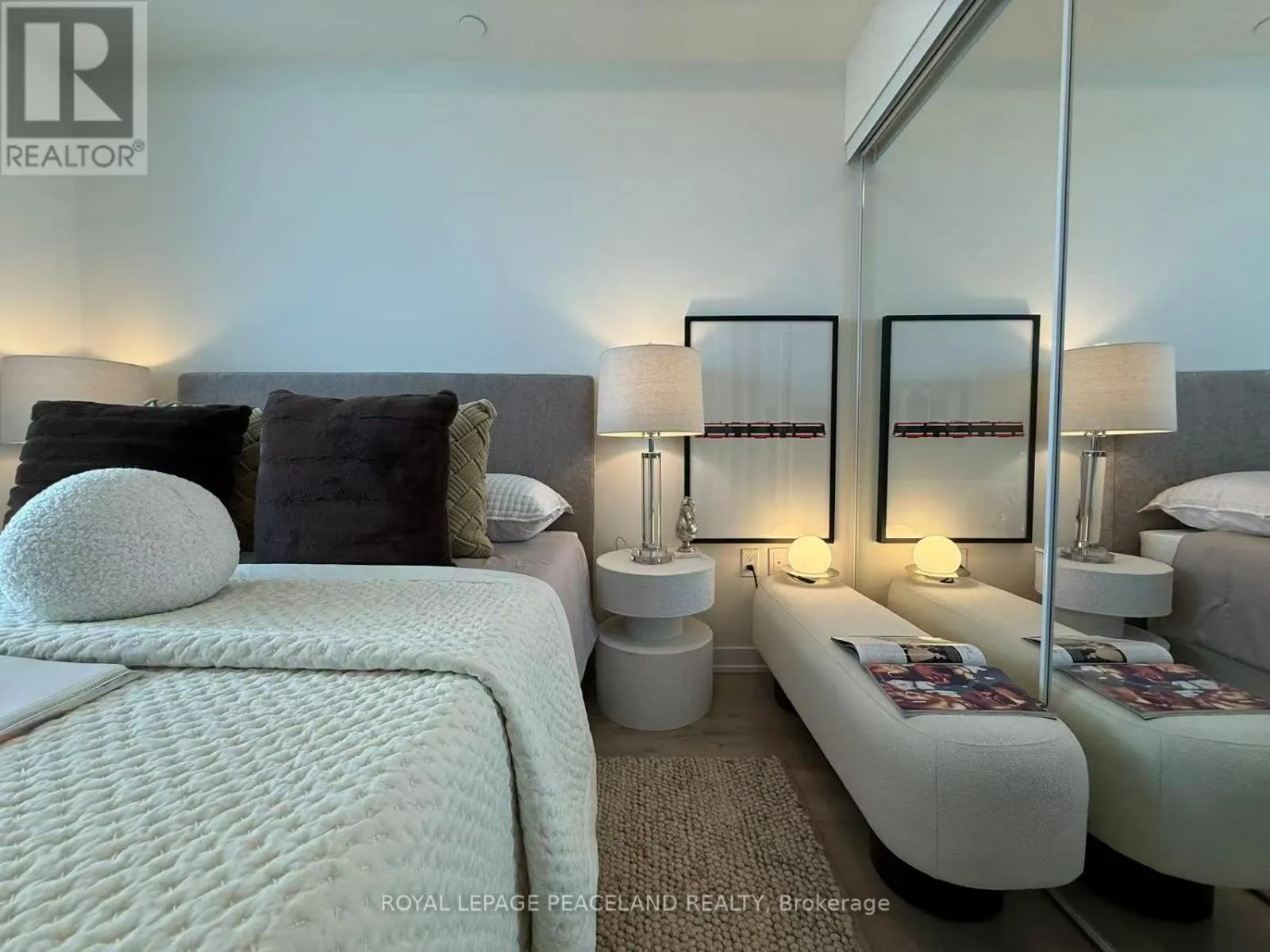 Yonge/ Lakeshore Bright south-facing 1+Den suite with unobstructed lake and city views through floor-to-ceiling windows! Functional open-concept layout featuring 9-ft ceilings, laminate flooring, and modern finishes throughout. Spacious bedroom plus a versatile den ideal as a second bedroom or home office. Contemporary kitchen with quartz countertops, designer backsplash, and ample cabinetry. Enjoy a private balcony perfect for relaxing or entertaining. Freshly painted and move-in ready. Located in a prestigious waterfront building with world-class amenities including 24-hour concierge, indoor pool, fitness centre, rooftop BBQ lounge, and more. Steps to Union Station, the Financial District, waterfront trails, restaurants, and everyday conveniences, with future potential for direct PATH connectivity and a newly created waterfront park nearby, adding to both lifestyle appeal and long-term value. An exceptional opportunity for both end-users and investors in the heart of downtown Toronto. Book your showing today! (id:27476)