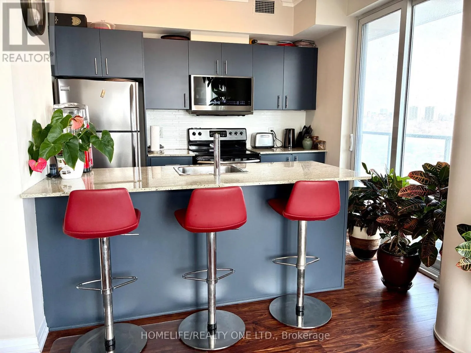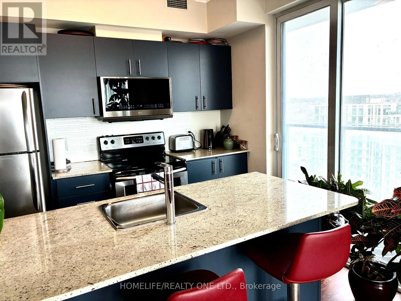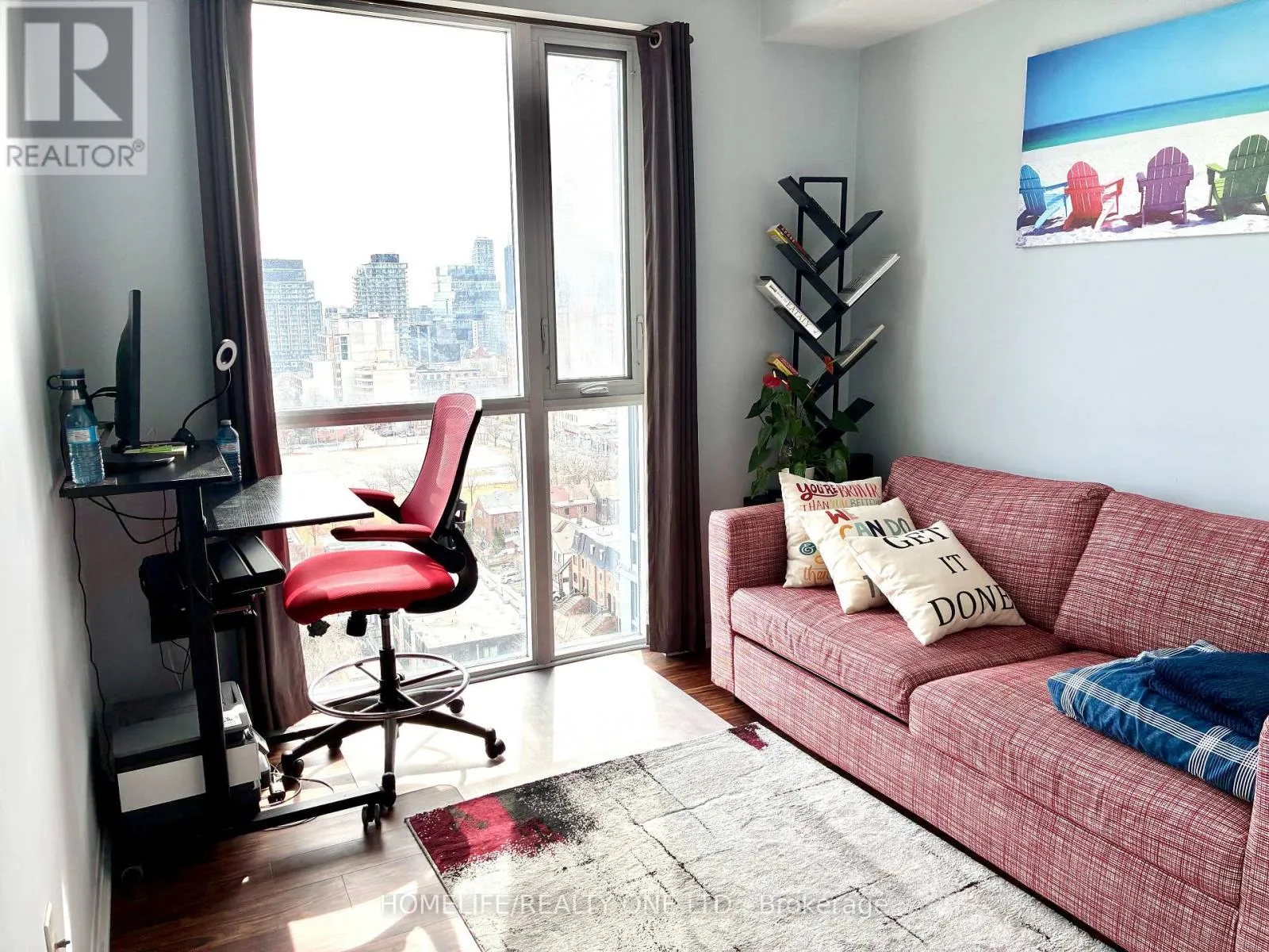 Dundas & Parliament Welcome To One Cole Condo. This Bright And Spacious 2-Bedroom Plus Den Home Features A Spacious Foyer, A Kitchen Updated In 2025, Stainless Steel Appliances, And 2 Full Bathrooms, Including An Ensuite In The Primary Bedroom, Along With An Open Concept Main Space Filled With Natural Light. Coffered Ceilings And Elegant Wainscoting Add Subtle Detail, While The Versatile Den Can Serve As A Dining Room, Office, Or Creative Space. Vinyl Flooring Throughout Is Durable, Easy To Maintain, And Comfortable Underfoot, Making Daily Life Simple And Practical. Exceptional Amenities Located In The Heart Of The Vibrant Regent Park Community, Residents Enjoy A 20,000 Sq Ft Sky Park, Two-Level Lounge, Party Room, Fully Equipped Fitness Centre, Guest Suite and Visitor Parking. Convenient Downtown Living With Everyday Essentials, Including FreshCo Grocery Store Conveniently Connected To The Building, And Just Steps Away to Tim Hortons, Rogers, And RBC Royal Bank. Walk To The CF Toronto Eaton Centre Or Hop On The Dundas Streetcar For Easy Access To The Subway And All Of Downtown Toronto. Perfect Opportunity & Ideal For Tenants Seeking Comfort, Style, Convenience, And A Lively Downtown Lifestyle. Don't Miss The Chance To Make This Luxurious Condo Your Next Home. (id:27476)